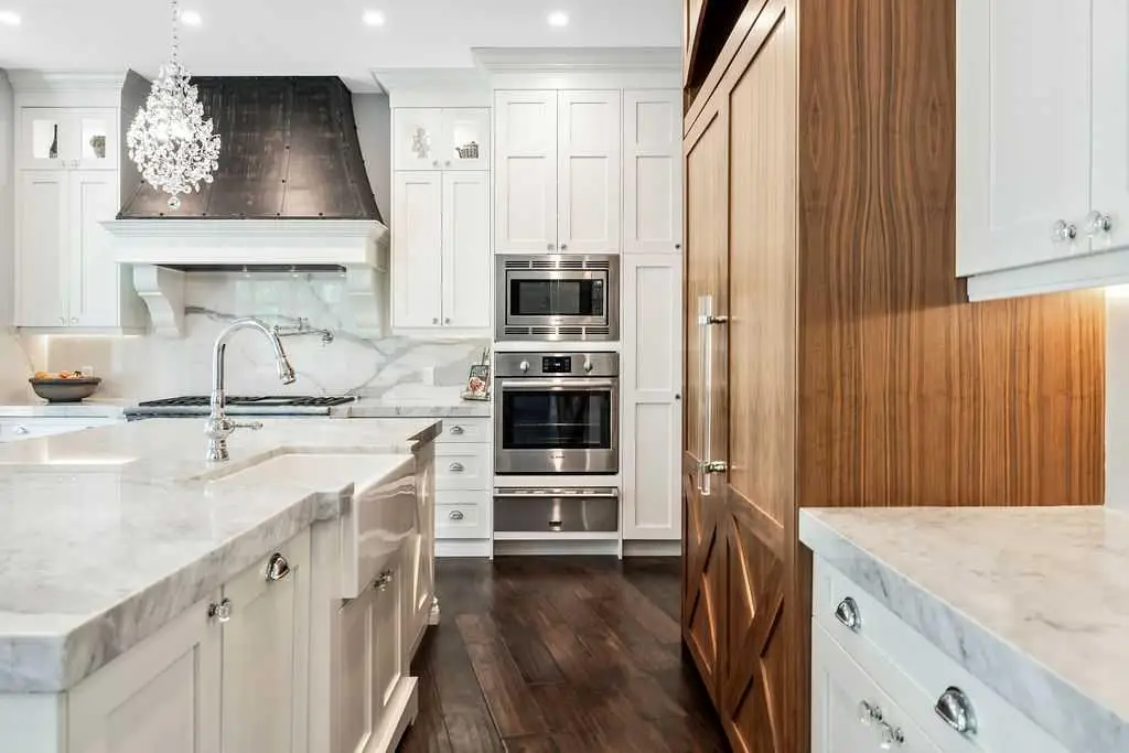 Gas fireplace surrounded by Italian marble