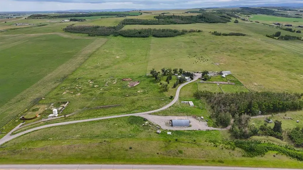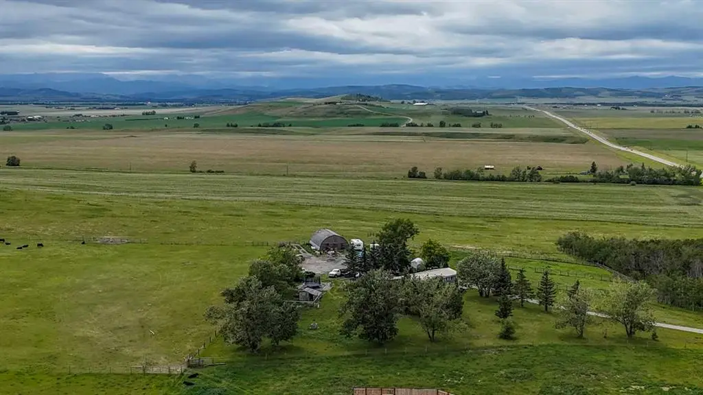 Welcome to your dream country retreat, nestled on 145.11 acres in picturesque Foothills County. Perfectly set up for cattle, horses, or any four-legged friends you wish to raise, this property features mature trees, rolling pastures, and 180-degree unobstructed views of the Rocky Mountains and Foothills, offering the ultimate rural lifestyle—just minutes from Diamond Valley and Okotoks. The 1,300 sq. ft. bilevel home is warm and inviting, with five bedrooms and three full bathrooms, ideal for family living. Enjoy cozy evenings by the wood-burning fireplace, and host gatherings on the expansive outdoor patio and large back deck, where you can watch breathtaking sunsets over the hills. Families will also appreciate school bus service to both public and Catholic schools, ensuring convenient access to education while still enjoying the peace of country living. For livestock and equipment needs, the property is exceptionally well-equipped with a drive-through Quonset featuring horse stalls, a second Quonset ideal for equipment storage, and an additional shed for extra space. All outbuildings are powered with electricity, while stock waterers and strategically placed water hydrants ensure convenience and efficiency for your animals and operations. The land is cross-fenced, making it ideal for grazing and easy livestock management. This acreage offers the best of both worlds when it comes to location and accessibility. It sits along Highway 7, providing excellent year-round access for cattle, agricultural, or commercial operations. Moving livestock, hauling equipment, or transporting goods is effortless with the direct highway frontage—yet the home itself is set far enough back from the road, surrounded by mature trees and natural landscaping, creating a peaceful, private setting where you won’t hear the traffic. There is also an opportunity to lease the land to a neighboring farmer, offering potential supplemental income or an option for those who want to enjoy the rural lifestyle without actively farming the entire acreage. Ask for further details on leasing arrangements. This prime location offers the perfect balance of rural serenity and convenience, situated just minutes from Diamond Valley, Okotoks, and all essential amenities. From the “Back 40,” you’ll enjoy incredible panoramic views of the rolling Foothills and the majestic Rocky Mountains, creating a truly breathtaking backdrop for your country lifestyle. Whether you’re looking for a working cattle operation, an equestrian setup, or a private countryside escape, this property is a rare find with endless potential. Don’t miss this opportunity to own a true Foothills gem with room to grow, play, and thrive!