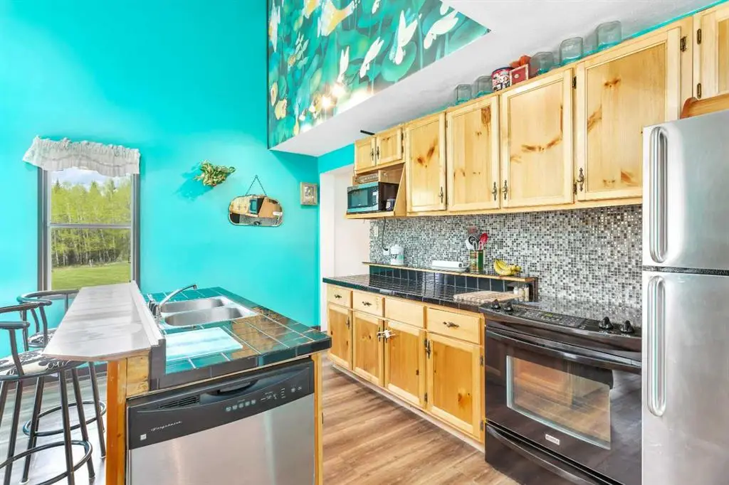 A Hidden Paradise Just Minutes from Sundre! Welcome to your private sanctuary—153 acres of unspoiled nature, fresh air, and pure Alberta charm nestled in the West Country, just minutes from Sundre. Whether you're seeking a peaceful retreat, a thriving hobby farm, or the ideal home base for country living, this one-of-a-kind estate delivers it all. At the heart of the property is a custom 1½-story home with 2,775 sq ft of thoughtfully developed living space, 4 spacious bedrooms, and 2 bathrooms. Step inside to discover new vinyl plank flooring, an inviting wood-burning stove, and a bright country kitchen framed by glowing pine cabinetry and soaring ceilings wrapped in artistic flair. From the cozy living area, you can walk out onto a sprawling deck or unwind in the tranquil three-season sunroom, sipping coffee while listening to the wind whisper through the trees. The main floor primary suite offers quiet comfort, with a second bedroom ideal as a guest space or home office. Upstairs, a lofted lounge and additional bedroom provide a peaceful retreat. The fully developed basement includes a family room and fourth bedroom, plus dual washer/dryer sets—perfect for hardworking homesteaders or gardening enthusiasts. Outside is where the magic continues. A quad garage with a car hoist is ready for projects big and small, with roughed-in in-floor heating, & 4 separate overhead doors. For animal lovers, a goat shed, chicken coop, and power-equipped turkey house await. Fenced pasture, a greenhouse, garden plot, and multiple sheds support your dream of self-sufficiency or sustainable living. 10 acres are securely fenced, 40–50 acres are open pasture, and the remaining land is rich with mature trees and roaming wildlife—from deer and elk to moose and waterfowl. And with a registered $4,450/year surface lease income, the land works for you while you enjoy it. Whether you envision a private retreat, a thriving hobby farm, or simply room to breathe fresh air, this is the kind of property where stories are born and memories are made. “Home Is Where Your Story Begins”—come write yours in the West Country wilderness. Must See Property to Truly Appreciate.