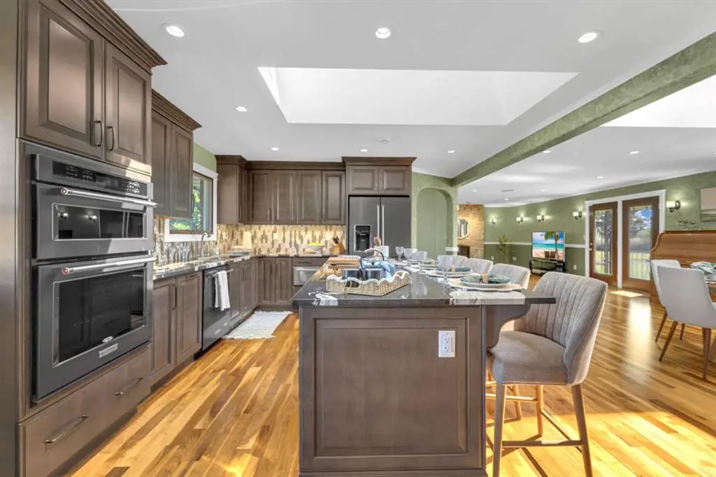 This exceptional property offers 17.92 acres with two residences, a fully finished shop, and multiple outbuildings, located just 1 mile off Hwy 11A on a quiet dead-end road for added privacy, while still providing quick access to both Red Deer and Sylvan Lake. The main home is a spacious bungalow, fully renovated in 2016 with a new roof in 2010. Highlights include hardwood and tile flooring, granite countertops throughout, and an open concept kitchen with a large granite island, black stainless steel appliances, induction cooktop, convection wall oven, warming oven, built in microwave, beautiful cabinetry, and a stunning tile backsplash that flows through the kitchen and dining area. The living room features a wood-burning fireplace, while the sitting room offers a gas fireplace. The primary suite includes a walk-in closet and a luxury ensuite with full bathroom and a deep soaker jet tub in its own private area. Two additional main floor bedrooms, a full bathroom, a half bathroom and the laundry area complete the main level. The basement is nearly finished with a large recreation room, cold room, and utility room with two furnaces, water softener, and A/C. The attached oversized double garage is heated with radiant heat. A second residence, a 2014 manufactured home, offers 3 bedrooms, 2 full bathrooms, air conditioning, washer/dryer, a walk-in pantry, a primary suite with walk-in closet, and a deep corner jetted tub. Outbuildings include a 60’ x 100’ heated shop with radiant heat, three oversized doors (16’ and 14’), bathroom with urinal, washer/dryer hookup, concrete floors in excellent condition, and 220V power in shop (3), quonset (2) and garage (1). Additional buildings include a 70’ x 40’ Quonset with concrete floor, power, and roughed-in underfloor heating, plus five sheds. Both the shop and Quonset feature durable metal roofing. Approximately 16 acres are currently seeded to barley under a gentleman’s agreement until mid-September. This rare offering combines two residences, extensive outbuildings, privacy on a dead-end road, and a prime location close to town — the opportunities here are truly endless.