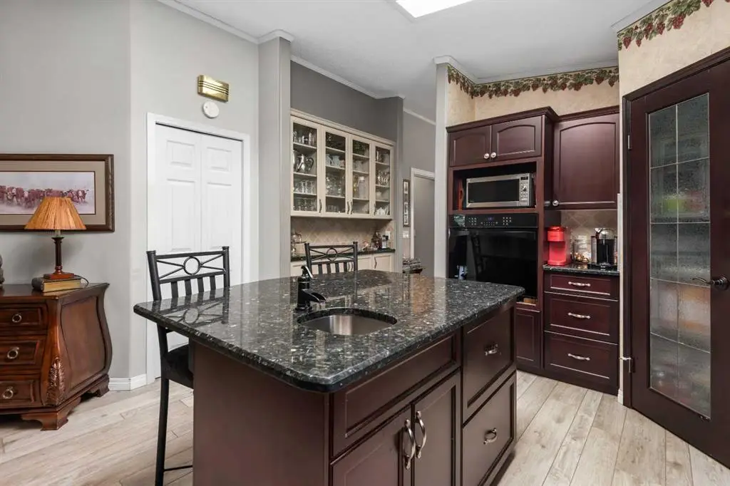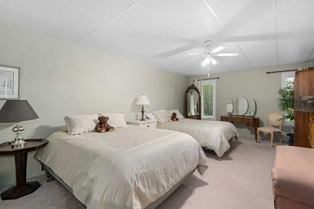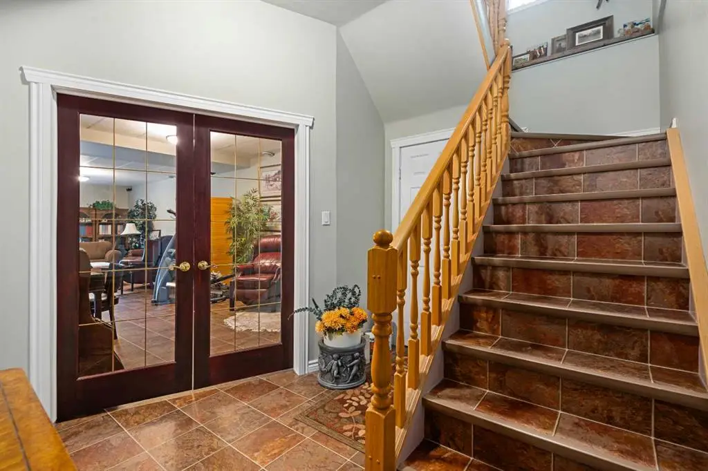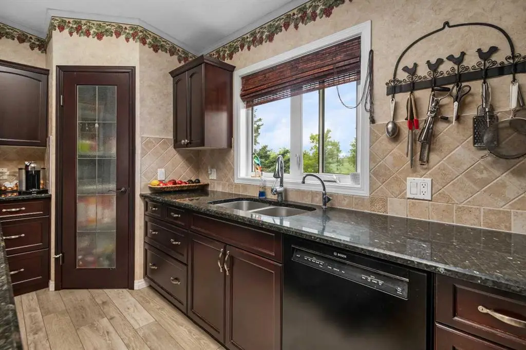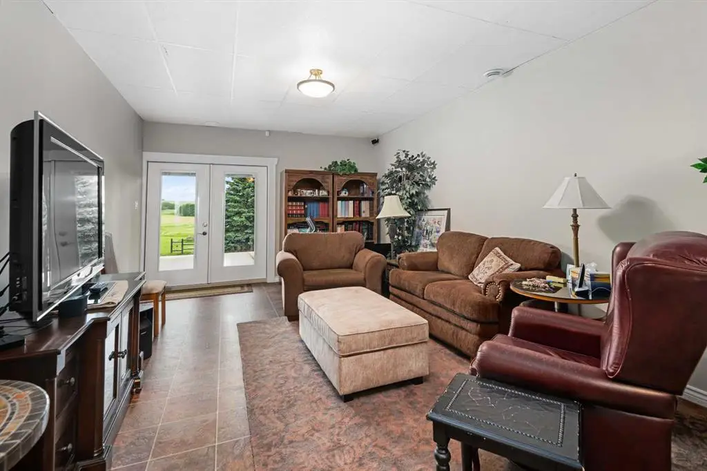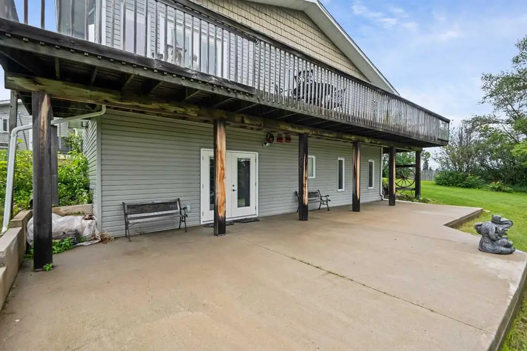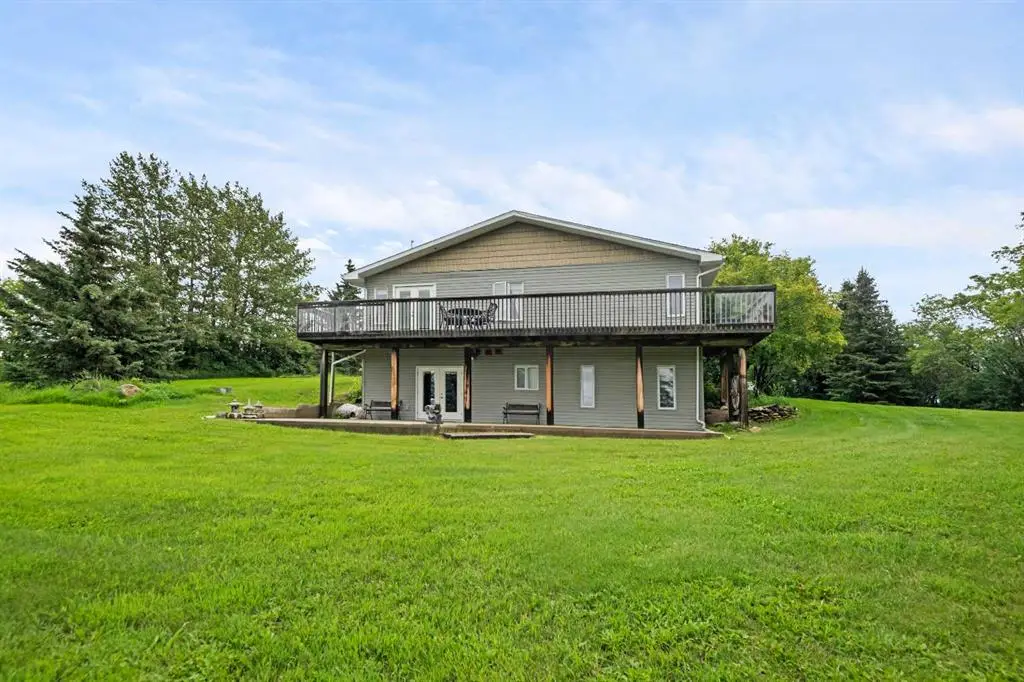 43 acres in the Madden area! A very easy commute to the city or escape to the mountains! This 1997 model modular-prefab home is in mint shape and includes a finished walk-out basement to large patio. The main floor is nice setup for families or couples, great kitchen with a large island and breakfast nook. A formal dining room is great for family functions with French doors to a covered deck (perfect for morning coffee)! The sunroom can double as a quiet sitting room/office, leading to the Primary bedroom with 4-piece ensuite. Two more bedrooms with separate 4-piece bath is convenient exit off the living room. (there is a RI doorway from the master to the hallway to these bedrooms but was never installed, future if you have toddler's). The large living room a gorgeous stone faced gas fireplace for those cooler mornings in the spring and fall, and you'll love the view out to the west from the 50 ft balcony! The basement is fully finished with large family room, 1 huge bedroom and a second that doubles as an office. Just off the family room is a 3-piece bath w/ shower, the mechanical room with HE F/A furnace with A/C, boiler for the slab heated floor and main floor laundry/Mudroom, the water pressure tank and water conditioner/softener & distiller. In the storage room off the lower laundry room is a transfer switch if you ever need to connect your generator. If your hobby is wine making this might be the right for you. The triple garage is finished and heated. There is a shed for all your garden needs, plus a big shed for woodworking or storage. There's also a shedrow for storing boats trailers, lawn equipment etc. If you have horses, or other stock the pasture offers a seasonal creek, dug-out that used to was used to stock fish for the grand kids. The balance of the land is in crop and is rented out for 2025. Reasonably priced for those looking for something more then a house on a postage stamp!