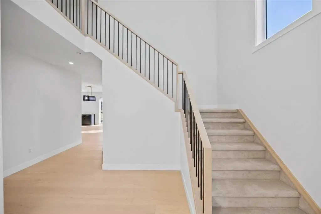 Welcome to the brand new development of Knightsbridge in Cambridge Park. Minutes away from access to Stoney Trail and East Hills shopping centre. The Whitehaven is a stunning estate home designed to blend luxury and practicality. Set on a generous 6027 sq ft lot, this home provides an expansive backyard and a side-drive triple car garage. These are not your typical cookie cutter homes. With 3,203 sq ft of living space, this custom-built masterpiece features 5 spacious bedrooms and 4 beautifully designed bathrooms, offering ample room for family and guests. This home is loaded with upgrades including: Main floor full bath, Jack and Jill ensuites for added convenience, High ceilings & a Spice kitchen to enhance your culinary experiences. Inside, the main floor exudes elegance with rich hardwood flooring and 9 ft ceilings with 8 ft doors, and striking black-framed windows that invite natural light. The gourmet kitchen is a chef’s dream, complete with an oversized island, a secondary spice kitchen, sleek stainless steel appliances. An open concept formal dining and living area set the stage for gatherings. The main floor also includes a flex room as well as a 4 pc bathroom. The primary suite on the upper floors is a true sanctuary with a freestanding tub and a custom-built closet. The home’s thoughtful design continues with 3 more generous sized bedrooms on the second floor, a bonus room for entertaining, a Jack & Jill ensuite bathroom for convenience, as well as a second floor laundry room. . Step outside to enjoy a completed rear deck with steps leading to a private outdoor oasis. This home also offers a triple attached garage allowing plenty of space for extra parking. This community is within minutes to Calgary, Chestermere, and East Hills, 18 minutes to Downtown Calgary, and provides quick access to Stoney Trail, Highway 1, and McKnight Blvd making it easy to get anywhere in and around the city. Located near shopping centres, Costco, public and private schools, Khalsa school's, parks, and many other amenities, while still offering quiet country-living with wide open green spaces, walking paths, and playgrounds.