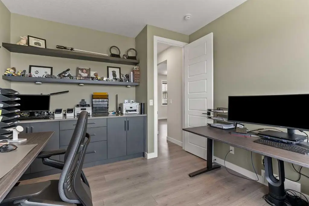 Discover this beautiful home just outside of Cochrane in Monterra. Offering nearly 3,400 sq ft of thoughtfully developed living space on a generous 0.45-acre lot, it delivers the top-tier essentials buyers crave. The main floor impresses with an open, airy design featuring vaulted ceilings that create a bright, inviting atmosphere. The spacious kitchen boasts a large island and soft-close cabinets, flowing seamlessly into the dining and living areas—ideal for hosting family and friends. The primary suite is a private sanctuary, with an elegant ensuite that includes a soaker tub, shower, and dual sinks, complemented by a large walk-in closet with built-in organizers. Convenience is key with a well-appointed laundry room located along the corridor to the heated, insulated triple garage. Step outside onto expansive decks—12x28 feet on both levels—that are perfect for outdoor entertaining. The lower deck features a hot tub, offering a relaxing retreat with stunning mountain views. Throughout the home, you’ll find custom built-ins, including a dedicated office with custom cabinetry and a built-in pantry for ample storage. The finished basement provides additional living space with two bedrooms, a spacious rec room that opens to a large patio, and a versatile three-season room equipped with retractable screens to enjoy the outdoors in comfort. This property combines luxurious finishes, practical design, and breathtaking natural scenery—making it an exceptional place to live and entertain.