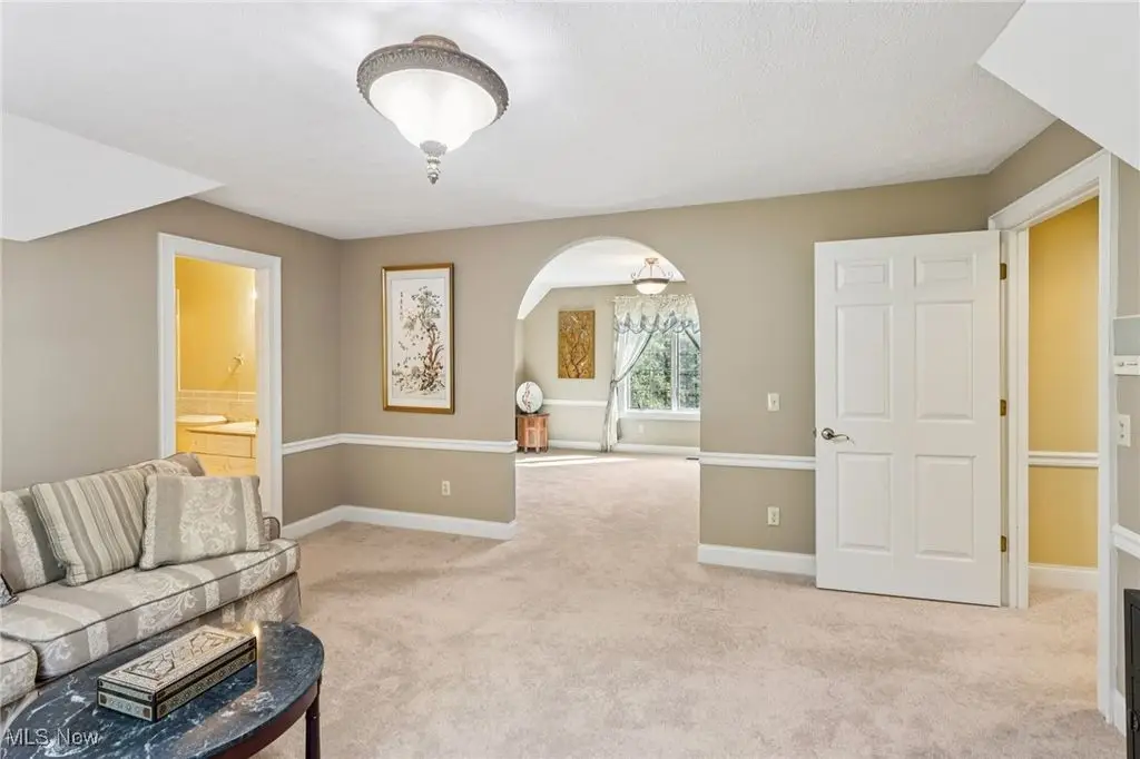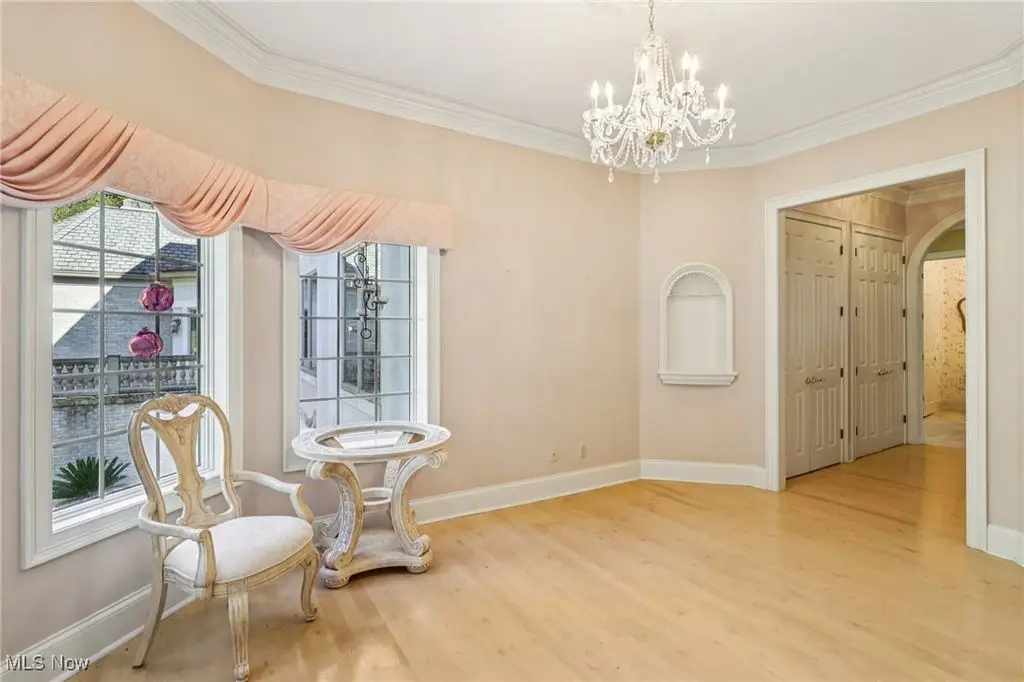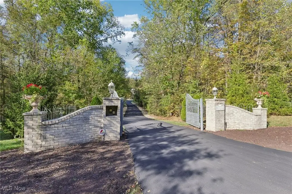 Stunning custom-built Scholz Design Brick Villa with 6+ bedrooms and 6.5 bathrooms situated on 5 gorgeous acres surrounded by lush mature plantings and landscaped gardens. The elegant iron forged gate opens to the tree-lined driveway that leads to an inviting courtyard with fountain and beautiful gardens. This exquisite home offers superior craftsmanship, imported tile, stone work, handcrafted millwork and stunning details throughout. The grand foyer opens to the most spectacular great room with 25' ceilings, hardwood floors, fireplace, custom moldings, archways and floor to ceiling Palladian windows. The heart of this home is the fabulous Cook's kitchen with granite counter tops, custom cabinetry, center island, breakfast bar and dinette area that is open to the family/hearth room with gas fireplace and extraordinary Turret style ceiling. Charming separate morning/bonus room as well that leads to attached laundry room. Large handsome cherry-stained library/den with custom shelving. First floor Owner's suite has a sitting room, walk-in closets, two vanities with hand painted sinks in the glamour bath. Elegant powder room and the 2nd full bathroom complete the first floor. The second floor features a graceful balcony overlooking the Great Room, loft area with skylights, private guest suite that includes a sitting room and full bath, four additional spacious bedrooms, and two more full baths. The walk-out lower level includes a theater area, recreation room with kitchenette, huge bonus room/bedroom/exercise room with glam full bath and sauna. The lower level opens to secluded multi-level brick patios with stunning waterfall and pond. This amazing property is situated on 5 fenced acres within 20 miles to downtown Cleveland.
