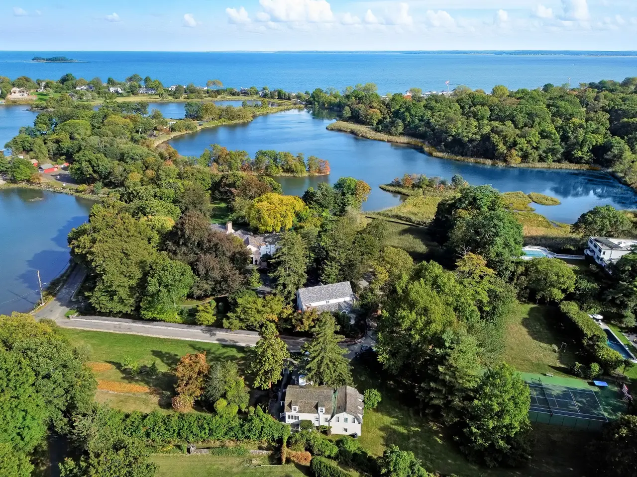 Nestled on one of Rye's most coveted streets, this distinguished Colonial Revival on Kirby Lane captures the timeless beauty and historic charm that define this coastal neighborhoods 350-year legacy. Once part of a grand Gilded Age estate, the clapboard residence exudes New England character with its graceful roofline, multi-pane windows and octagonal bay crowned by a bell-shaped roof that bathes the interior in natural light. Set on 1.1 private acres near the water's edge, the home enjoys serene views of Kirby Pond and a tranquil setting surrounded by mature trees and a sweeping front lawn. The arched entry portico and glass paneled French door entry creates a storybook welcome, leading to spaces rich in character. Inside, sun-filled rooms blend timeless detailing with modern flow. The family room with custom built-ins opens to the kitchen with stainless countertops and a glass-wrapped breakfast room. The dramatic living room, anchored by a marble-surround fireplace and expansive windows, overlooks the park-like grounds, while the adjoining dining area glows beneath a statement chandelier and the charming cupola. The first-floor primary suite features a tray ceiling, rich millwork, oversized windows and a marble-clad ensuite bath. Three additional bedrooms and a full bath complete the second floor. In a neighborhood once celebrated as a summer haven for New Yorks elite, this home presents a rare opportunity to own a piece of Ryes storied past where timeless craftsmanship, architectural distinction, and the serenity of coastal living come beautifully together. An exceptional opportunity to restore, reimagine, or build your dream home on one of Ryes most storied streets.