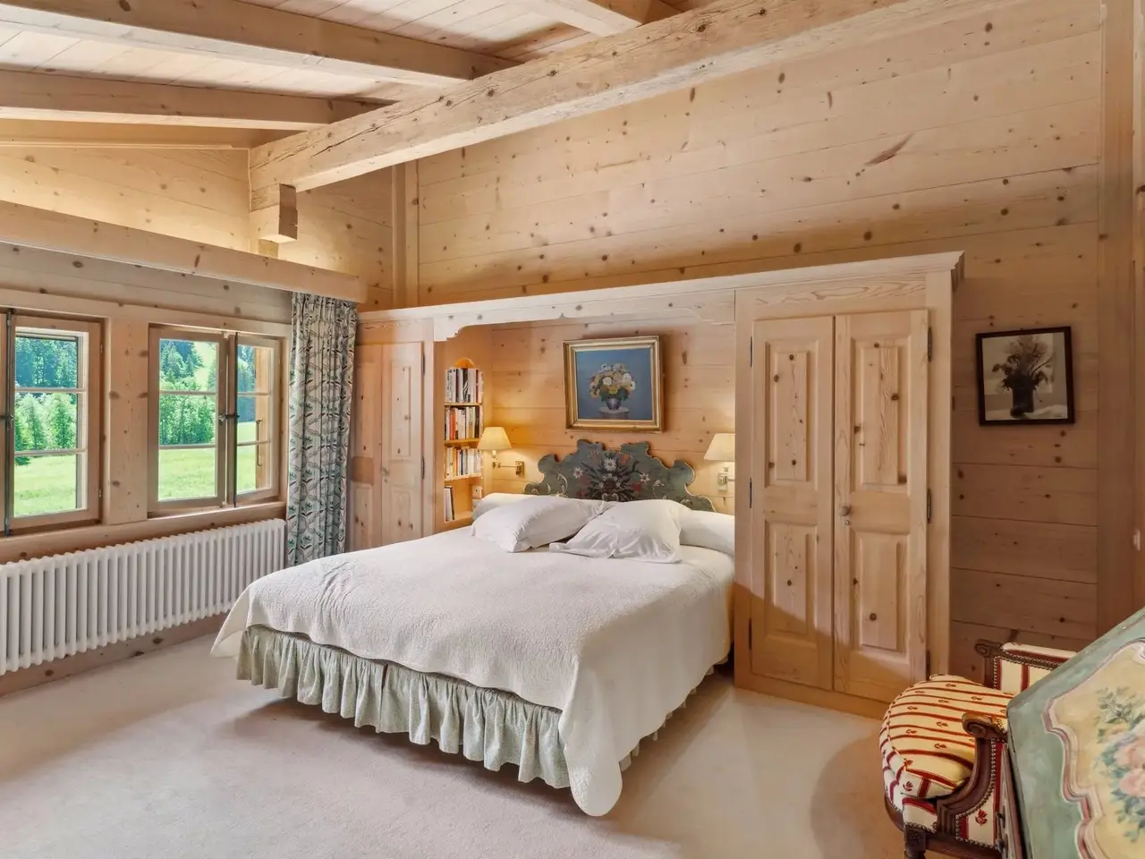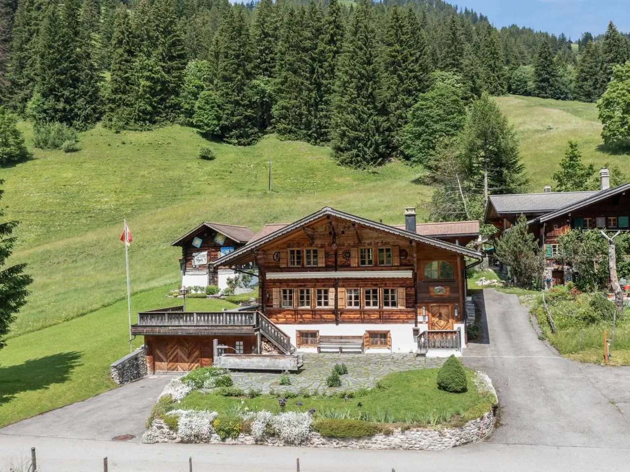 In the heart of Saanenland, a stone's throw from Saanen and Gstaad, this 1859 chalet exudes old-world charm. Carefully restored with reclaimed wood, it combines authenticity and comfort in an exceptional natural setting, close to the Eggli and Videmanette slopes. Bright and welcoming, it offers beautiful spaces, a converted mazot, and a vast garden for enjoying the mountains. It offers a two-car garage and outdoor space for several cars.