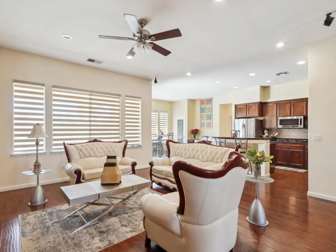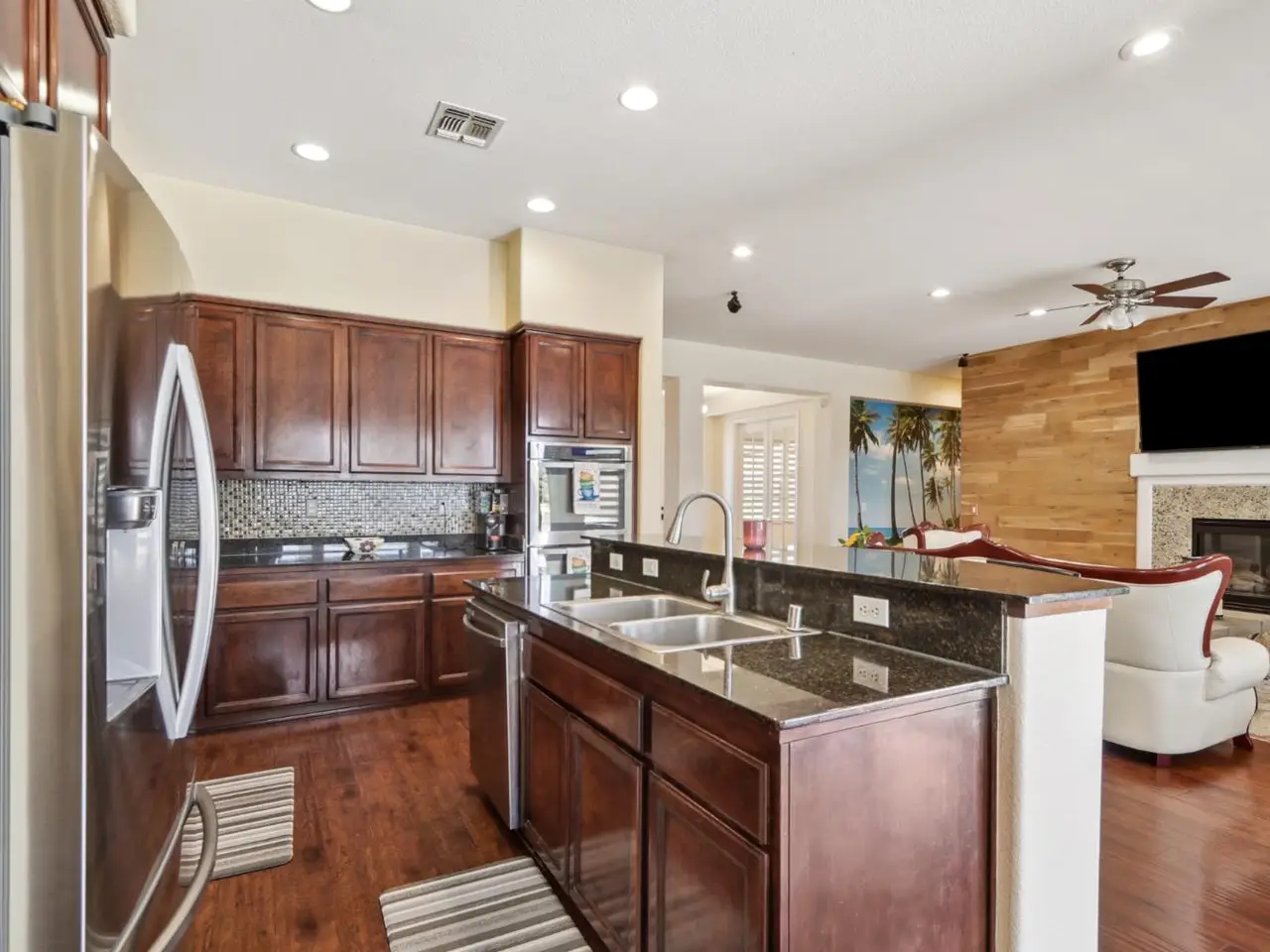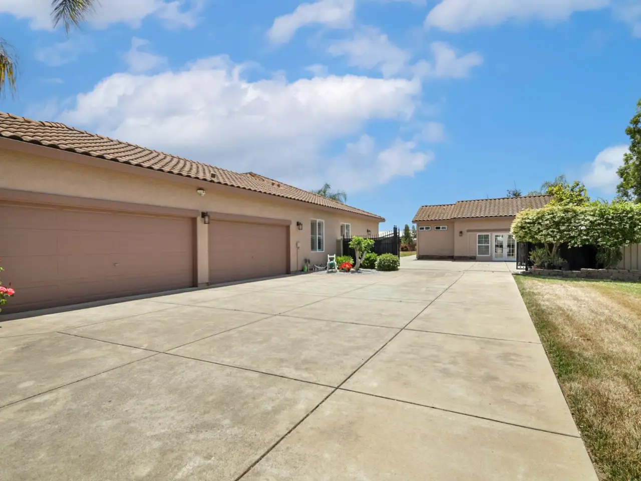 Welcome to this beautifully designed 5-bedroom, 3-bath single-story home nestled in the desirable Silver Springs Ranch Estates. Situated on a generous 0.748-acre lot, this property offers space, flexibility, and comfort for modern and multi-generational living. Step through the grand entryway into an inviting layout featuring a formal dining room, a separate den, and an open-concept living area. The living room boasts a gas fireplace and seamlessly flows into the kitchen, complete with a dining bar, breakfast nook, stainless steel appliances, gas cooktop, double oven, and refrigerator - a dream setup for any home chef. Perfect for extended family or guests, this property includes a separate Casita, offering 1 bedroom, a full bath, and a cozy living area. The expansive backyard provides plenty of room to build your dream pool, accommodate RV parking, or create a flourishing garden. A 4-car attached garage with finished walls, epoxy floor, sink plus a multitude of counter space and storage. Enjoy the serenity of nearby ponds and walking trails, all while being just minutes from local amenities. Experience the best of country-style living with all the conveniences of town - this home is a must-see!