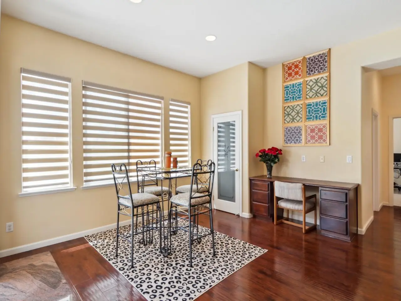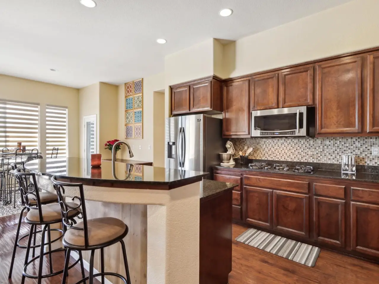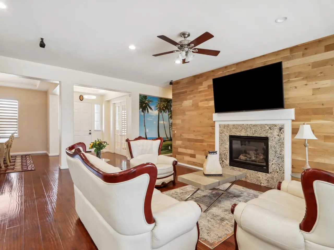 Welcome to this beautifully designed 5-bedroom, 3-bath single-story home nestled in the desirable Silver Springs Ranch Estates. Situated on a generous 0.748-acre lot, this property offers space, flexibility, and comfort for modern and multi-generational living. Step through the grand entryway into an inviting layout featuring a formal dining room, a separate den, and an open-concept living area. The living room boasts a gas fireplace and seamlessly flows into the kitchen, complete with a dining bar, breakfast nook, stainless steel appliances, gas cooktop, double oven, and refrigerator - a dream setup for any home chef. Perfect for extended family or guests, this property includes a separate Casita, offering 1 bedroom, a full bath, and a cozy living area. The expansive backyard provides plenty of room to build your dream pool, accommodate RV parking, or create a flourishing garden. A 4-car attached garage with finished walls, epoxy floor, sink plus a multitude of counter space and storage. Enjoy the serenity of nearby ponds and walking trails, all while being just minutes from local amenities. Experience the best of country-style living with all the conveniences of town - this home is a must-see!
