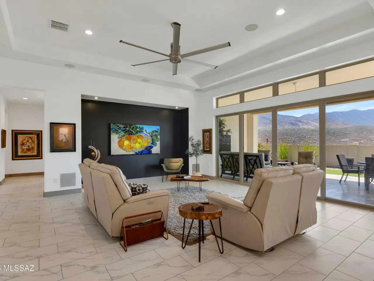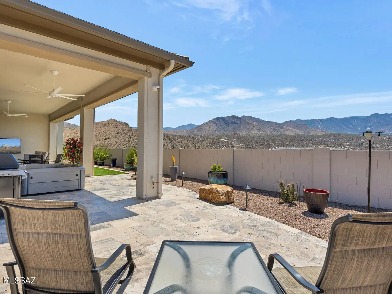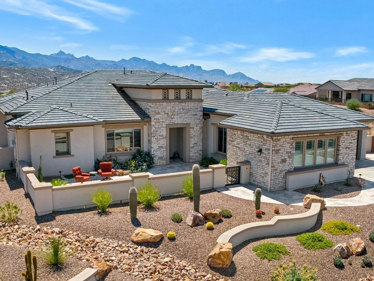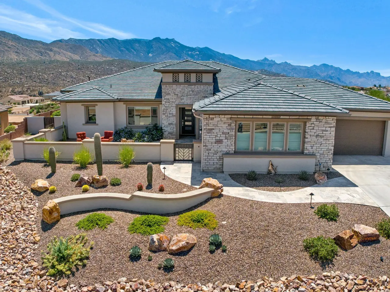 Why wait to build when you can move into this magnificent Sonrisa model in Saddlebrooke Preserve with all the bells and whistles. Situated on an elevated lot with Panoramic Catalina Mountain views, this home features a Chef's kitchen including Wolf appliances: Convection/Steam Oven, M-Series Gourmet Oven, 36-inch Gas Cooktop with Infrared Griddle & Hood Vent, Pot Filler Faucet and Sub-Zero 36'' Refrigerator/Freezer Towers. And there's more, Oversized Waterfall Island, Upgraded Cabinets with Roll-out Shelves, above and under cabinet lighting, Cambria Luxury Series Countertops, and a Butler's Pantry with Sub-Zero Icemaker. You Techies will appreciate Smart Home Automation: Lighting, Fans, Roman shades, Patio shades, Audio, Video, Security, Surveillance, Heat & Air, Garage Doors,
