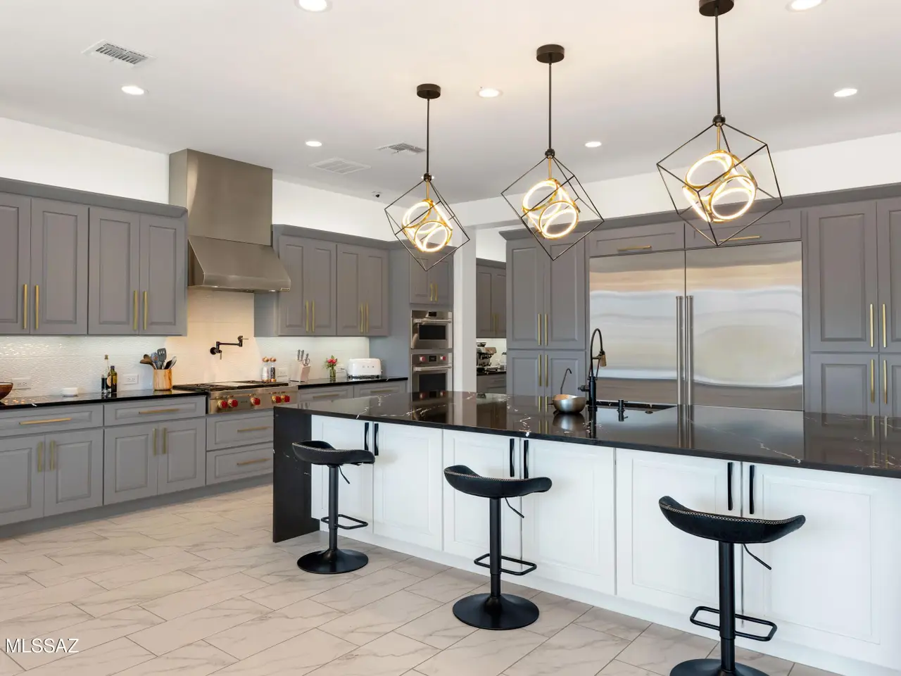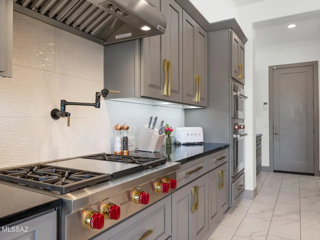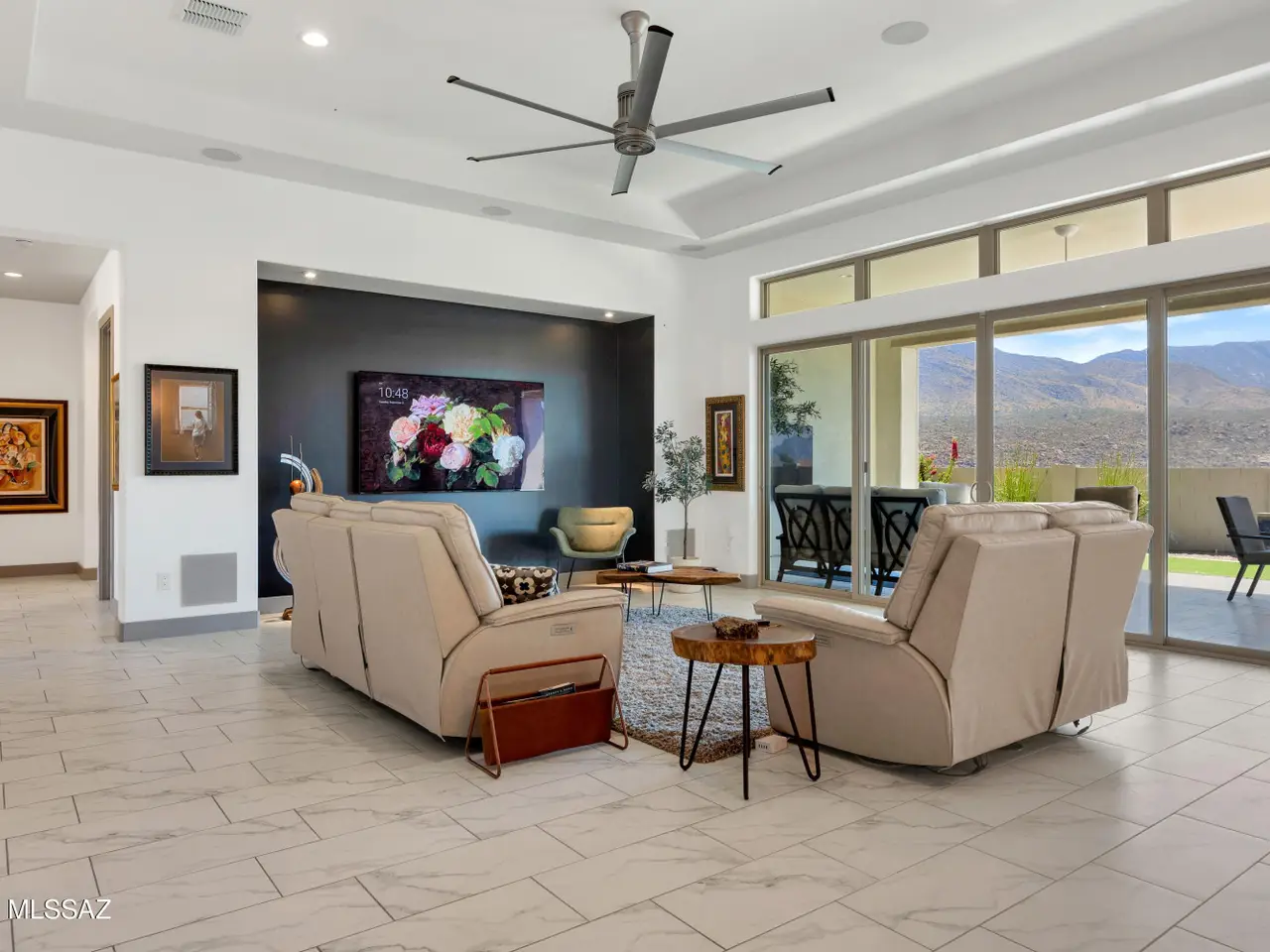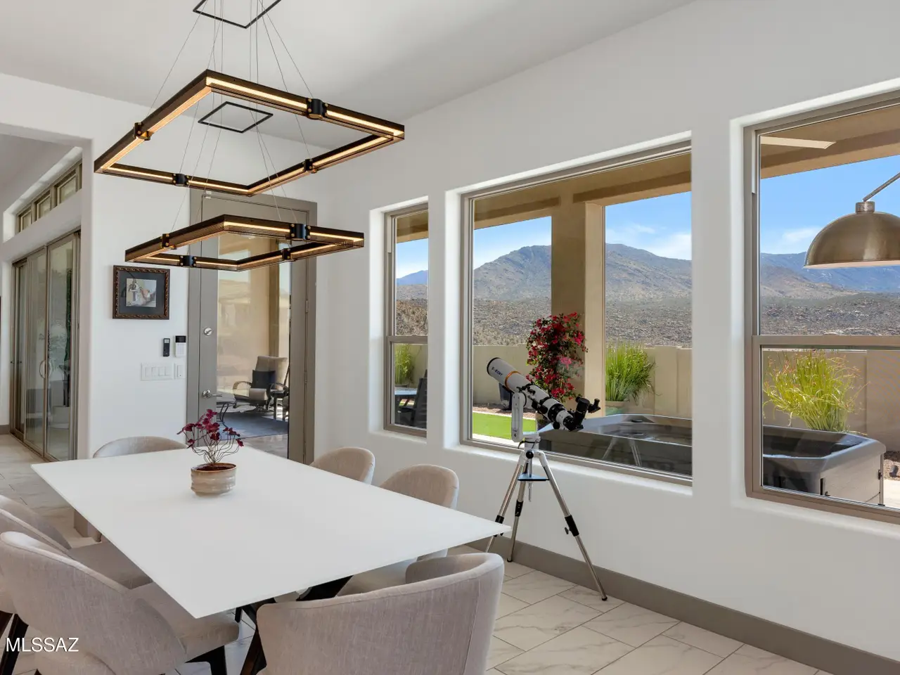 Why wait to build when you can move into this magnificent Sonrisa model in Saddlebrooke Preserve with all the bells and whistles. Situated on an elevated lot with Panoramic Catalina Mountain views, this home features a Chef's kitchen including Wolf appliances: Convection/Steam Oven, M-Series Gourmet Oven, 36-inch Gas Cooktop with Infrared Griddle & Hood Vent, Pot Filler Faucet and Sub-Zero 36'' Refrigerator/Freezer Towers. And there's more, Oversized Waterfall Island, Upgraded Cabinets with Roll-out Shelves, above and under cabinet lighting, Cambria Luxury Series Countertops, and a Butler's Pantry with Sub-Zero Icemaker. You Techies will appreciate Smart Home Automation: Lighting, Fans, Roman shades, Patio shades, Audio, Video, Security, Surveillance, Heat & Air, Garage Doors,