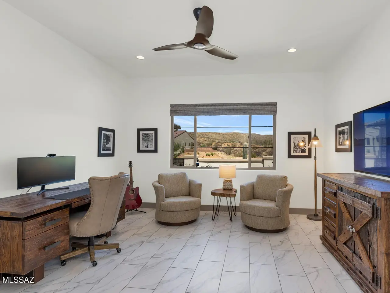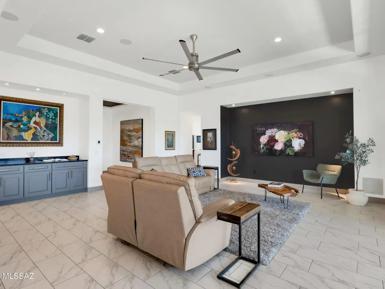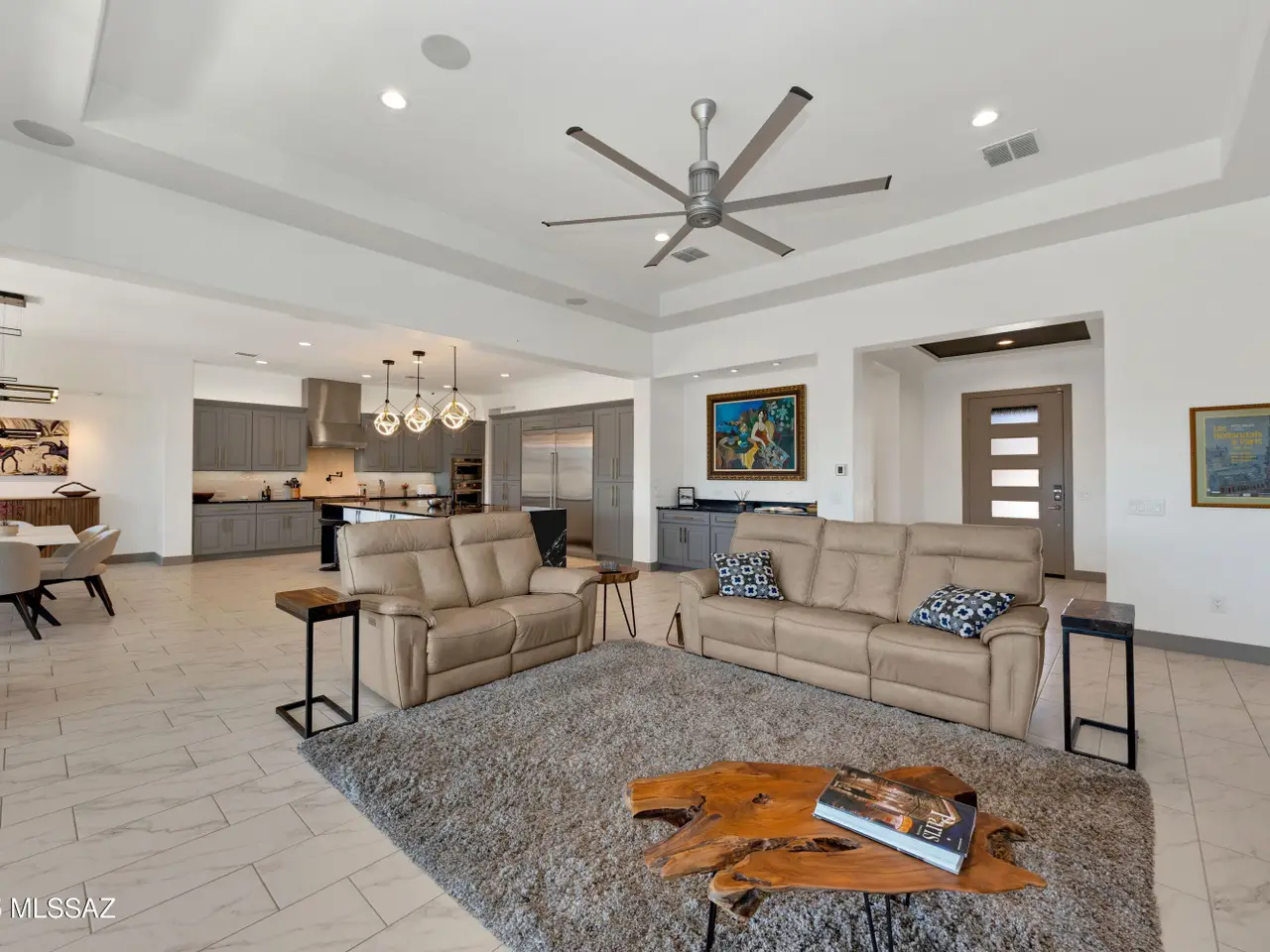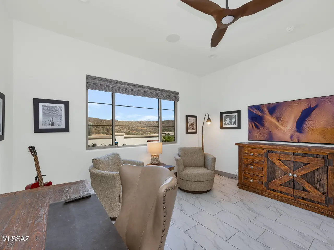 Why wait to build when you can move into this magnificent Sonrisa model in Saddlebrooke Preserve with all the bells and whistles. Situated on an elevated lot with Panoramic Catalina Mountain views, this home features a Chef's kitchen including Wolf appliances: Convection/Steam Oven, M-Series Gourmet Oven, 36-inch Gas Cooktop with Infrared Griddle & Hood Vent, Pot Filler Faucet and Sub-Zero 36'' Refrigerator/Freezer Towers. And there's more, Oversized Waterfall Island, Upgraded Cabinets with Roll-out Shelves, above and under cabinet lighting, Cambria Luxury Series Countertops, and a Butler's Pantry with Sub-Zero Icemaker. You Techies will appreciate Smart Home Automation: Lighting, Fans, Roman shades, Patio shades, Audio, Video, Security, Surveillance, Heat & Air, Garage Doors,