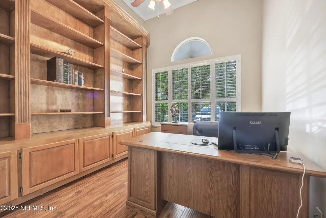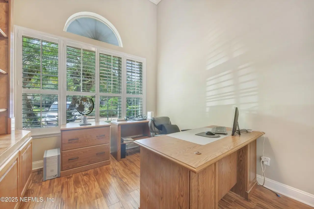 Experience refined lakefront living in this beautifully appointed estate, designed to elevate both comfort and style. Boasting 4 spacious bedrooms plus a flexible 5th room ideal for a private office, guest suite, or studio, this home effortlessly adapts to your lifestyle. Four full baths ensure a seamless experience for residents and guests alike. Inside, you'll find two expansive family rooms, a formal living space, and a generous dining room?perfect for elegant entertaining. The gourmet kitchen is a chef's dream with extensive cabinetry, a walk-in pantry, and a built-in wine cooler. A gas fireplace adds warmth and sophistication to the main living area. The 3-car garage offers ample space for luxury vehicles, storage, or a workshop. Outside, unwind in the screened-in pool overlooking a serene lake?offering privacy and stunning views. Nestled in an established, quiet enclave with quick access to I-95, this home is a rare blend of luxury, nature, and convenience.