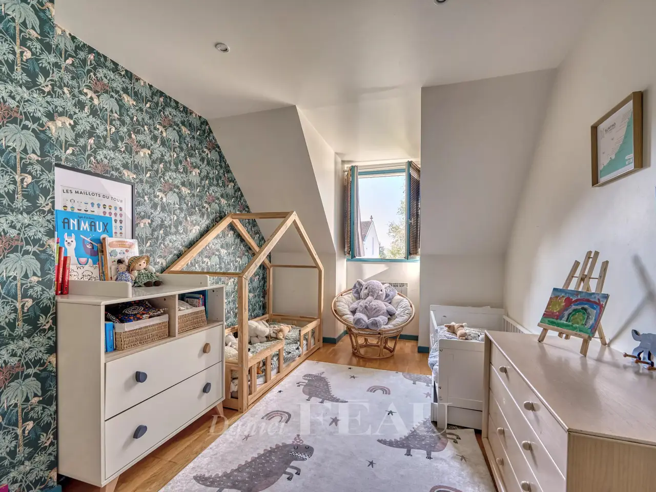Montretout neighbourhood. This south-facing near 175 sqm property located in a peaceful neighbourhood is set in an enclosed 991 sqm plot. It includes a 50 sqm living/reception room accessing the garden, a kitchen with dining facilities, a bedroom, a bathroom and a utility room. Upstairs are four bedrooms and two bathrooms. On a basement with a garage. An ideal family home near the shops, the schools and Saint-Cloud Park.