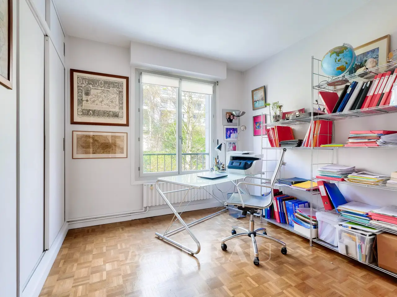 Montretout neighbourhood. This bright and peaceful near 100 sqm apartment is on the 2nd floor of a very well-maintained mid 20th century building. It includes a spacious double living/reception room opening onto a balcony commanding an open view of the capital, a kitchen, three bedrooms, a bathroom and a shower room. With a parking space and a cellar. In a convenient location near the shops, the station and the schools.