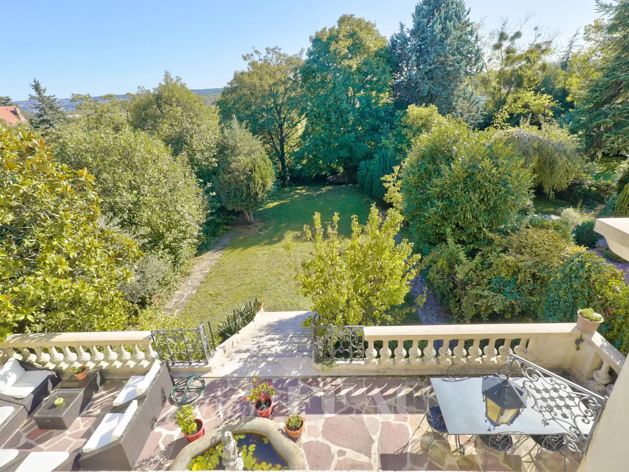 This elegant near 350 sqm property dating from the mid 20th century is set in a leafy 833 sqm plot in the sought-after Montretout neighbourhood. It includes an entrance hall featuring old panelling, a near 60 sqm living/reception room bathed in sunshine and featuring high ceilings, Versailles-style parquet flooring, a fireplace, Louis XV-style panelling and bookcases, a kitchen with dining facilities, a master suite with a study, a bath/shower room and wc, and a guest wc. The living rooms open onto a terrace and the fully south-facing garden, and enjoys an open view of Saint Cloud Forest. Upstairs a wide landing/recreation area leads to four bedrooms including a suite with a shower room and adjacent study/dressing room, a bath/shower room and wc, and a dressing room. On a fitted basement with a utility room, a boiler room, a wine cellar, a home cinema, a billiard room and a large garage for several vehicles. An ideal family home near the shops, the International Schools (American School, Deutsche Schule), and the transport networks.