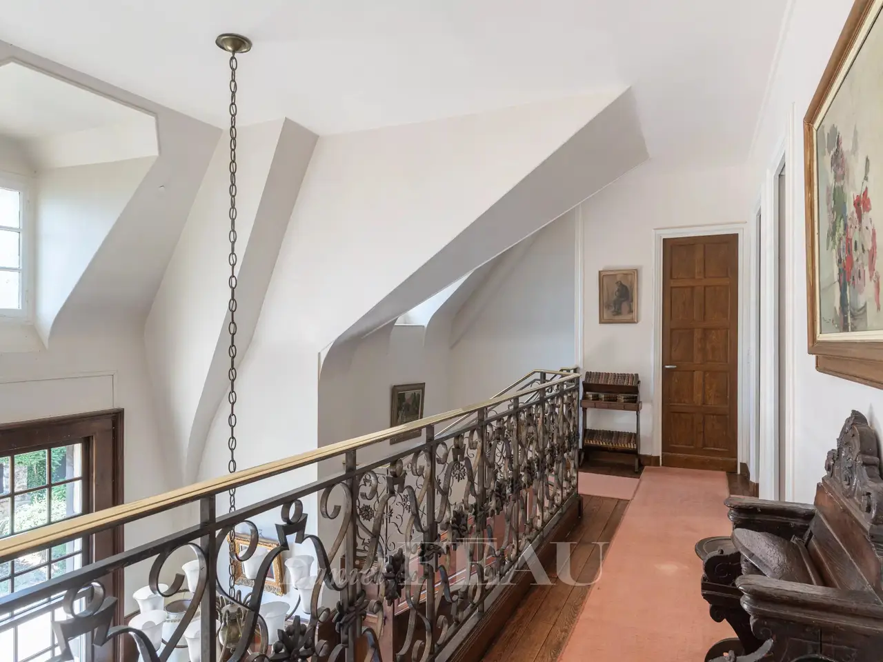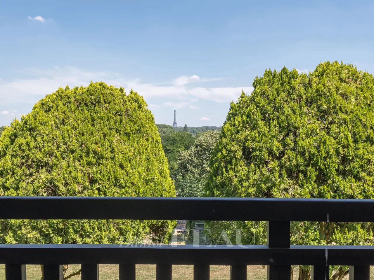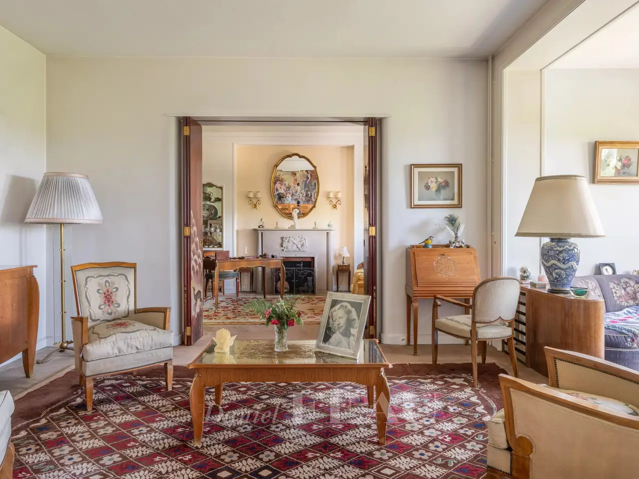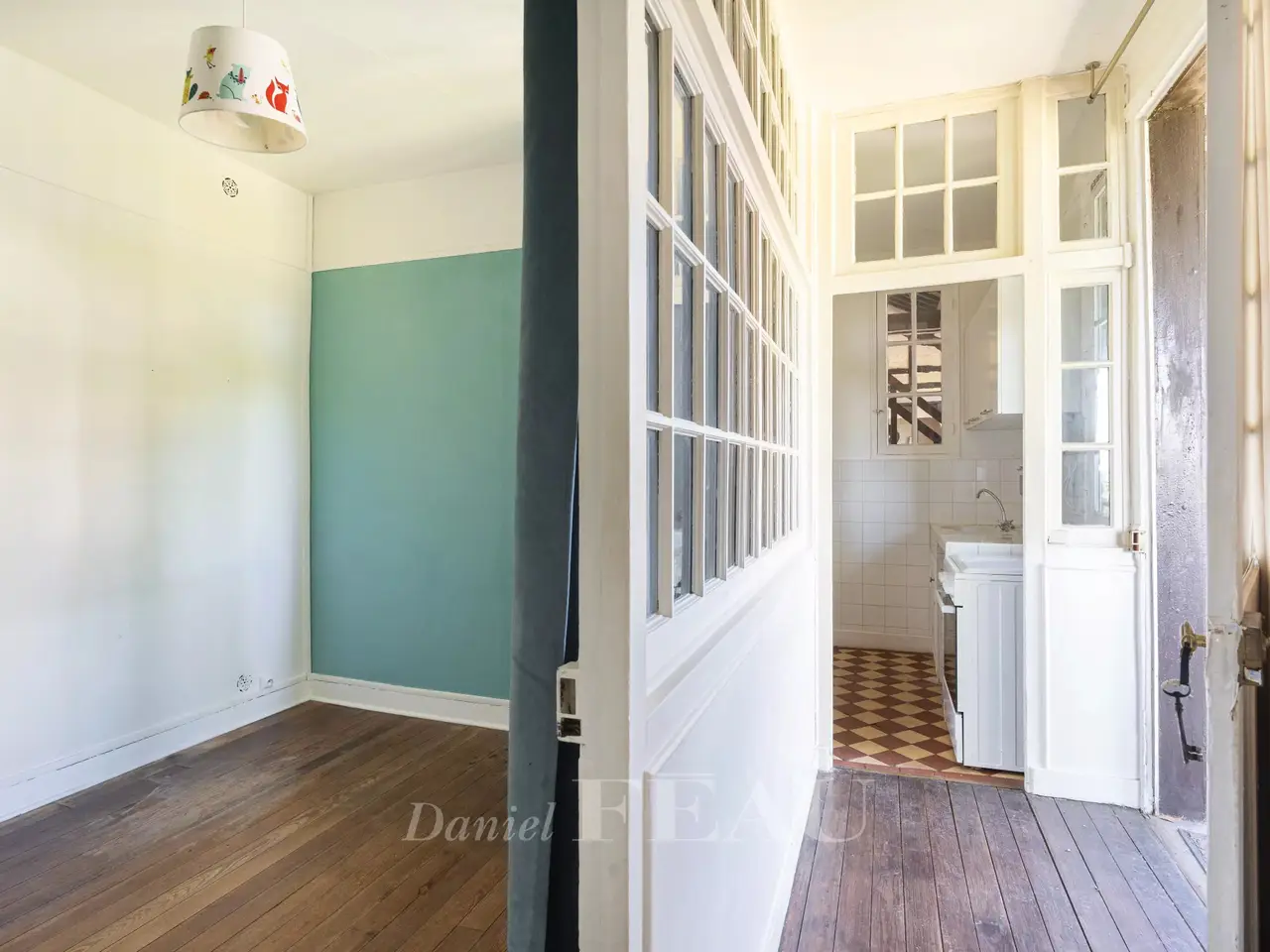Val d’Or neighbourhood. This early 20th century Anglo-Norman style property is in one of Saint-Cloud’s most sought-after streets a stone’s throw from the station. Entirely decorated by renowned interior decorator Jules Leleu, it includes a spacious entrance hall, a triple living/reception room bathed in sunshine and overlooking the landscaped garden benefiting from an open view of the Bois de Boulogne and the Eiffel Tower, a spacious kitchen, a study, and a bedroom with a bathroom. Upstairs are three further bedrooms (two opening onto a balcony), and two bathrooms. On a basement with a self-contained 31 sqm studio apartment. With a near 100 sqm annex comprising a 3-room apartment, a 35 sqm recreation room and a double garage.