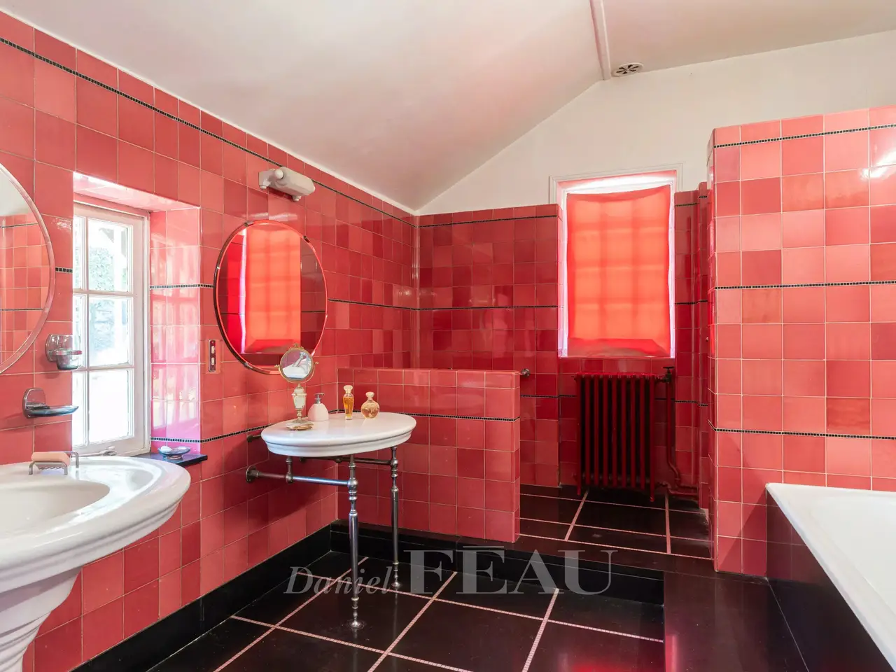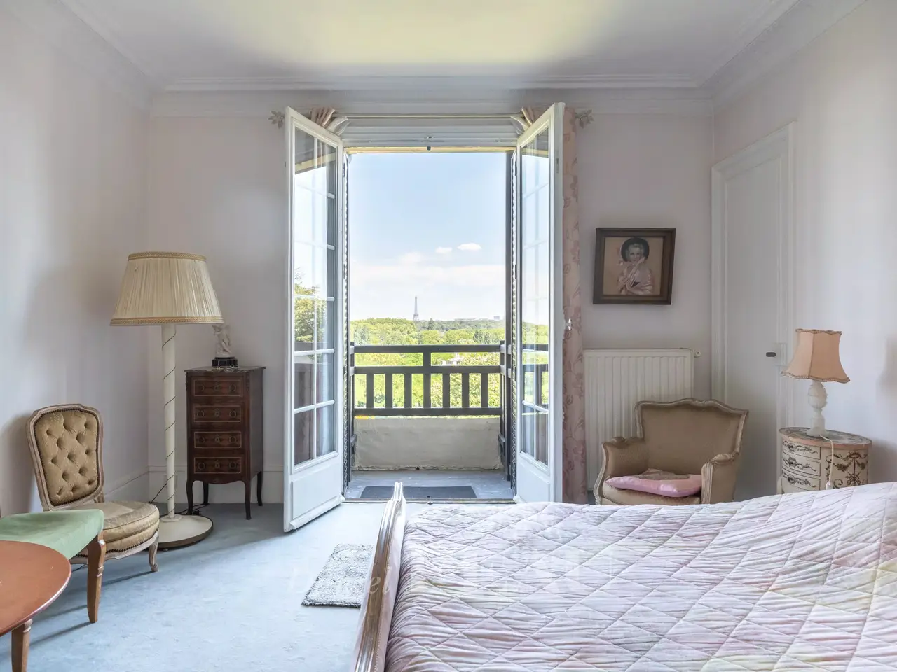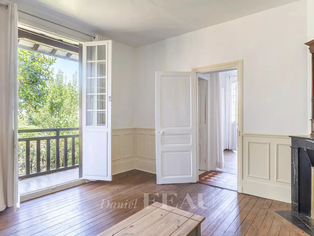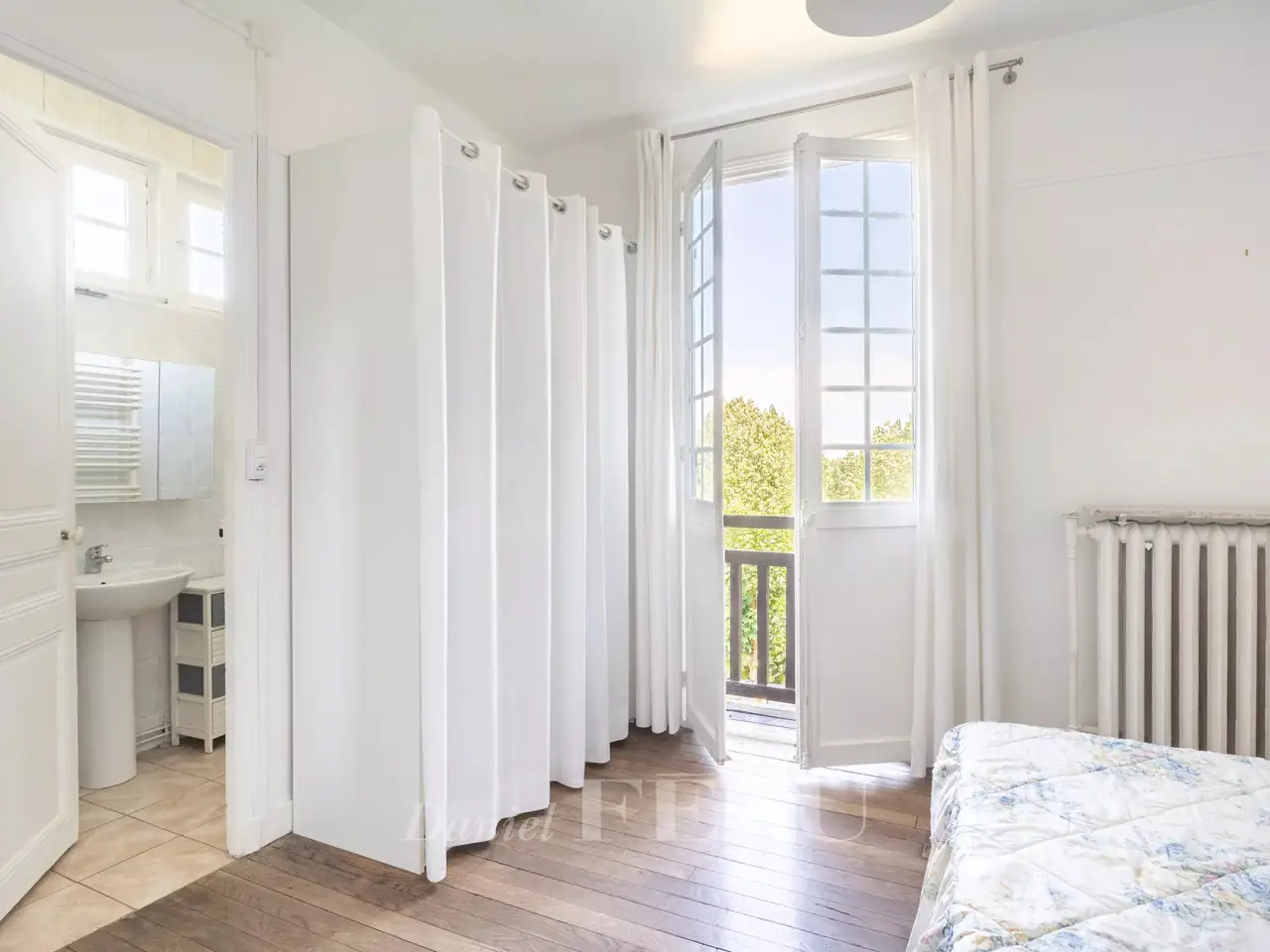 Val d’Or neighbourhood. This early 20th century Anglo-Norman style property is in one of Saint-Cloud’s most sought-after streets a stone’s throw from the station. Entirely decorated by renowned interior decorator Jules Leleu, it includes a spacious entrance hall, a triple living/reception room bathed in sunshine and overlooking the landscaped garden benefiting from an open view of the Bois de Boulogne and the Eiffel Tower, a spacious kitchen, a study, and a bedroom with a bathroom. Upstairs are three further bedrooms (two opening onto a balcony), and two bathrooms. On a basement with a self-contained 31 sqm studio apartment. With a near 100 sqm annex comprising a 3-room apartment, a 35 sqm recreation room and a double garage.