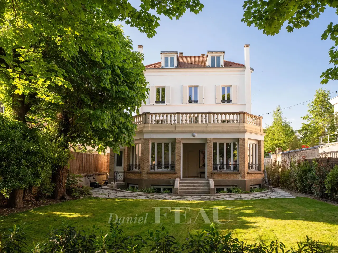 This elegant late 19th century property set in a 519 sqm plot located near Saint-Cloud Park has been recently renovated throughout allying period charm with contemporary comfort and style. It includes an entrance hall, a dual-aspect triple living/reception room with a fireplace, a dining room (all opening onto a terrace and the peaceful leafy garden), a fully equipped separate kitchen, and a utility room. Upstairs a landing leads to a reading area, two near 20 sqm bedrooms accessing a south-facing terrace, and a shower room. Two further bedrooms, a bathroom and a storage room are on the second floor. A 5th and 6th bedroom and a wc are on the top floor. The entresol comprises a recreation/fitness room and a wine cellar.