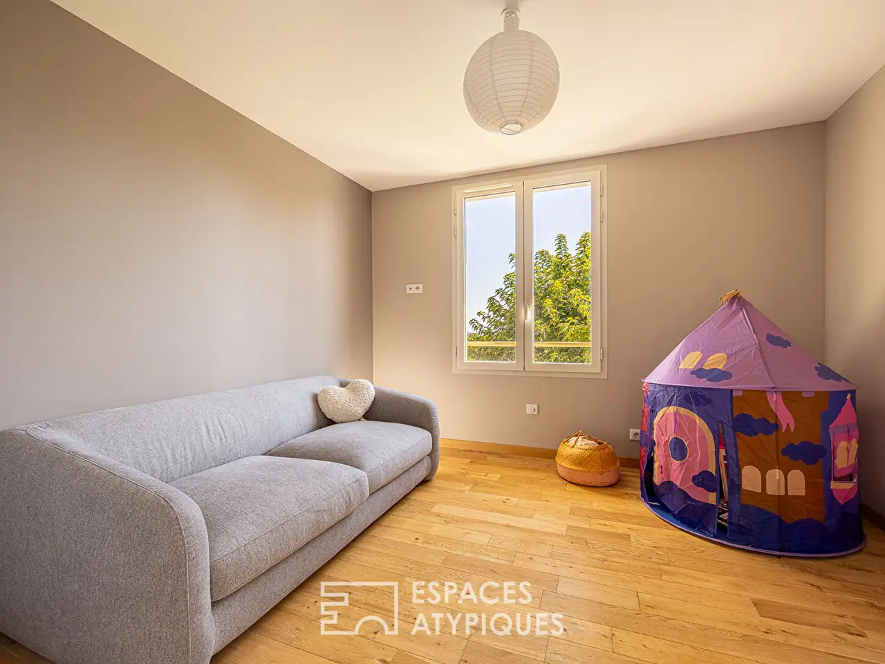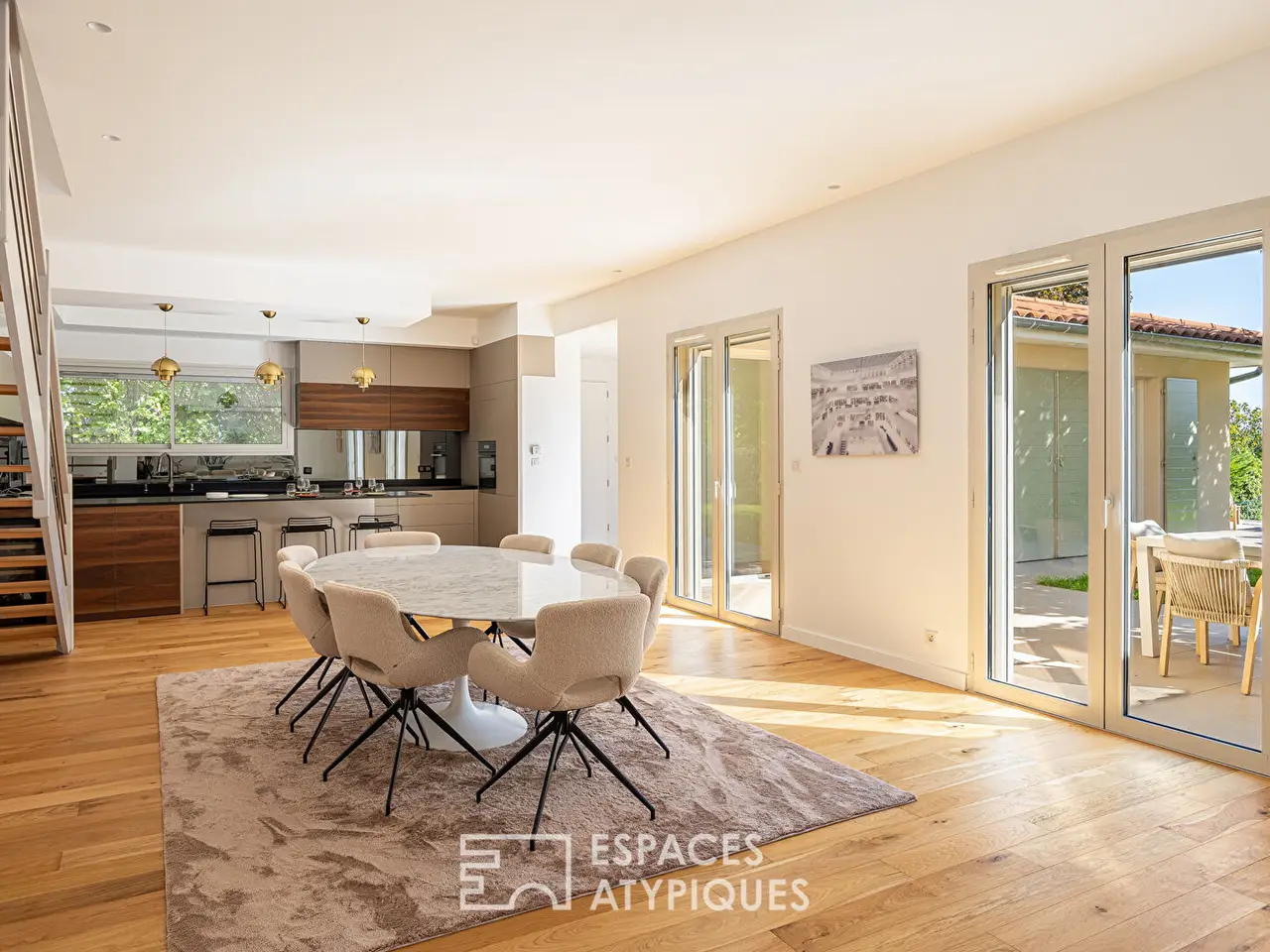 Located in the absolute calm of a cul-de-sac, a few minutes' walk from the heart of the village, this recent house with contemporary lines unfolds its volumes on a magnificent flat plot of more than 1,600 sqm, expertly landscaped, not overlooked and decorated with a generous family swimming pool.From the entrance, the tone is set: space, light and modernity. The vast living room, punctuated by large bay windows, offers a fluid connection between interior and exterior. Open and elegant kitchen, convivial dining room, double living room: each space invites relaxation and conviviality.On the ground floor, the master suite benefits from its privacy. It benefits from its private bathroom with shower, bathtub and toilet as well as its dressing area and its terrace overlooking the swimming pool. A back kitchen serving as a pantry and laundry room provides daily comfort, while a workshop with independent entrance opens the way to a creative, sports or professional space. Upstairs, four bright bedrooms with varying orientations share a contemporary bathroom and a third separate toilet. A separate studio with a fitted kitchen, a bathroom with toilet, and a terrace completes the property. Ideal for hosting family or friends, or as a summer kitchen.The exterior invites you to fully enjoy the beautiful season: multiple terraces, a private garden, and a sun-drenched swimming pool. Built to recent standards, the house boasts excellent energy performance, a guarantee of comfort and energy efficiency. A rare address where contemporary architecture blends with a relaxed lifestyle, in the heart of one of the most sought-after villages in the Monts d'Or.Bus 20 and S7 200 m awayHyper center 600 m awayENERGY CLASS: B / CLIMATE CLASS: A. Estimated average amount of annual energy expenditure for standard use, indexed to the years 2021, 2022, 2023: between EUR1,530 and EUR2,120 (subscription included)Contact: Guillaume 06 67 69 73 00REF. 13124Additional information* 8 rooms* 6 bedrooms* 1 bathroom* 2 shower rooms* 1 floor in the building* Outdoor space : 1684 SQM* Property tax : 2 000 €Energy Performance CertificateEPC : 91 kWhEP/m2.year* A 450GHG : 2 kgeqCO2/m2.year* A 80Agency feesThe fees include VAT and are payable by the vendorMediatorMediation Franchise-Consommateurswww.mediation-franchise.com29 Boulevard de Courcelles 75008 ParisInformation on the risks to which this property is exposed is available on the Geohazards website : www.georisques.gouv.fr