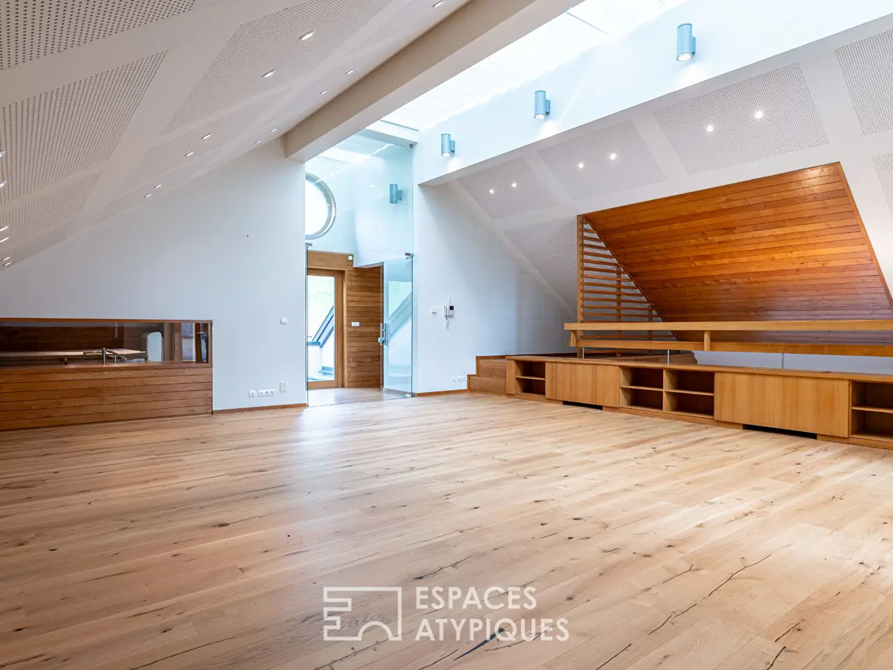 Architect-Designed House with Swimming PoolNestled in a preserved environment near Saint-Genix-sur-Guiers, this architect-designed property of approximately 600 m2 blends harmoniously into a private estate of about 4.5 hectares.Designed to offer generous spaces and abundant natural light, it features high-end amenities, including an elevator, a pool house, and numerous outbuildings. Its fluid layout and multiple relaxation areas make it a truly exceptional property.Upon entering, a vast hall sets the tone and leads to a living room with an open fireplace, a dining room adjoining a fully equipped kitchen with a pantry, and a cozy, more intimate lounge. A study with a mezzanine, as well as a bedroom with a dressing room and en-suite bathroom, complete this level.Upstairs, the night area consists of three bedrooms with private bathrooms, an office, and a refined master suite featuring two dressing rooms and an elegant bathroom.The top floor, entirely dedicated to well-being, offers a relaxation space with a jacuzzi, a rest area, and a shower.The basement houses a cinema room, a music room, a wine cellar, and a photography lab, along with an underground garage accessible via a tunnel.The outdoor setting is enchanting, with lush greenery and a peaceful ambiance, where multiple terraces provide privacy and serenity. A swimming pool with a fully equipped pool house enhances the enjoyment of warm days.Several outbuildings totaling nearly 500 m2 complete the estate, including garages, an orangery, wood storage areas, and technical and storage facilities.Just minutes from amenities, schools, and major roads, this property offers an exceptional living environment where nature and contemporary architecture blend seamlessly.ENERGY CLASS: D / CLIMATE CLASS: DEstimated average annual energy costs for standard use, based on 2021 energy prices: between €6,060 and €8,240.REF. 1938EAAdditional information* 24 rooms* 5 bedrooms* 4 bathrooms* 2 shower rooms* Outdoor space : 45695 SQM* Parking : 10 parking spaces* Property tax : 6 421 €Energy Performance CertificatePrimary energy consumptiond : 131 kWh/m2.yearHigh performance housing*A*B*C*131kWh/m2.year37*kg CO2/m2.yearD*E*F*GExtremely poor housing performance* Of which greenhouse gas emissionsd : 37 kg CO2/m2.yearLow CO2 emissions*A*B*C*37kg CO2/m2.yearD*E*F*GVery high CO2 emissionsEstimated average amount of annual energy expenditure for standard use, established from energy prices for the year 2021 : between 6060 € and 8240 €Agency fees* Fees charged to the purchaser : 80 000 €MediatorMediation Franchise-Consommateurswww.mediation-franchise.com29 Boulevard de Courcelles 75008 ParisInformation on the risks to which this property is exposed is available on the Geohazards website : www.georisques.gouv.fr