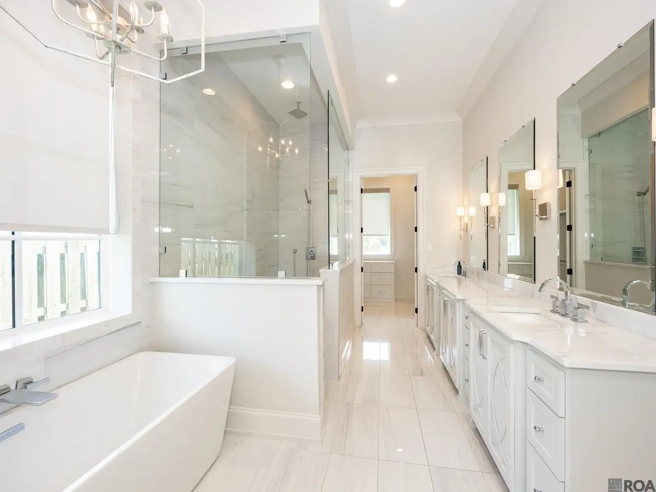 Located in the established Lexington Estates Subdivision, just minutes from LSU and downtown Baton Rouge, this home offers both convenience and luxury and boasts modern features and thoughtful design throughout. Step inside to discover an open-concept layout where the living, dining, and kitchen areas seamlessly flow together, creating an ideal space for everyday living and effortless entertaining. The kitchen is a chef’s dream, featuring quartzite countertops, gas range, waterfall island, and stainless appliances. The primary suite features an ensuite bathroom with double vanities, soaking tub, walk-in tile shower, and two walk-in closets. For added convenience, the additional downstairs bedroom includes its own private bathroom. Enjoy year-round relaxation in the enclosed sunroom, which overlooks the pool and lake—an ideal backdrop for morning coffee or evening gatherings. Upstairs, you’ll find two additional bedrooms connected by a Jack and Jill bathroom, providing comfort and functionality for family or guests. Outside, enjoy the sleek, modern pool, outdoor kitchen, and view of the lake. With its modern touches, inviting layout, and unbeatable location, this home offers a perfect blend of style, comfort, and convenience. Located in the newly incorporated City of St. George, Louisiana! On the St. Jude bus route!