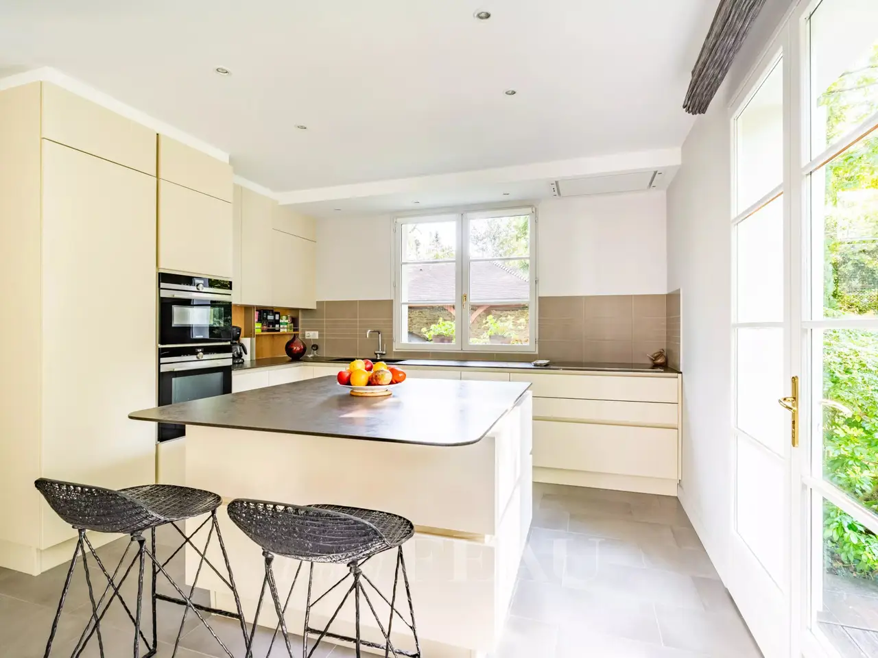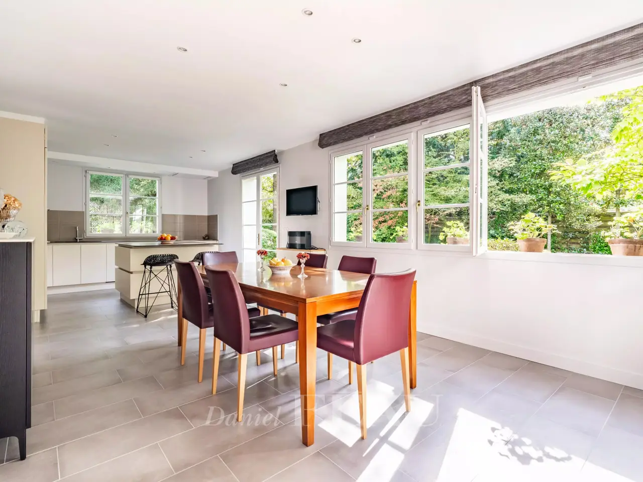 This superb contemporary property hidden from view in a leafy 1100 sqm garden on the edge of the forest offers 306 sqm of floor space and 285 sqm of living space. Set around a glazed central patio, it includes an entry with a cloakroom, a spacious living/reception room opening onto a terrace and the garden, an elegant kitchen with dining facilities, a dining room, and a utility room. It would be possible to create a ground floor bedroom if required. Upstairs a bright landing leads to a master suite with a bathroom and a dressing room, and three further bedrooms with a shower room. The fitted attic could create a spacious bedroom, a study or a recreation room. With a near 26 sqm annex comprising a garage, cycle storage premises and a self-contained apartment. The landscaped garden benefits from terraces and a paved carport. The property is beautifully appointed, benefiting from floor heating, double glazing, solid oak parquet flooring, motorized shutters and an alarm. The roofing has recently been renovated.