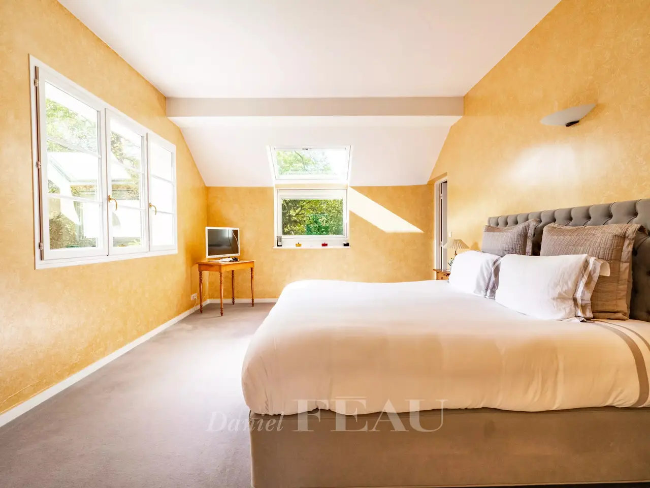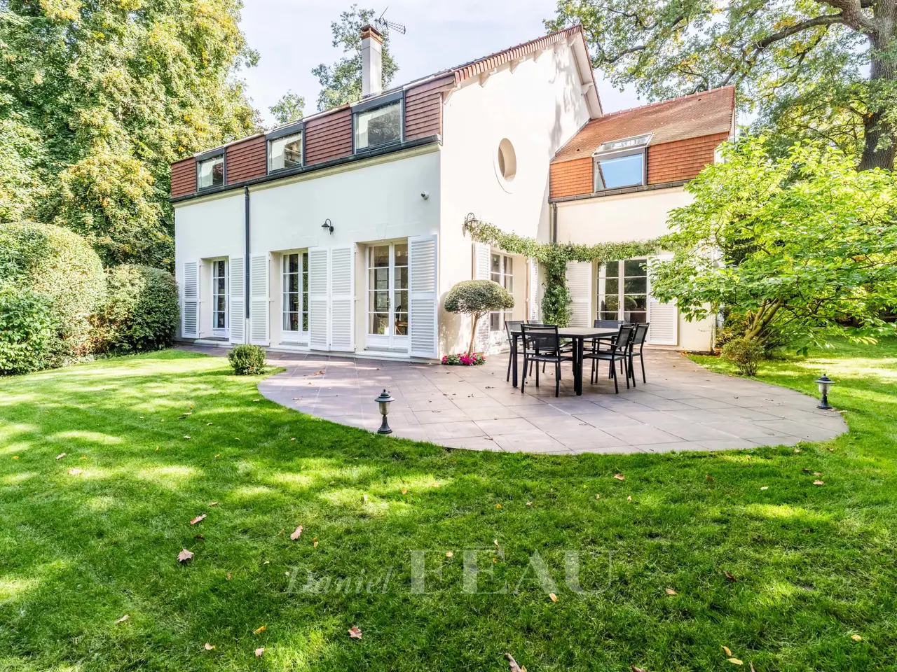 This superb contemporary property hidden from view in a leafy 1100 sqm garden on the edge of the forest offers 306 sqm of floor space and 285 sqm of living space. Set around a glazed central patio, it includes an entry with a cloakroom, a spacious living/reception room opening onto a terrace and the garden, an elegant kitchen with dining facilities, a dining room, and a utility room. It would be possible to create a ground floor bedroom if required. Upstairs a bright landing leads to a master suite with a bathroom and a dressing room, and three further bedrooms with a shower room. The fitted attic could create a spacious bedroom, a study or a recreation room. With a near 26 sqm annex comprising a garage, cycle storage premises and a self-contained apartment. The landscaped garden benefits from terraces and a paved carport. The property is beautifully appointed, benefiting from floor heating, double glazing, solid oak parquet flooring, motorized shutters and an alarm. The roofing has recently been renovated.
