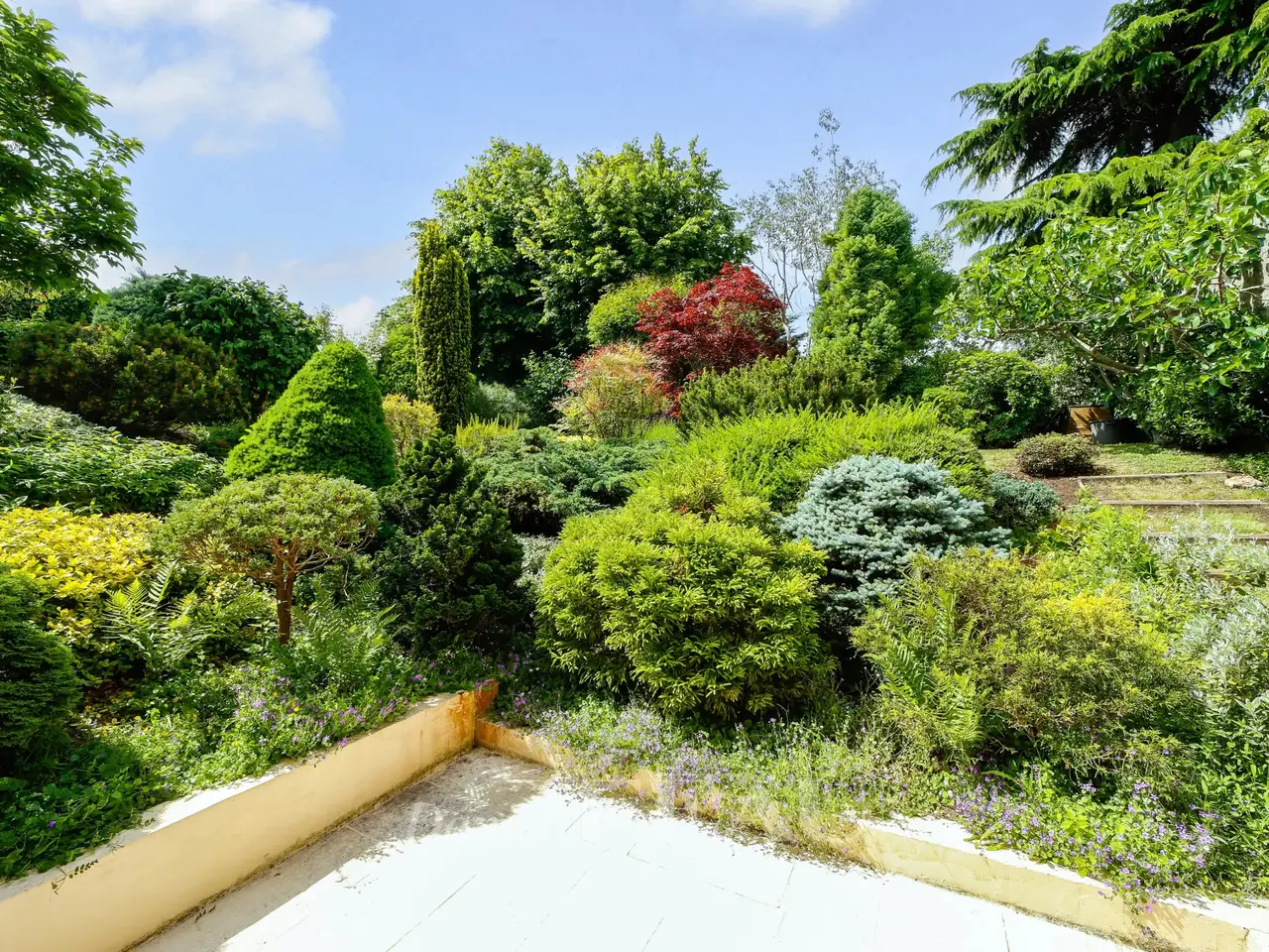 Sunny terrace with garden views