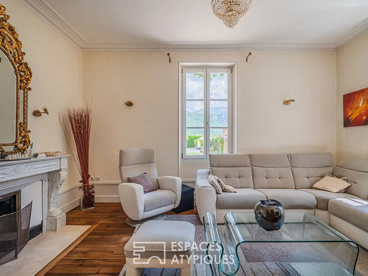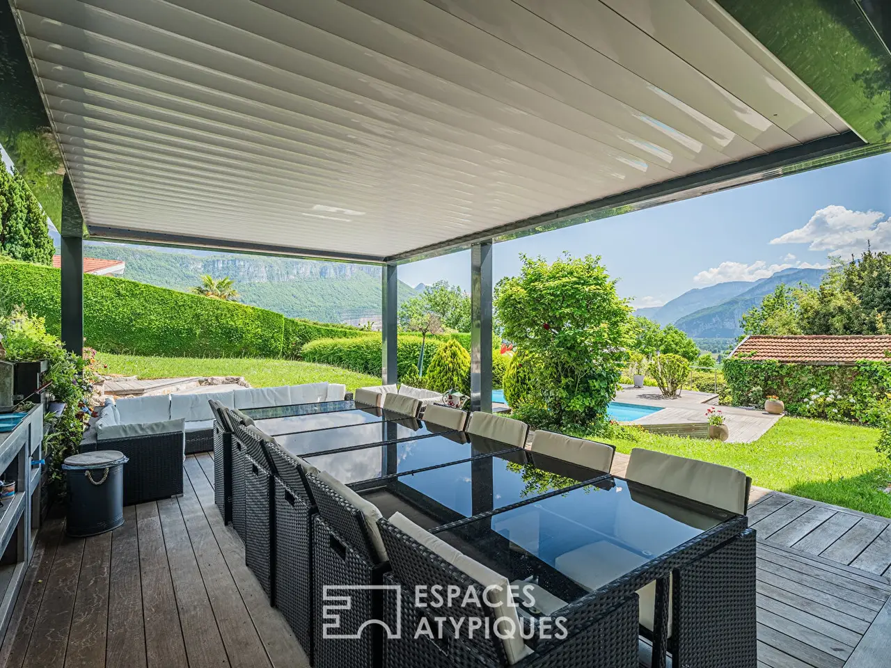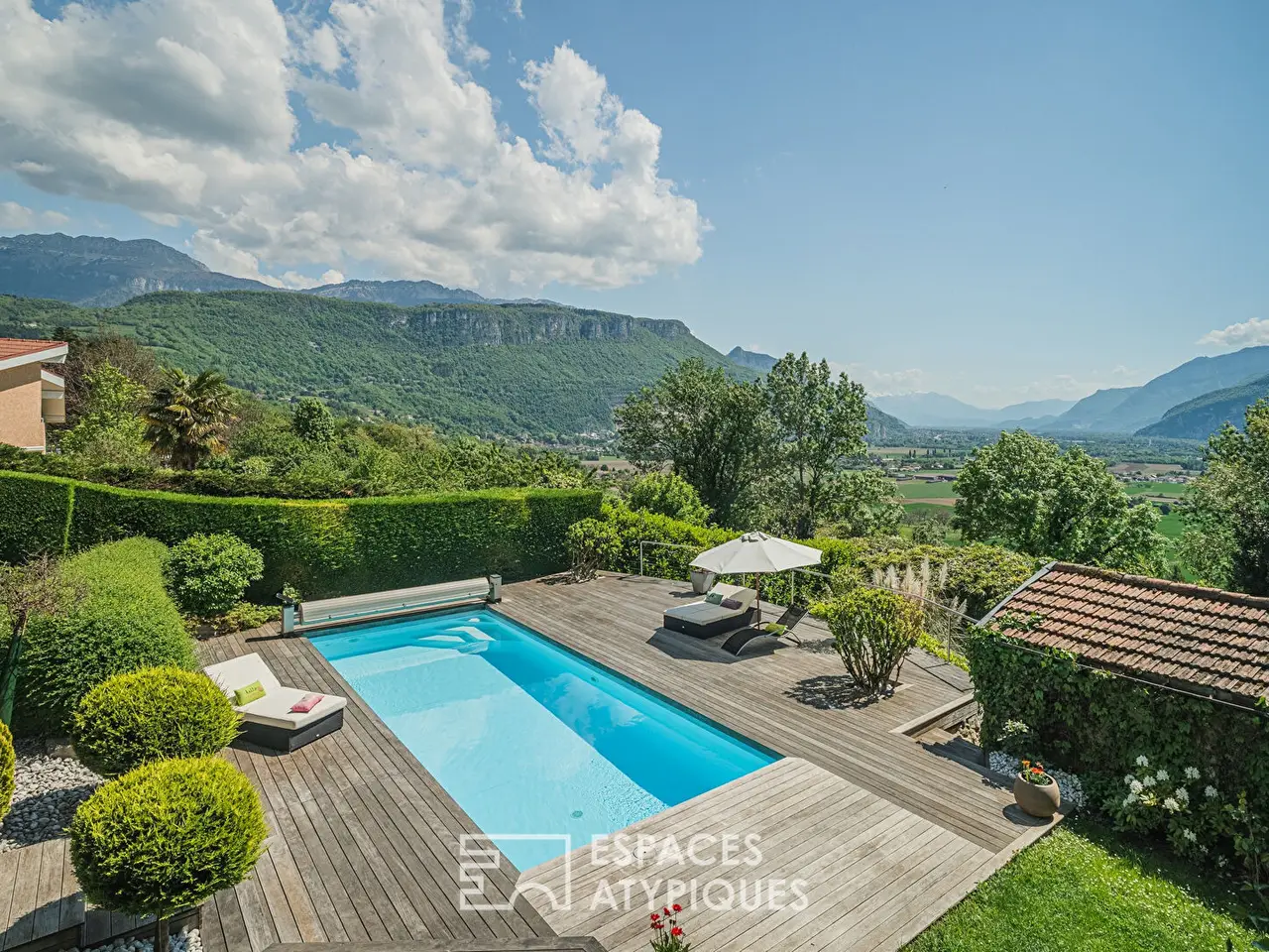 This magnificent property is located at the crossroads of Saint-Jean-de-Moirans and Coublevie. Originally a farm, then a clinic between the wars, it is today an exceptional residence with a backdrop of sublime views of the Cluse de Voreppe and the Chartreuse and Vercors massifs. A true favorite of the owners, they have continued to restore it over the past 20 years. Preserving its authenticity, refining the smallest details and adding contemporary touches, they have preserved and magnify the character and elegance of this building steeped in history. With a large living area of 430 sqm, it is accompanied by a pretty park of 4,400 sqm where terraces and swimming pool, designed and oriented towards the valley, give it an obvious charm.Once past the entrance and its magnificent mass stove, a first living space is revealed, consisting of a kitchen, a vast dining room and a charming little intimate living room. Then, in continuity, gained from the outbuildings in 2019, two magnificent rooms offer, directly connected to the exterior and the swimming pool, a real reception space. The extraordinary volume, the exposed framework, the stone decor designed for the occasion, and the modernity of the fittings give the full measure of the renovation carried out. First, the dining room extended onto the garden by its terrace and its bioclimatic pergola, provides a spacious dining area then upstairs, with its cathedral ceiling and its beautiful fireplace, are the kitchen and the living room. Widely opened by large bay windows, they offer, like paintings, unique perspectives on the vegetation and the surrounding landscapes.Upstairs, arranged around the central landing, five bedrooms and an office with different atmospheres, along with a shower room and a bathroom, share the space. A vast attic, suitable for conversion, concludes the top level.In addition, a relaxation area with a sauna and jacuzzi, and a vaulted cellar, a true tasting room, perfectly complete the property. Also present, directly communicating with the living areas, are a garage and an adjoining shed.On the garden side, surrounding the house, the park, largely planted with trees and flowers, offers multiple spaces worthy of the place and breathtaking views from every point.With its successive paths and terraces, its swimming pool, its workshop, and its spring, it offers a harmonious universe conducive to relaxation. Its remarkable renovation with quality materials, its location near Voiron and the main roads, its exteriors, and its incredible views are the guarantee of a high-quality property.Giving, if it were still needed, a great development potential, and allowing with its second access to consider many projects, this residence will above all be a favorite for visitors.Exceptional property for those looking for a refined property where to contemplate the reliefs of our beloved massifs, let yourself be carried away by the magic of the place.Information on the risks to which this property is exposed is available on the Georisques website: www.georisques.gouv.frREF. 1026EAGAdditional information* 11 rooms* 5 bedrooms* 1 bathroom* 2 shower rooms* 2 floors in the building* Outdoor space : 4353 SQM* Parking : 2 parking spaces* Property tax : 4 012 €Energy Performance CertificatePrimary energy consumptiond : 141 kWh/m2.yearHigh performance housing*A*B*C*141kWh/m2.year42*kg CO2/m2.yearD*E*F*GExtremely poor housing performance* Of which greenhouse gas emissionsd : 42 kg CO2/m2.yearLow CO2 emissions*A*B*C*42kg CO2/m2.yearD*E*