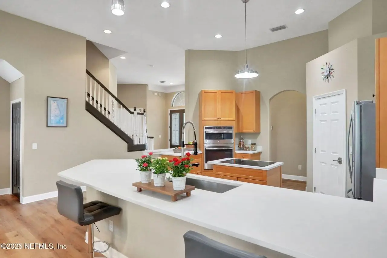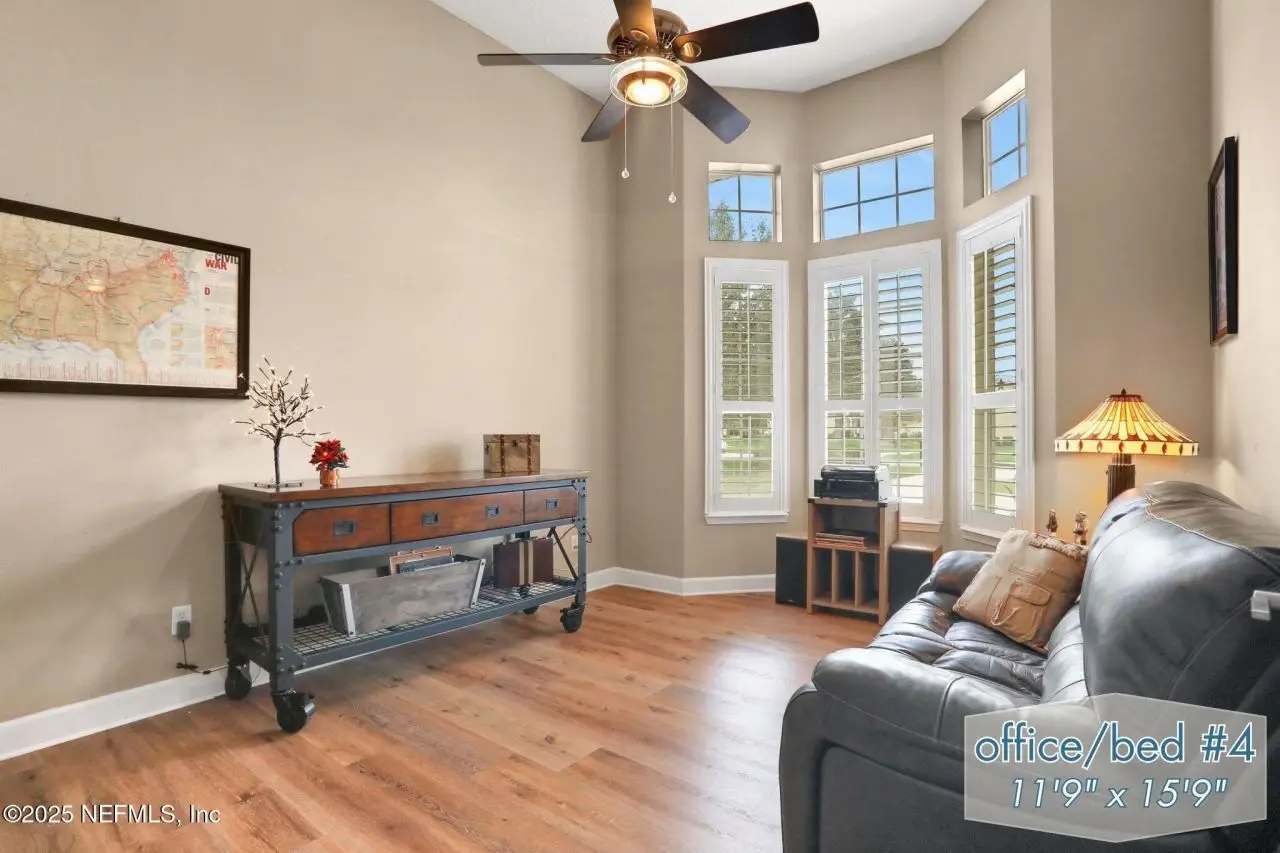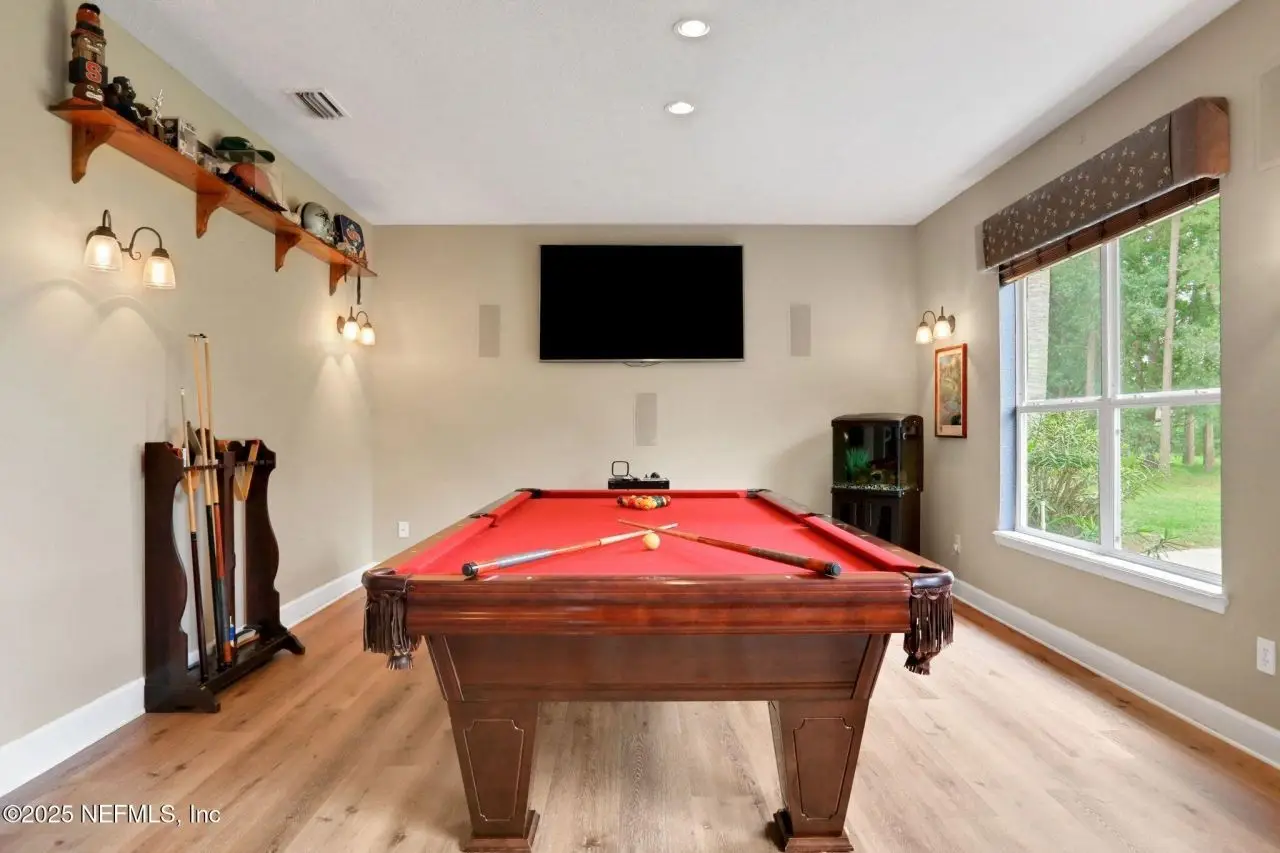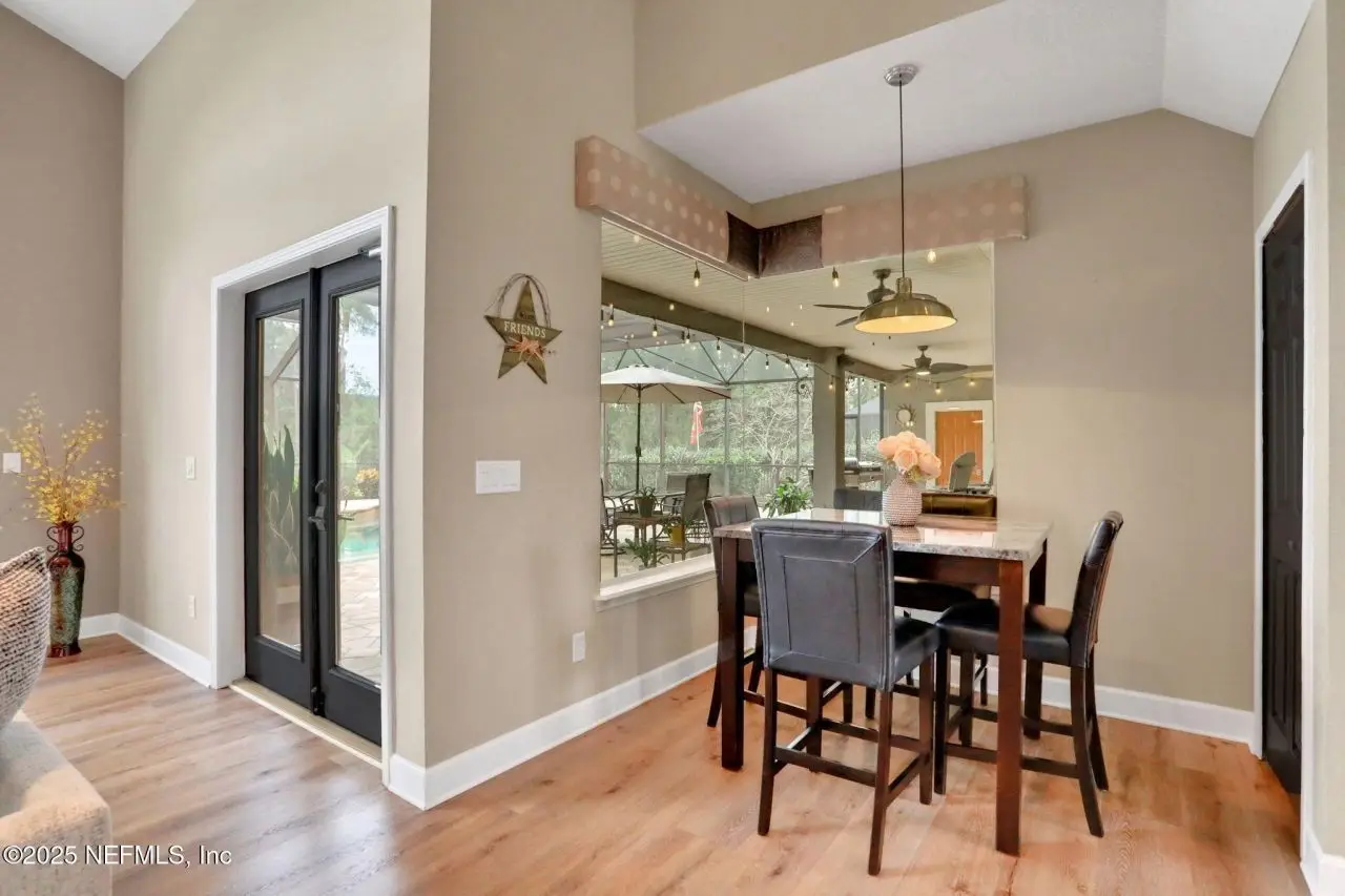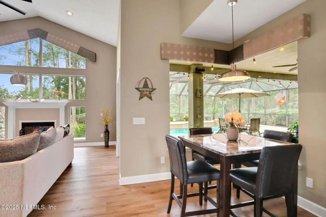 This stunning St. Johns County pool home is situated on nearly 3/4 of an acre in the desired estate-section of Cimarr?ne Golf & Country Club. This impressive residence offers a breathtaking long view of the 16th tee, lagoon and nature preserve.Leaded-glass double doors lead to the grand Entrance Hall that naturally guides you through this thoughtfully designed home. The magnificent Primary Suite commands the entire side of the home and is complete with tray ceilings, double walk-in closets, and atrium doors to the pool paradise. The oversized bath retreat has a shower, separate soaking tub, two large vanities and a water closet. Flanking the Primary is a cabana bath and one of the five bedrooms currently serving office-duty. The other side of the home has two generously sized bedrooms sharing a well-appointed 2-room bath. The grand central staircase is surrounded by two flexible bonus rooms that can easily transform into additional office or dining. The upper-level surprises with 350 sq ft of multi-generational living featuring cathedral ceilings & spectacular views. With its own bath and walk-in closet, this versatile area would also be perfect as a gym or homeschool headquarters.The heart of this home is the massive great room where soaring cathedral ceilings frame the dramatic wall of windows capturing the enchanting view. There's plenty of space to gather around the fire while others enjoy the attached Billiard Room that could be enclosed for a 6th bedroom.The open-concept flows seamlessly into the kitchen, bordered by an impressive wrap-around quartz breakfast bar with seating for six or more. The kitchen combines functionality with style, featuring natural wood cabinetry with 42-inch uppers, some with glass doors for displaying collectables. Chef's favor this kitchen with its stainless appliances, built-in ovens and an induction cooktop island. Keeping it tidy is easy with two pantry closets. The attached, glassed dining nook overlooking the pool is the perfect spot for breakfast. Speaking of the pool. The new favorite hangout awaits in the spectacular 2,100 sq ft of screened outdoor living. The heated saltwater pool features a tanning shelf and wrap-around in-pool bench. The pool and spa are surrounded by tropical landscaping and charming gas-look vintage street lanterns. The entire space is covered with unique, intricately designed multi-sized paver flooring. The major equipment including salt-cell, heater, filter, and main pump have all been updated within the past few years. The overhead screens were replaced last year. Additional highlights of this home include an oversized sunlit laundry room with convenient laundry sink, plentiful folding counters, and abundant storage. Luxury vinyl plank flooring flows through living areas and the second floor, while wood flooring graces the Primary Bedroom. Plantation shutters dress the front windows, complementing the twelve-foot ceilings and seven-foot interior doors. Double and triple crown molding, wainscoting and other unique wood trim found throughout the home. There is surround-sound both inside and out, a money-saving separate irrigation water meter, durable epoxy garage flooring, and an ongoing termite protection program. Cimarr?ne Golf & CC offers amenities that rival any resort. The spectacular Resident Clubhouse has a fitness center, double-sized pool with separate lap section along with a splash-park feature for the kiddos. Expansive recreation includes tennis, pickleball &