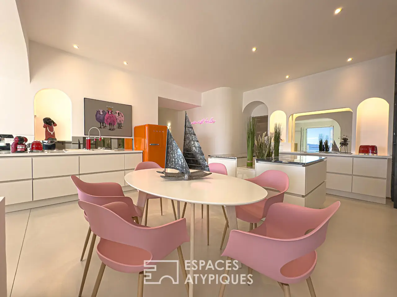 Contemporary apartment with sea view balconyIn a building labeled 20th century heritage, this 135 m2 dual-aspect apartment, completely redesigned and renovated in 2023, is located in the heart of the town of Sainte-Maxime and offers an incredible panorama of the sea and the iconic city of Saint-Tropez .The entrance, majestic and refined, guides us into a living space composed of a high-end open kitchen with central island and a living room opening onto a south-facing balcony of 7.29 m2 with a breathtaking view of the deep blue sea.The sleeping area offers three spacious bedrooms, one with a dressing room. Two bathrooms, two toilets and a laundry room complete the layout of this exceptional apartment for absolute comfort on a daily basis.Elegantly combining the charm of the 1930s and the avant-garde style of neo-contemporary, this apartment offers a unique living environment, sold fully furnished for an immersive experience from the moment you arrive.A cellar in the basement and a closed garage of 25 m2 with automatic door complete the whole.Town center, beaches and all shops on foot.Maritime shuttles to Saint-Tropez 5 min walkSaint-Raphaël TGV station or Arcs-Draguignan 30 minNice airport 1h05Although subject to co-ownership status. No procedure in progress.ENERGY CLASS: B (96 kWh/m2/year) / CLIMATE CLASS: A (3 kg CO2/m2/year). Estimated average amount of annual energy expenditure for standard use, established based on energy prices for the year 2021: between EUR810 and EUR1,160.REF. 11032Additional information* 4 rooms* 3 bedrooms* 2 shower rooms* Floor : 2* 5 floors in the building* 117 co-ownership lots* Annual co-ownership fees : 2 384 €* Property tax : 1 663 €* Provision for charges : 596 €* Proceeding : NonEnergy Performance CertificatePrimary energy consumptionb : 96 kWh/m2.yearHigh performance housing*A*96kWh/m2.year3*kg CO2/m2.yearB*C*D*E*F*GExtremely poor housing performance* Of which greenhouse gas emissionsa : 3 kg CO2/m2.yearLow CO2 emissions*3kg CO2/m2.yearA*B*C*D*E*F*GVery high CO2 emissionsEstimated average amount of annual energy expenditure for standard use, established from energy prices for the year 2021 : between 810 € and 1160 €Agency feesThe fees include VAT and are payable by the vendorMediatorMediation Franchise-Consommateurswww.mediation-franchise.com29 Boulevard de Courcelles 75008 ParisInformation on the risks to which this property is exposed is available on the Geohazards website : www.georisques.gouv.fr