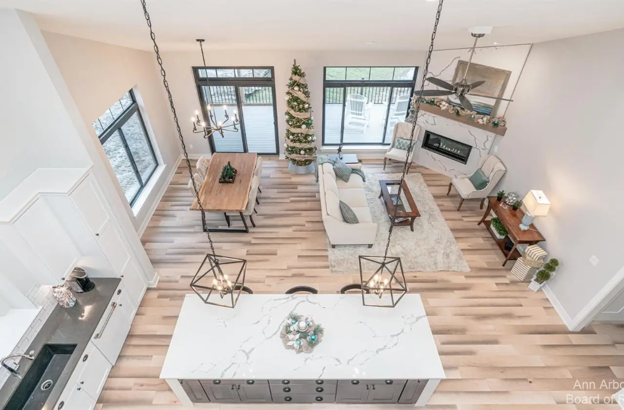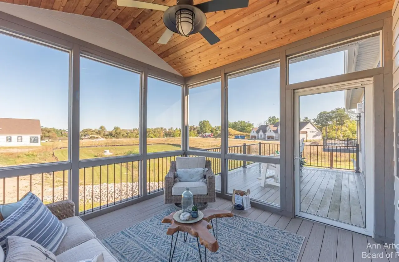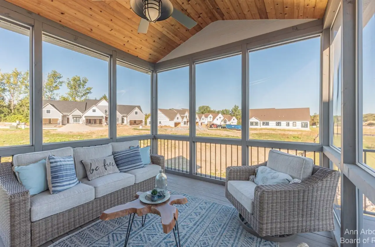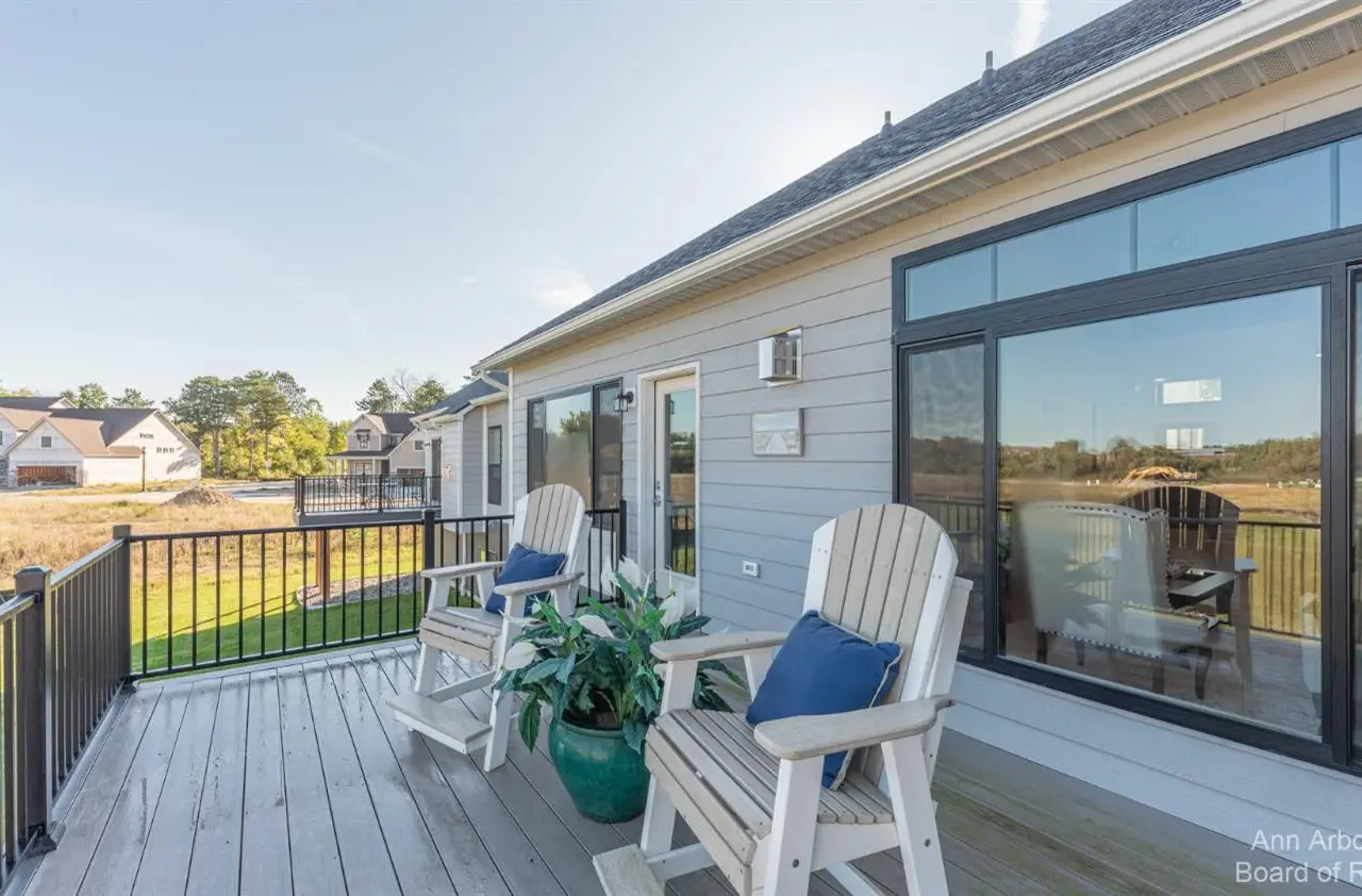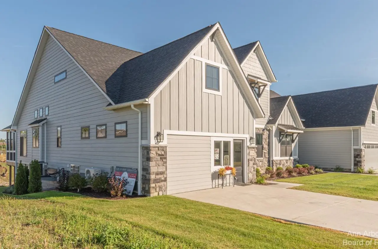 There is still time to customize this gorgeous Belford model on one of the neighborhood's premium walkout sites looking out to nature, grassy meadows, and a stream! This luxurious 4 Bed/3 1/2 bath condominium has a bright and open floor plan to include a gourmet kitchen with Kraftmaid cabinetry, a large pantry, and a huge 9.9'x3.4' center island overlooking the showstopping great room with vaulted ceiling, walls of windows, a gas fireplace, and a door off of the dining area leading out to the screened Azek deck with infrared heating and an 12x12 Azek deck--beautiful! The 1st floor primary bedroom suite has a private bathroom with granite countertops, dual sinks, a linen closet, a walk in closet, and a spa sized fully tiled shower with bench and glass Euro door. Additional main floor features include a half bath with pedestal sink, a laundry room with sink and tile flooring, a bench off of the family entry from the attached 2 car garage, and a nicely sized study/flex room. Upstairs you a greeted with a loft looking down to the great room, two additional bedrooms, a full bathroom with bath/tub combo and tile flooring, and a media room. The finished walkout lower level (657 sq.ft. is still unfinished for incredible storage space) has a recreation room with impressive kitchenette with an island--great for entertaining, the 4th bedroom, and a full bathroom with tile flooring and shower. Gallery Pointe is a community like none other...luxurious, fully customized (no two homes are alike on the inside), each building has a unique color with special touches to it's design, and the location can't be beat--close to both Downtown Saline and Ann Arbor but with low township taxes. Walk to school or bike over to the Border to Border Trail which is nearby. Sidewalks, streetlights, and even a charming raised garden bed and dog play areas that are fully fenced.