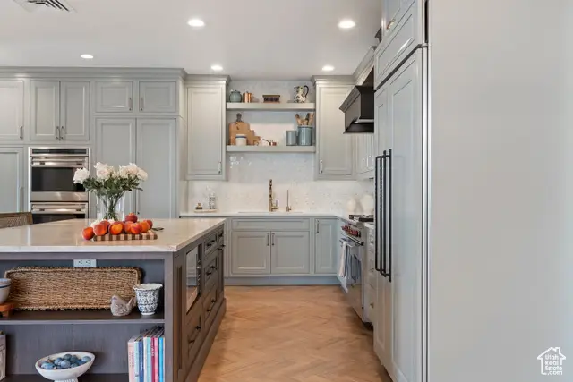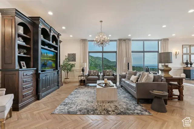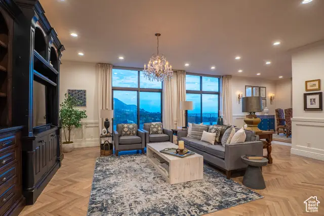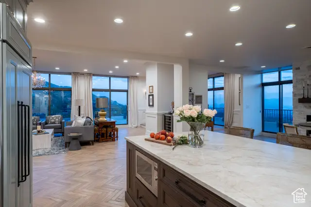 Introducing Salt Lake City's Premier Penthouse Retreat. Perched above the city with sweeping views of Donner Park, the Wasatch Mountains, and the Salt Lake skyline, this extraordinary penthouse at Donner Towers offers a rare blend of timeless design, elevated comfort, and cosmopolitan ease. From the marble-inlaid foyer to the floor-to-ceiling windows, every inch of this residence has been thoughtfully crafted. The living and dining spaces are wrapped in glass, immersing you in Utah's natural beauty from sunrise to sunset. Crisp architectural lines, warm wood finishes, and elegant lighting fixtures set a refined yet inviting tone, sophisticated but never stiff, utterly livable. At the heart of the home, a meticulously designed kitchen pairs sculptural beauty with exceptional performance. Custom Wood Mode cabinetry in Deep Ice and Soft Carbon Matte finishes provides dramatic contrast and subtle texture. A rift-cut white oak island is topped with leathered Taj Mahal quartzite-a velvety, veined surface that invites both daily use and celebration. Premium Wolf and Sub-Zero appliances are seamlessly integrated, ensuring that the space serves the needs of casual cooks and avid entertainers alike. Gold-tone hardware and a hand-forged refrigerator handle add artisan detail, while a luminous marble backsplash evokes a constellation of stars. Private spaces unfold with equal care. A cozy den is tucked behind 18th-century carved Balinese doors, adding character and global craftsmanship to the home's modern narrative. It's the kind of space that invites both solitude and togetherness-generous in form, comforting in feel. Whether it becomes a reading room, music space, or intimate gathering spot, the den offers a rare blend of presence and ease. The primary suite is a true sanctuary, anchored by nearly uninterrupted glass that frames the mountains, Great Salt Lake, and city lights. A fireside seating area invites quiet mornings, while the spa-style bath balances rich marble finishes with calming forest-green cabinetry. His and hers walk-in closets feature custom cherry interiors and aromatic cedar lining, elevating daily routines with thoughtful luxury. Even practical elements-like the laundry room and hall bath-mirror the homes overall aesthetic: clean, cohesive, and quietly refined. Curated but never cold, elevated yet grounded, this penthouse embodies the rare balance of elegance and livability. Steps from the city's cultural heart and nestled in the calm of Emigration Canyon, it's more than a home-it's a mountain-framed retreat where every hour brings something beautiful into view. Features Include: Integrated Wolf range and Sub-Zero refrigeration and double ovens Custom Wood Mode cabinetry with artisan finishes Rift-cut white oak island topped with leathered Taj Mahal quartzite Owner-managed elevator access, lock-and-leave lifestyle with privacy, convenience, and low maintenance Private elevator lobby and 48 custom mahogany entry door Floor-to-ceiling glass with panoramic views Primary suite with fireplace, spa bath, and dual cedar-lined closets Energy efficient hot water recirculation pump Wrap-around outdoor terrace with 360 mountain, City, Lake, Valley, and skyline views Four (4) parking stalls conveniently situated adjacent to the entry and private elevator access Two (2) large private, secure storage rooms, each approximately 100 square feet Controlled access building security Seasonal outdoor pool, spa, and entertaining patio.