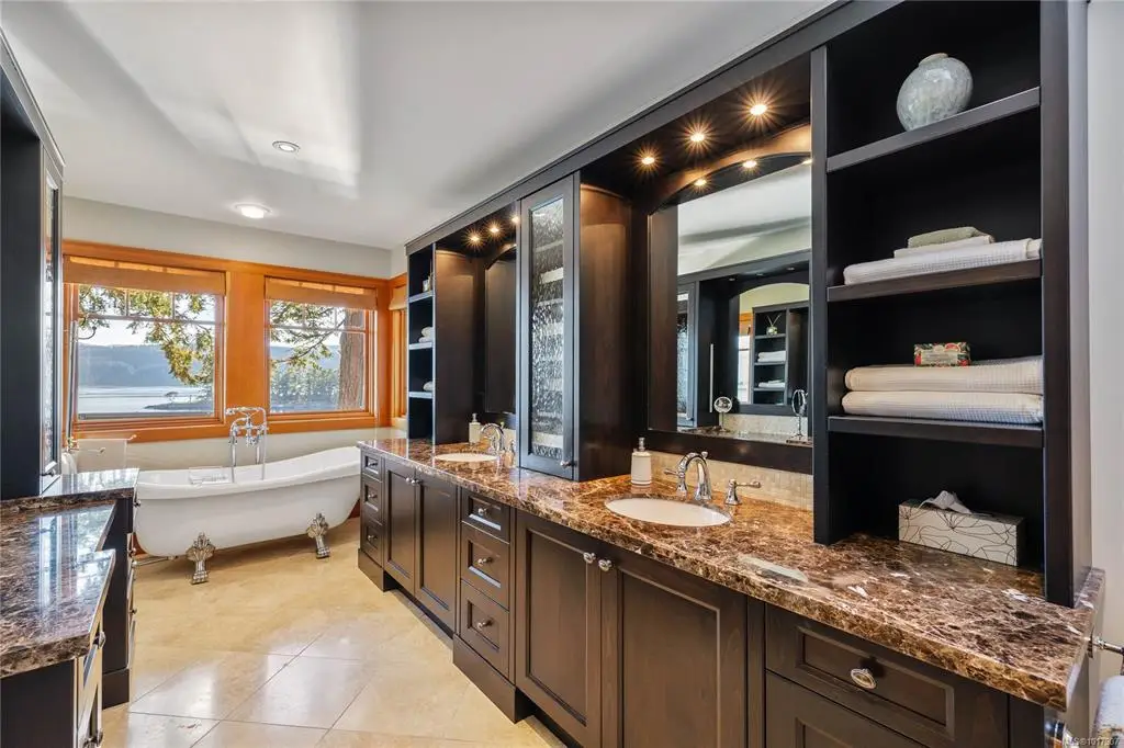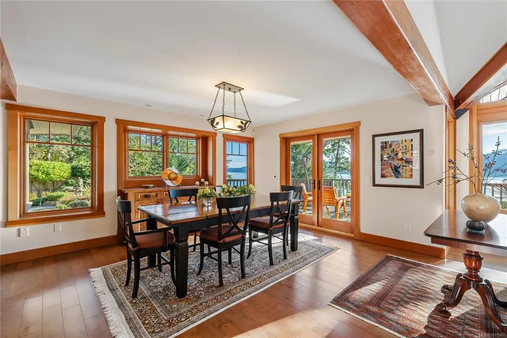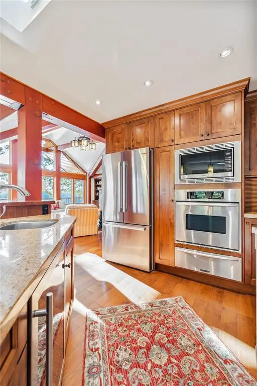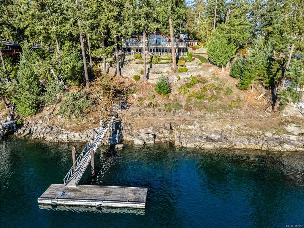 The pinnacle of island living on over an acre of pristine, private Scott Point waterfront, with direct access to a boater’s dock. Perfectly positioned to capture southern exposure and breathtaking ocean views, this meticulously maintained 3,946 sq ft residence is flooded in light having soaring ceilings, skylights, oversized windows, and gleaming hardwood floors. The custom gourmet kitchen flows into the dining area and the living room is centered around a massive focal stone fireplace. Luxurious primary suite has french door deck access, a spa-inspired ensuite, dual walk-in closets, and phenomenal water views. Dedicated guest wing, and a professional home office. Finished lower level and triple-car garage . Outdoors, the gated and fenced property delights with artisan stonework, prof. landscaping, irrigated gardens, and expansive patio and deck areas. Located just minutes from town amenities and the Vancouver ferry, this is a rare opportunity to embrace the best of nautical living!