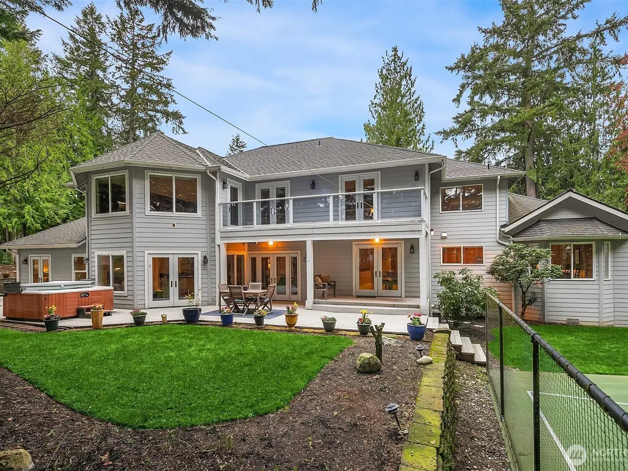 This expansive home includes a private ADU w/ full kitchen, living room w/gas FP, bedroom & spa-inspired bath. Perfect for guests, multi-generational living, or income potential. Enjoy shared beach access & possible boat moorage on Lake Sammamish. Formal living room boasts vaulted ceilings, a bay window, & a custom concrete gas FP. The chef's kitchen features custom maple cabinetry, slab granite, DCS gas cooktop, Sub-Zero fridge & freezer & walk-in pantry. Large family room w/marble-trimmed gas FP. Primary suite w/sitting area, FP, private deck, & 5-piece bath. Bonus room w/entertainment center & wet bar, new carpet throughout & dual AC units. Backyard w/Trex deck, sports court, & hot tub. Mins to Lk Wash schools, dining, shopping & 520.