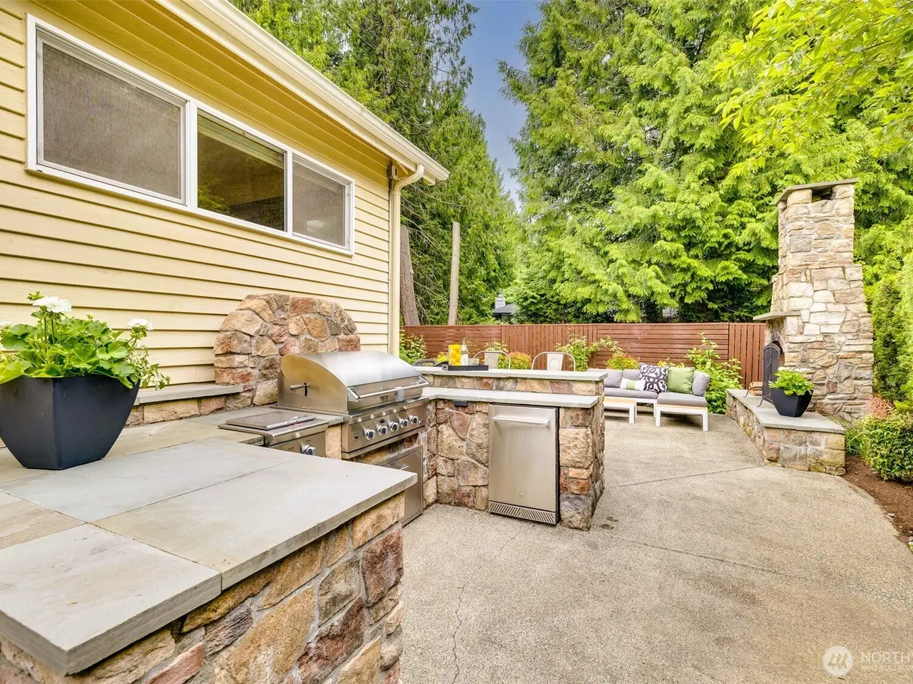 Built-in BBQ and outdoor fireplace