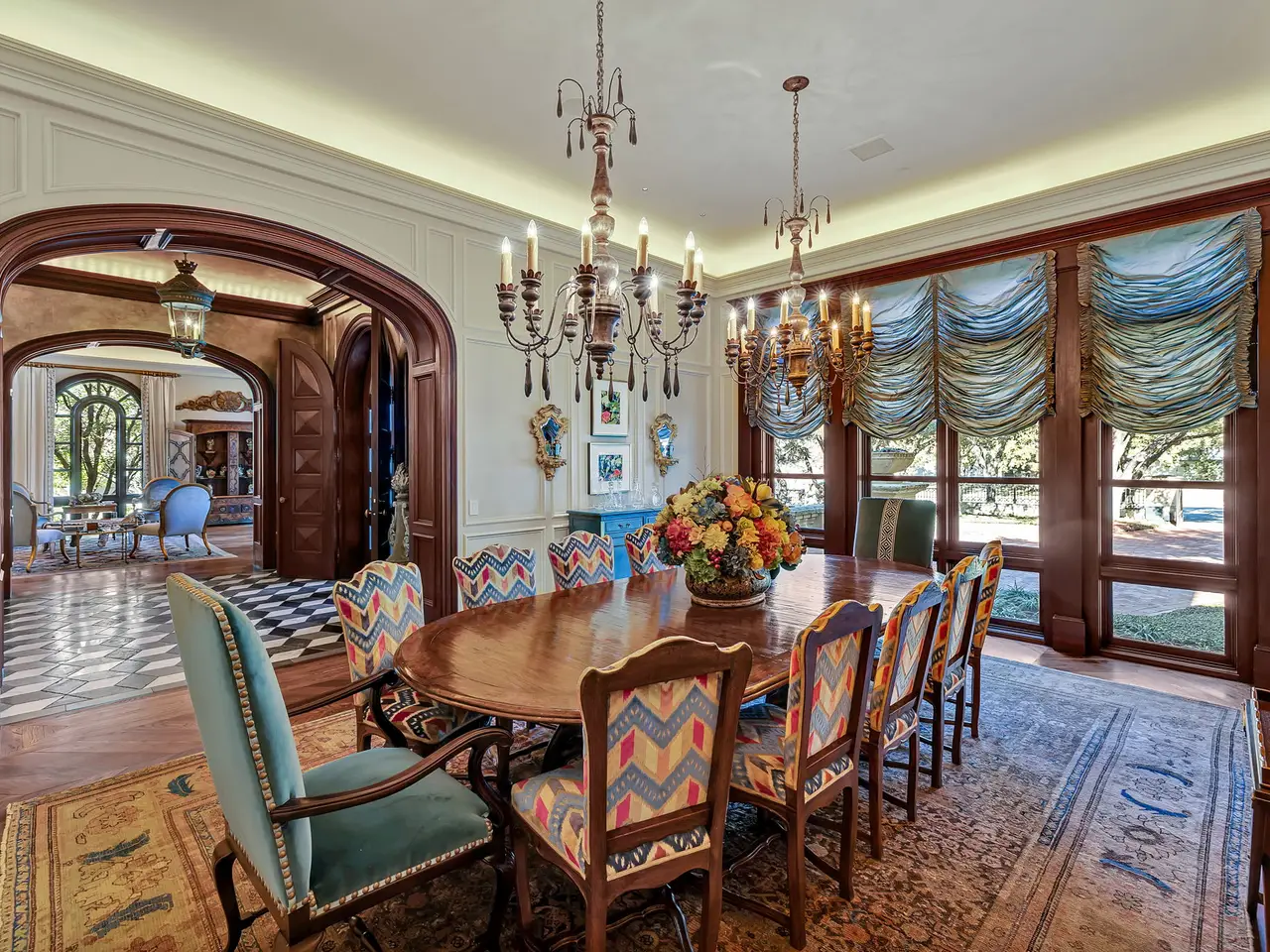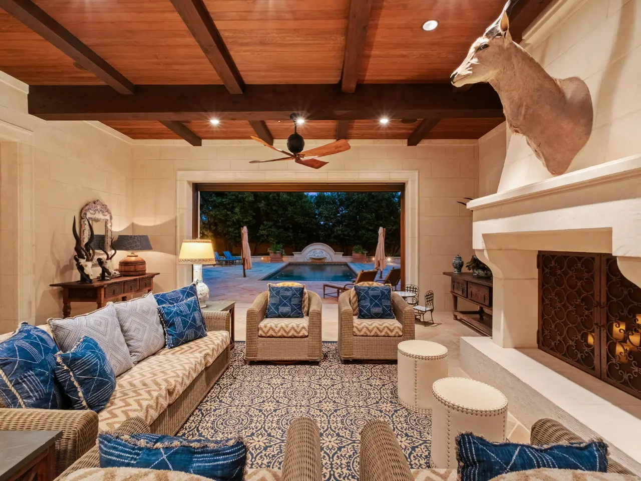 This breathtaking estate, completed in 2009 by Mauze Construction and designed by renowned architect Roy Braswell, exudes unparalleled quality and craftsmanship. With a hand-cut limestone exterior and an Italian-style barrel tile roof, complemented by full copper gutters, this home offers timeless elegance. Inside, custom finishes throughout include Palmer Todd-designed cabinets in the kitchen, bar, primary bath and primary closet. The primary closet is larger than most bedrooms and has two islands the make packing a breeze. Boasting 4 bedrooms, 4 bathrooms, and 4 powder baths, it offers 12-foot ceilings, 4 fireplaces, and a beautiful family room featuring a hand-carved mantel and hand-painted wood beams. The outdoor living space is a true highlight, offering a 1,238-square-foot lanai with 3 fully retractable custom Koaba wood doors, a fully equipped outdoor kitchen, and a cozy fireplace. This is the finest outdoor living area you will ever see. The lower level wine room, complete with custom iron doors to the wine cellar also has a powder room and a catering kitchen. You can walk outside and take the beautiful stone staircase to the lanai. . A private office, custom bar, and spacious family room add to the home®s appeal, while the primary bath with heated floors, a coffee bar, and retractable doors opening to a patio overlooking the pool ensures a spa-like experience. Further luxury is found in the 5-car garage, a separate apartment above the garage, and a gorgeous backyard with a pool, koi pond, and lush oaks. With advanced systems like Lutron lighting, Creston controls, and a mosquito nix system, this estate is a true masterpiece. - 4/4/2025 8:01:20 AM