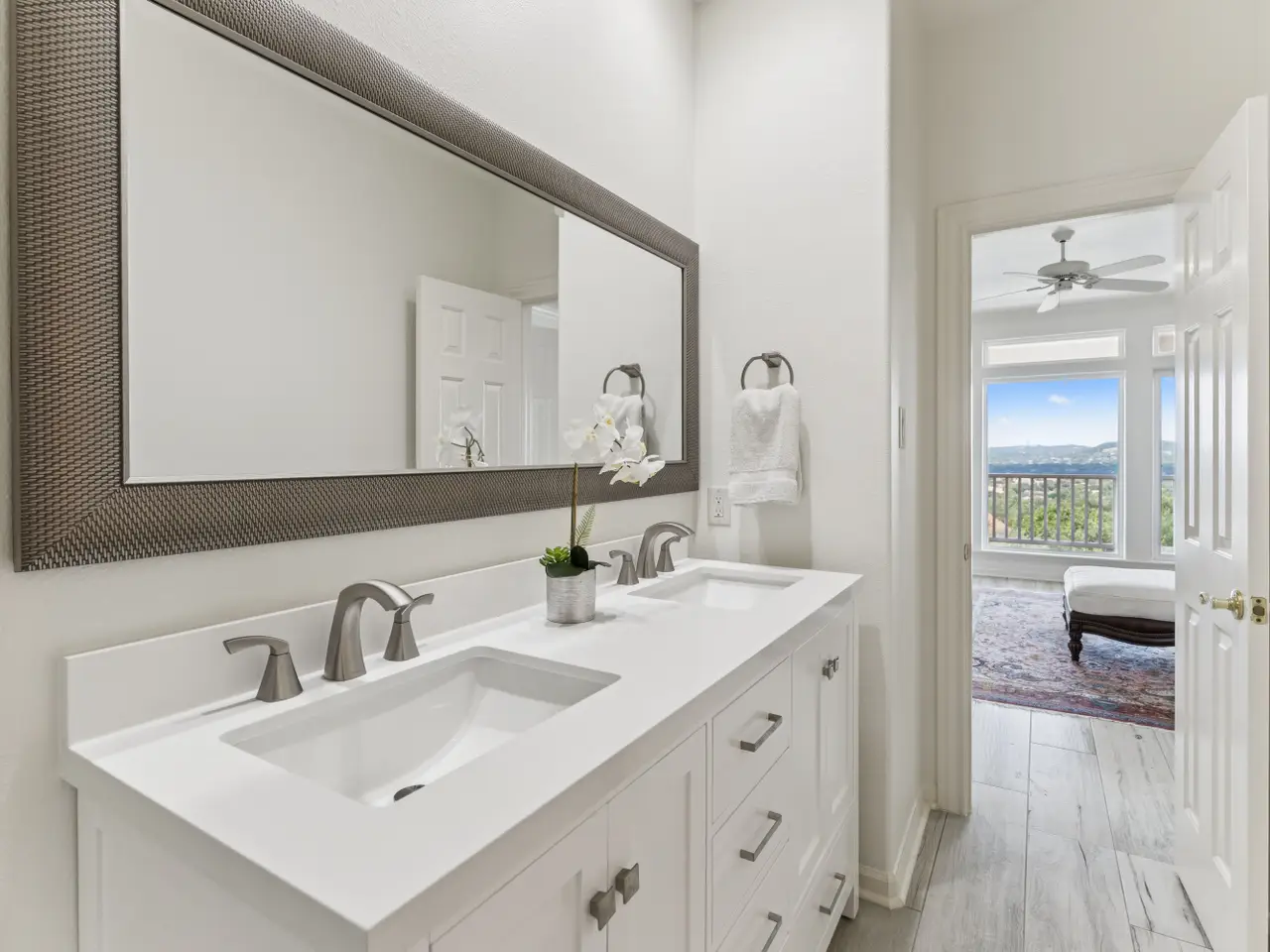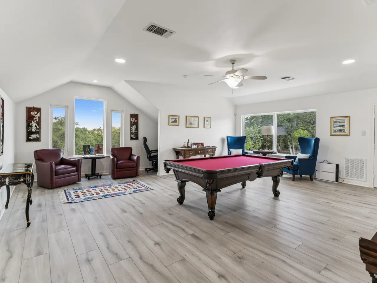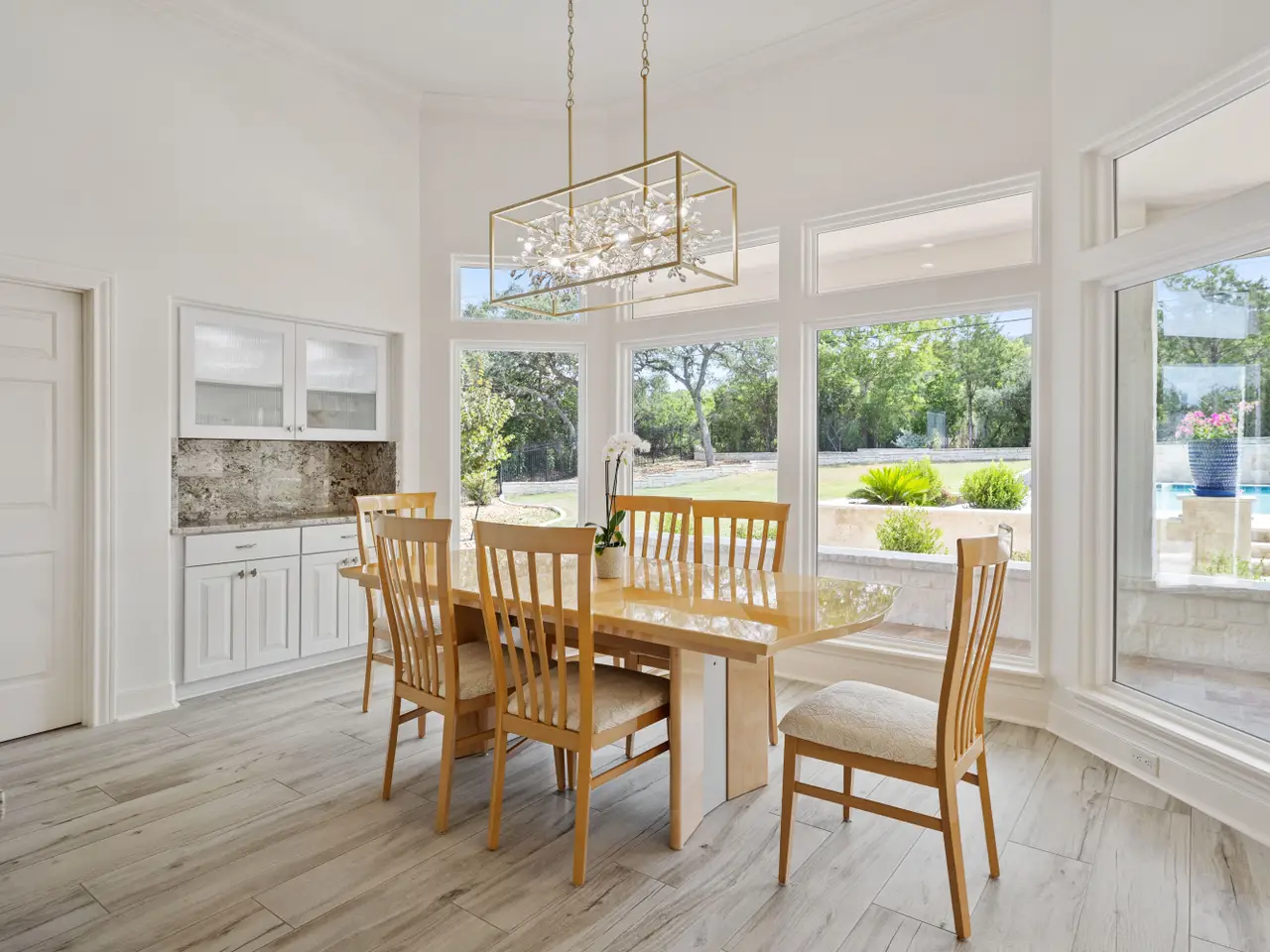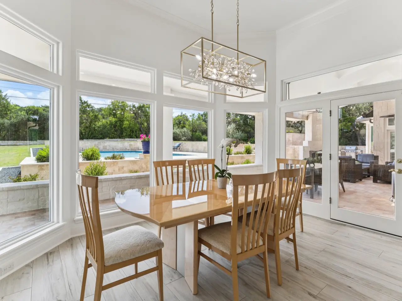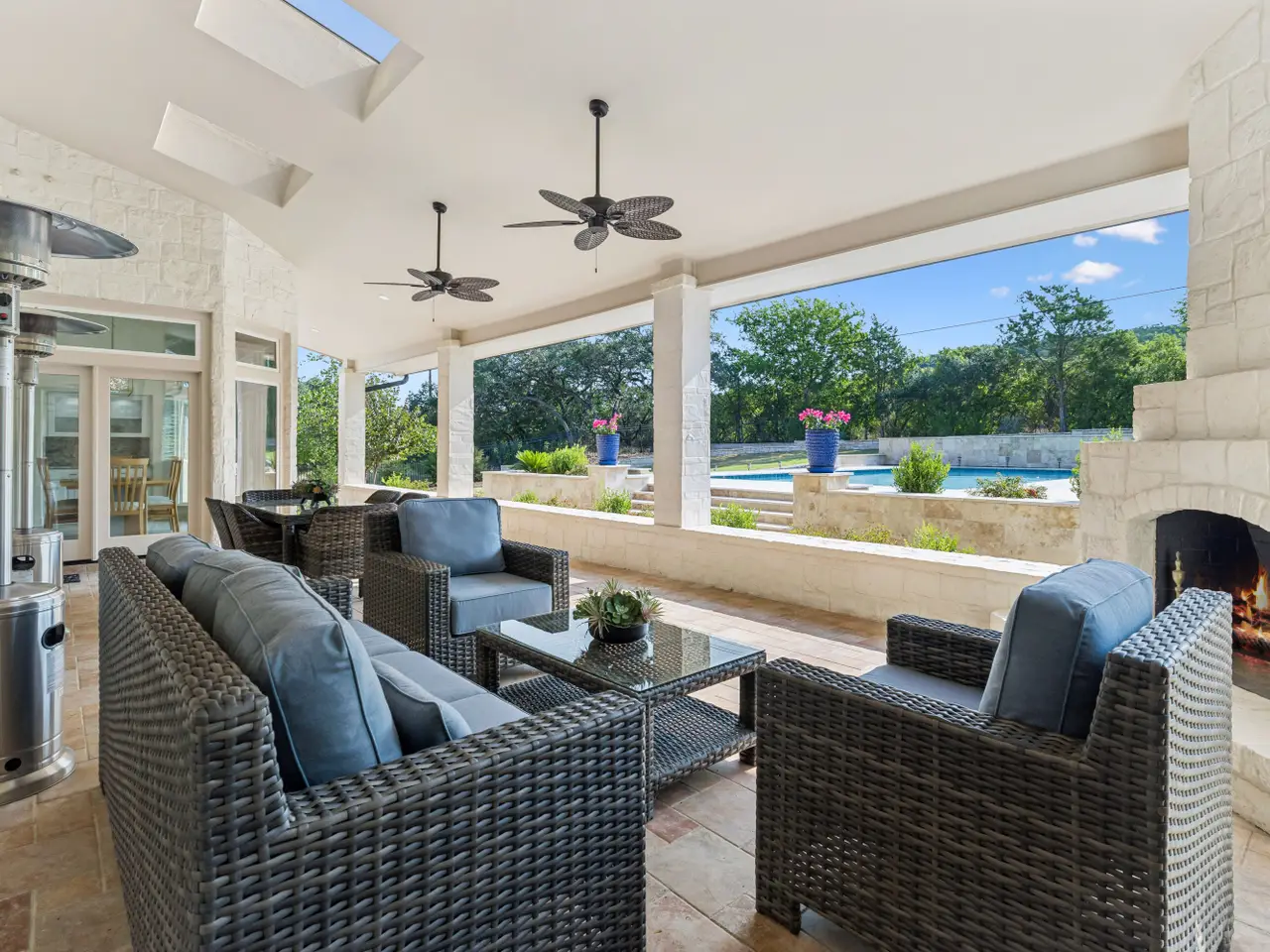 Welcome to this meticulously transformed home, perfectly situated in the heart of The Dominion. Designed for both grand entertaining and a private retreat, this residence blends modern sophistication with timeless elegance. Step inside to soaring ceilings, abundant natural light & immediate views of the outdoors. Walls of glass open seamlessly to a resort-style living space featuring an outdoor fireplace, covered patios & panoramic city views. Anchoring the property is an award-nominated 40® x 20® Cody lap pool with elegant travertine decking & dramatic lighting, a true center piece for entertaining day or night. The modern kitchen offers custom cabinetry, granite countertops & updated appliances, while Italian porcelain tile flooring flows throughout. Every bathroom has been elegantly redesigned with timeless finishes. Fresh paint, enhanced architectural lighting inside and out & energy-efficient Low-E Pella windows add comfort and peace of mind. Terraced balconies span over 700 square feet on two levels, providing the perfect setting for phenomenal views for sunset gatherings or quiet morning sunrises. A versatile 705 sq. ft. guest apartment with full bath, set privately above the garage, is ideal for family, an executive office, or an au pair suite. Designed by top-rated landscape architect Bronson Blue, the tree-lined grounds offer fabulous curb appeal and unmatched privacy, with direct adjacency to Camp Bullis & sweeping hilltop views. This is a rare opportunity to own a home that is move-in-ready, balancing prestige, craftsmanship & a lock-and-leave lifestyle in The Dominion. - 10/31/2025 8:00:54 AM
