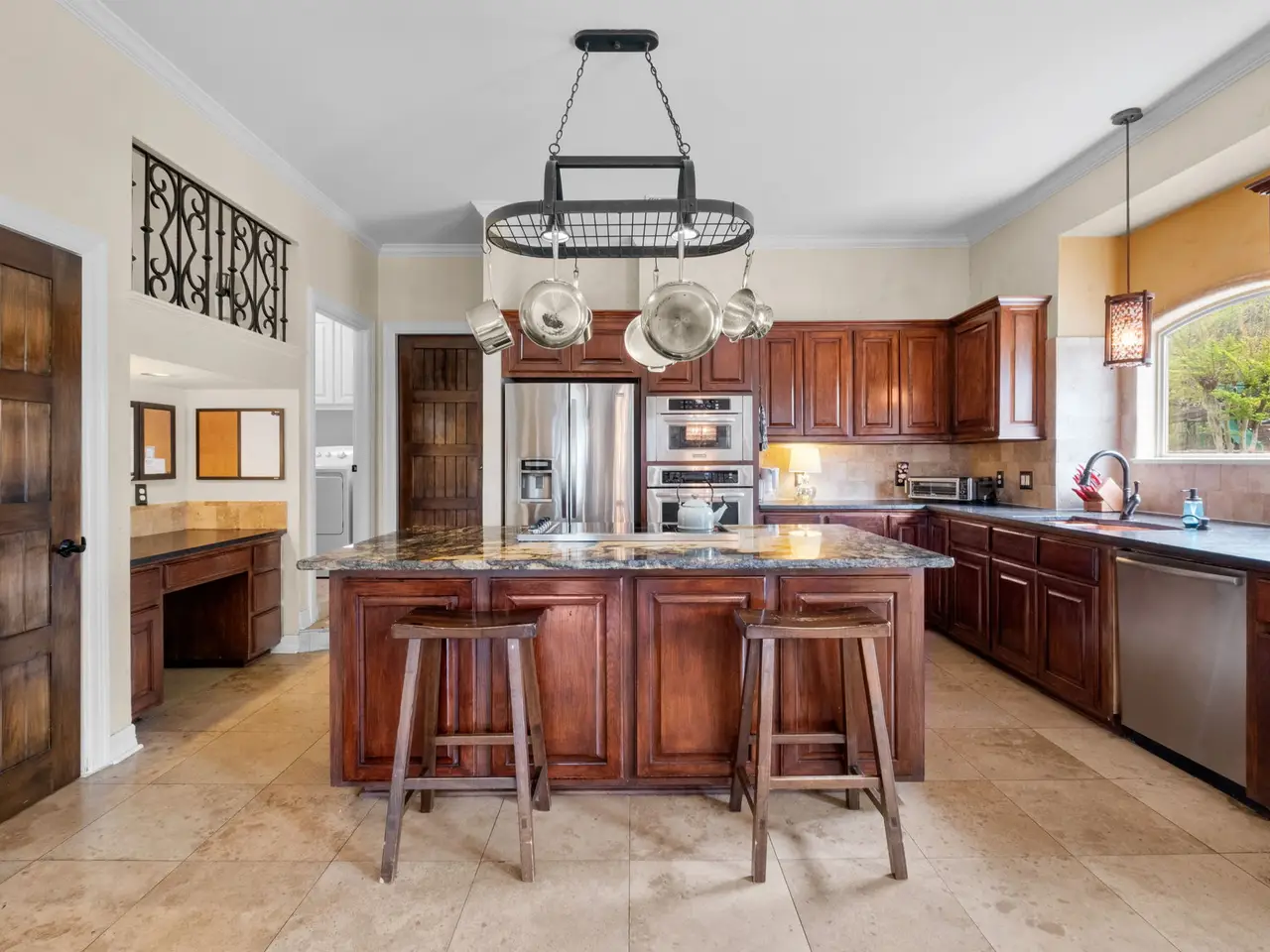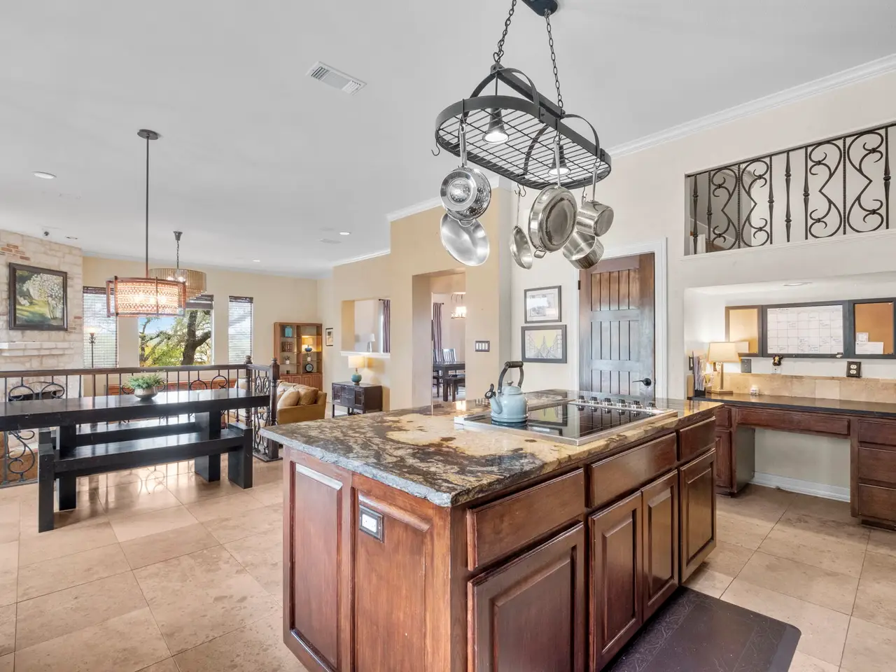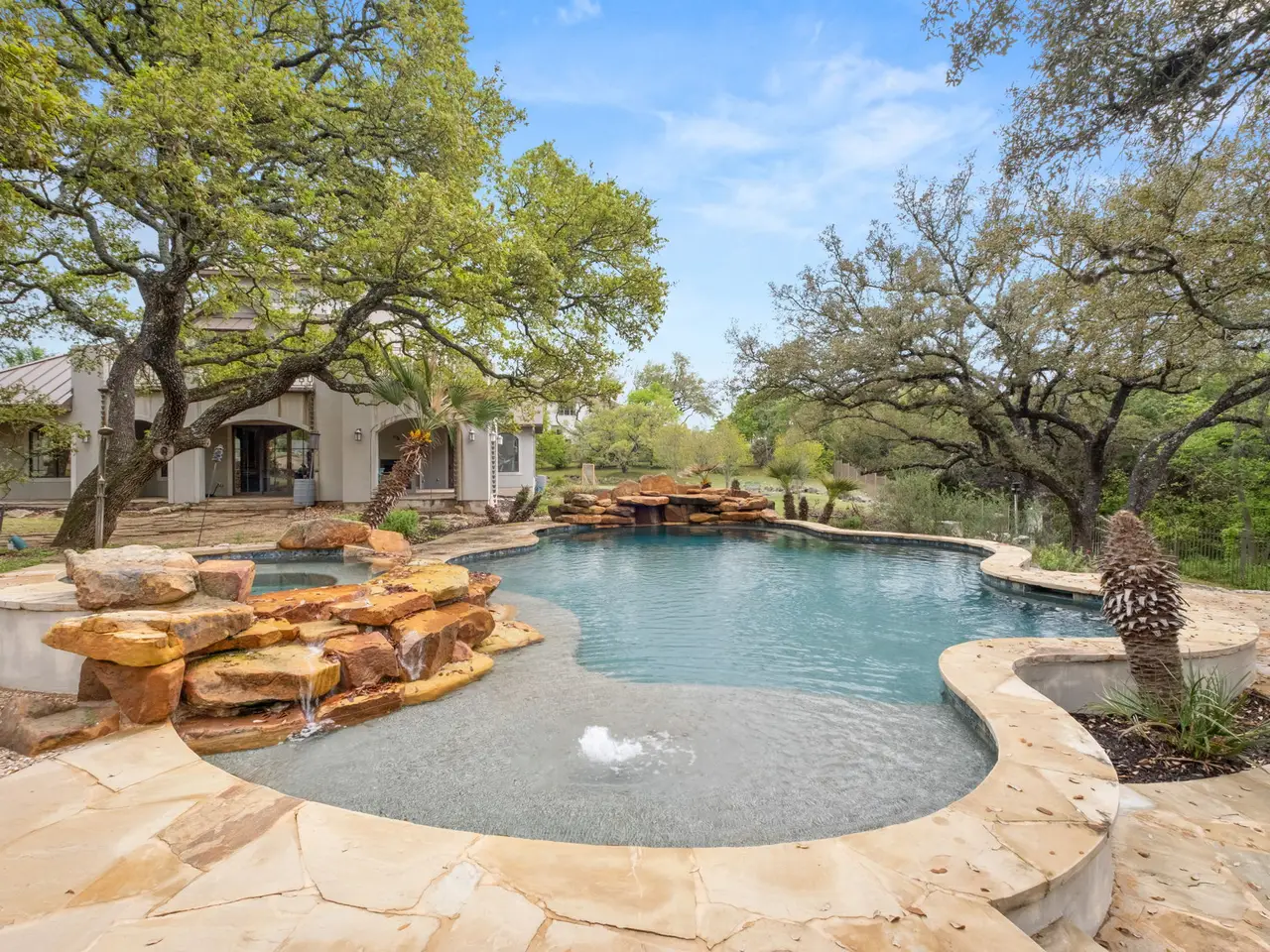 Welcome to 25052 Whistling Wind, a Mediterranean masterpiece nestled in the exclusive Hidden Spring Estates. This gated community gem, crafted by the esteemed Malatek Home Builders, rests on nearly 3 acres of lush, picturesque land, offering breathtaking views of the enchanting Hill Country. As you enter this luxurious estate, you'll find two distinct residences: a grand main house and a charming guest house. The main house, spanning approximately 3,200 square feet, boasts a thoughtfully designed floor plan. The primary suite, located on the first floor, serves as a serene retreat with a sumptuous en-suite bathroom featuring an oversized garden tub and a stand-up shower. The main level also includes an elegant dining room, perfect for cozy dinners, and a spacious island kitchen that flows seamlessly into the inviting living area, ideal for entertaining loved ones. Upstairs, the home offers comfortable and private secondary bedrooms. Step outside to find an expansive wooden deck, creating an intimate setting for special gatherings and memorable moments. Beyond the deck, a generous sparkling pool awaits, heated for year-round enjoyment and relaxation. Additional outdoor amenities include an in-ground trampoline, a dog run, and a tree house. The main house includes an attached 2-car garage. Designed with the famous Ballory Hotel in New York City mind, the nearly 1,600-square-foot guest house, ensures that visitors feel right at home with every comfort provided. It features a full kitchen and family room, two bedrooms downstairs, and an upstairs loft that can serve as an office, media room, or third bedroom. The walkout balcony on the second level provides extensive views of the surrounding hill country. The guest house also includes an attached 2-car garage. A private utility drive provides convenient access for contractors needing to service the property. 25052 Whistling Wind is a rare sanctuary in San Antonio, offering an exquisite blend of luxury, space, and tranquility amidst the stunning beauty of the Hill Country. Welcome home.