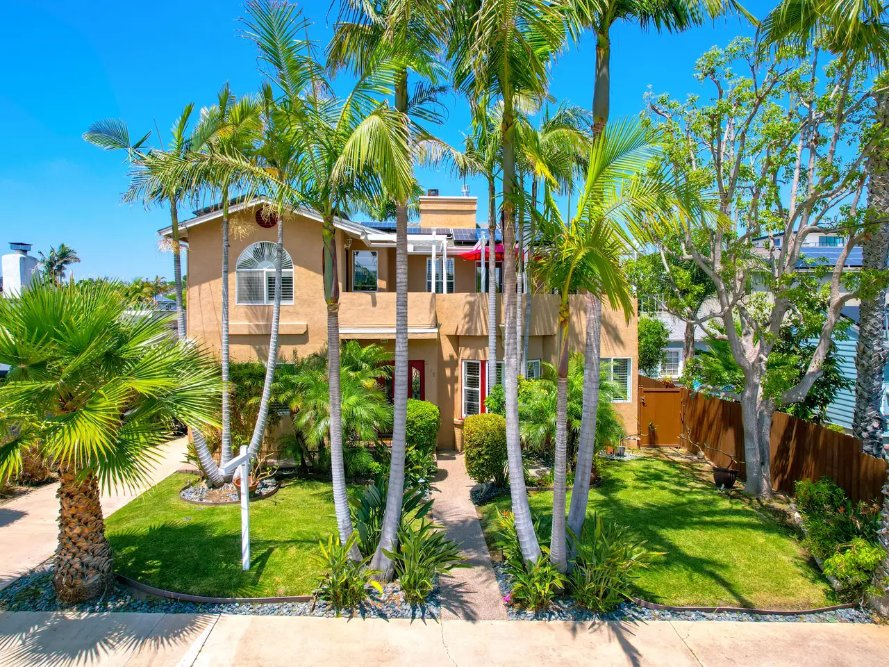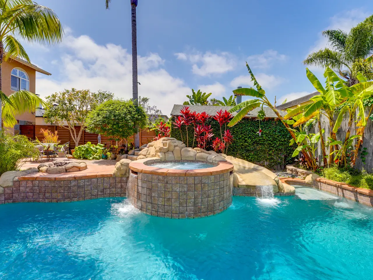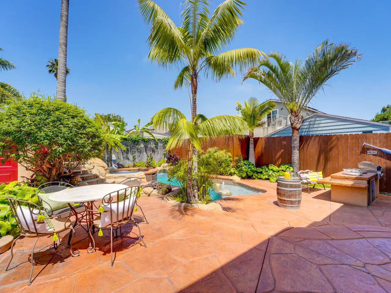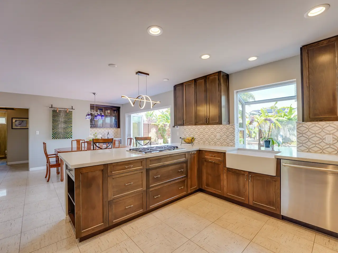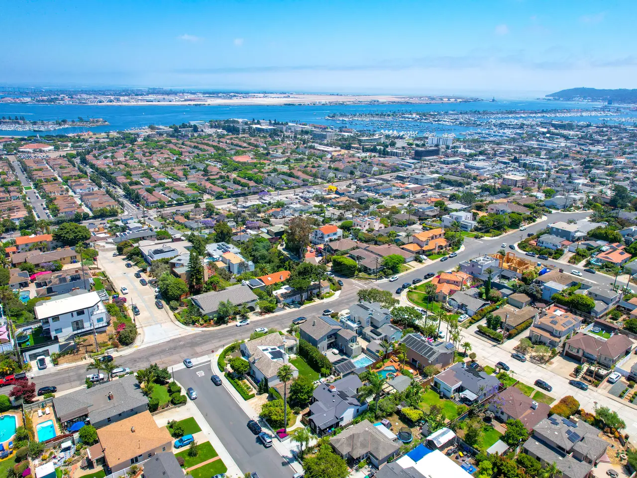 Set in one of Point Loma’s most sought-after neighborhoods, this thoughtfully remodeled Loma Portal residence blends timeless coastal style with elevated indoor-outdoor living. A versatile layout includes four bedrooms and three full bathrooms, with two bedrooms and a full bath conveniently located on the main level—perfect for guests, multigenerational living, or a dedicated home office. The heart of the home is an open, light-filled floor plan featuring rich wood flooring, large windows, and a beautifully renovated chef’s kitchen. Custom wood cabinetry, quartz countertops, a gas cooktop, and full-size double electric ovens create a gourmet experience, while a wine bar with wine refrigerator and designer lighting adds a refined touch to the adjacent dining area. The living space flows effortlessly to the backyard through expansive La Cantina folding glass doors, creating a seamless connection between indoors and out. The resort-style backyard is designed for both relaxation and entertainment, inspired by South Pacific ambiance. A sparkling pool with slide and fountains, spa, outdoor kitchen with built-in BBQ, gas burner, sink, and shower make it a true retreat. Lush tropical landscaping, swaying palms, raised garden beds, and a hand-placed stone zen garden complete the tranquil oasis. Upstairs, the serene primary suite offers a luxurious escape, complete with a striking three-sided fireplace, retreat area, and access to a private balcony shared with the third upstairs bedroom—perfect for enjoying morning coffee, ocean breezes, and evening sunsets. The spa-inspired ensuite bath includes a deep soaking tub, walk-in shower, and dual vanities. Additional highlights include an owned solar system for energy efficiency, a finished two-car garage, manicured front lawn, and a location that places you just minutes from Liberty Station, Rosecrans shops and dining, downtown, and area beaches via Chatsworth. This exceptional home captures the very best of Point Loma living—comfort, style, and convenience in one thoughtfully designed package.