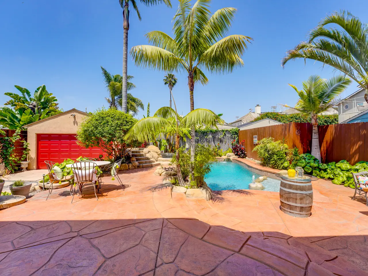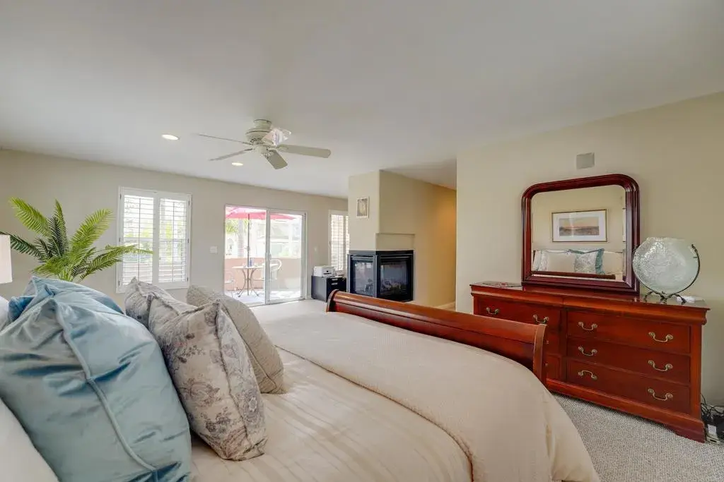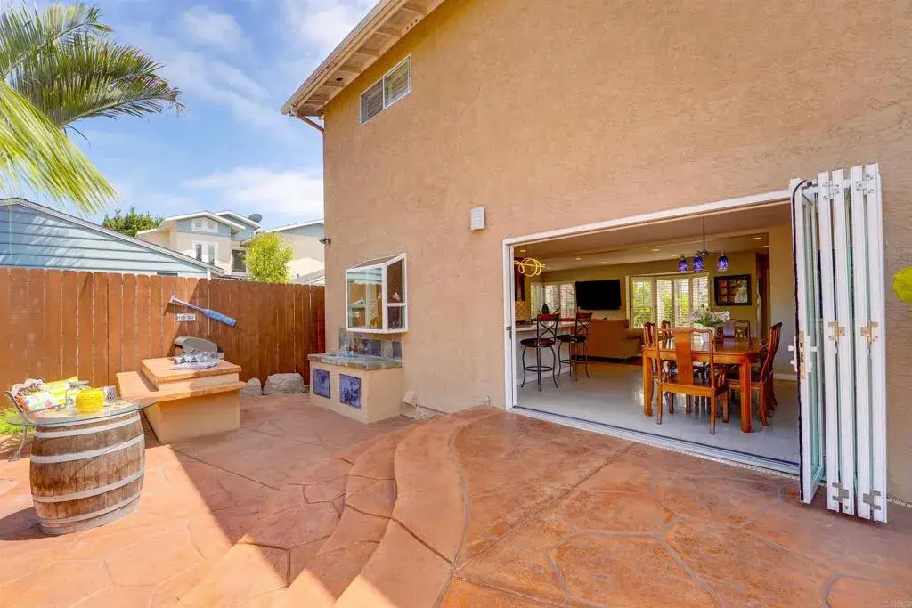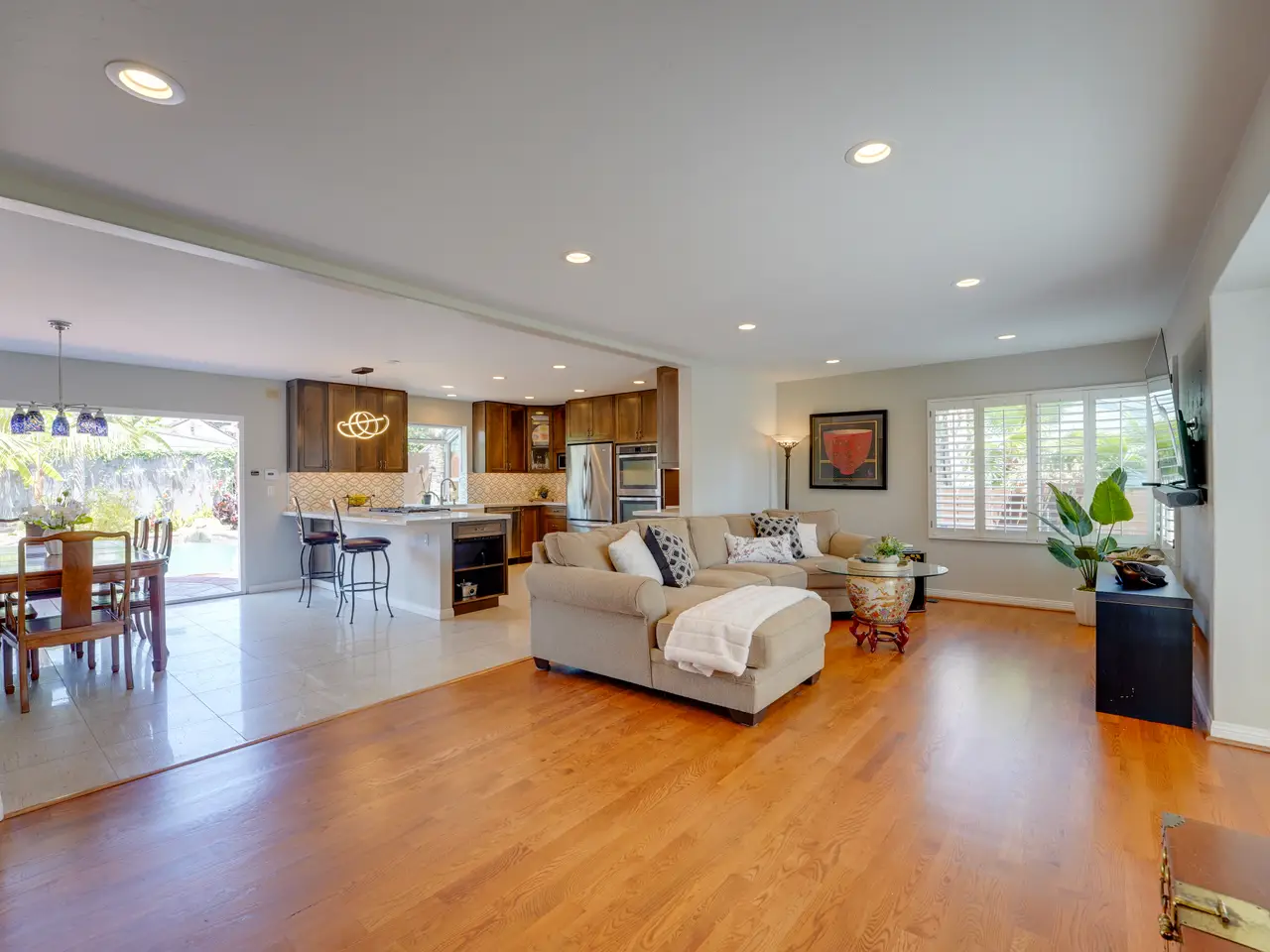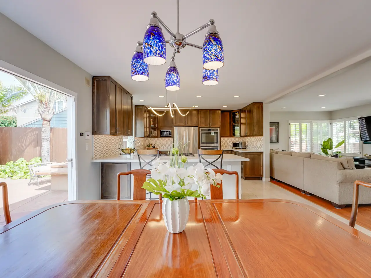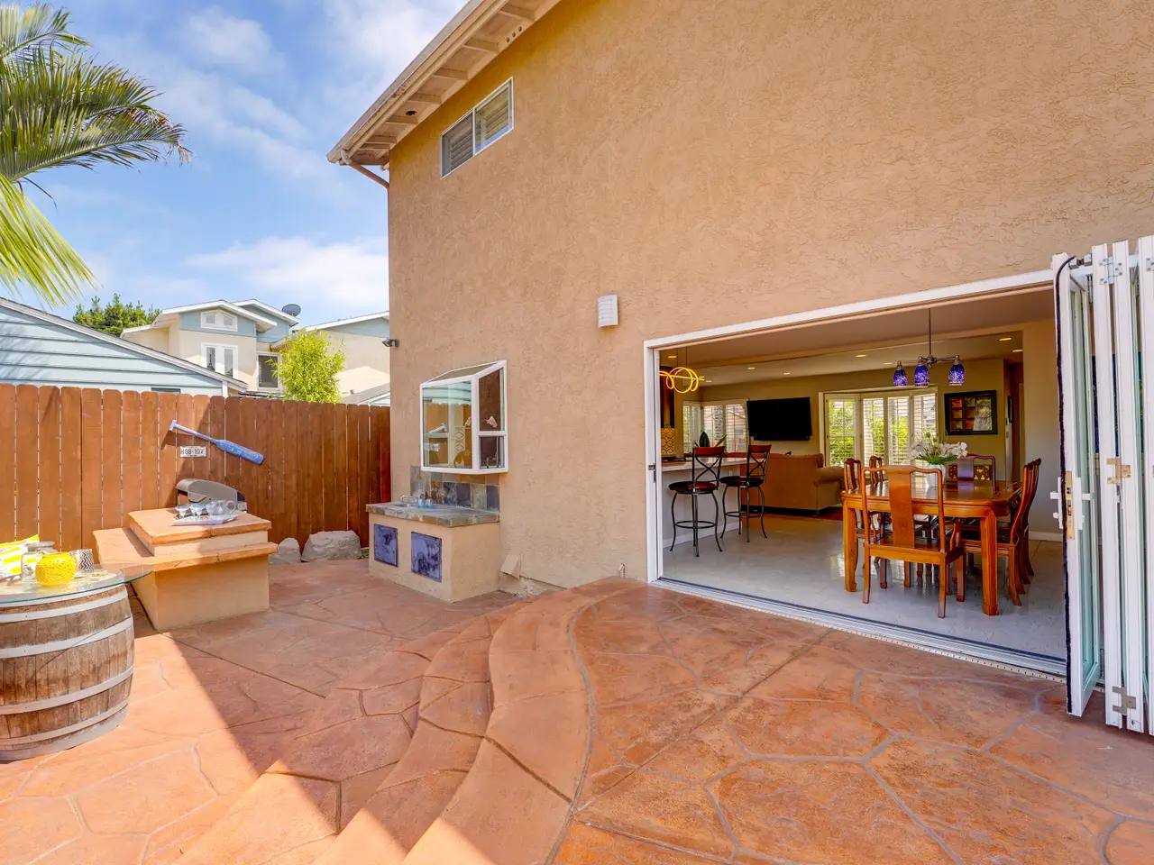 Set in one of Point Loma’s most sought-after neighborhoods, this thoughtfully remodeled Loma Portal residence blends timeless coastal style with elevated indoor-outdoor living. A versatile layout includes four bedrooms and three full bathrooms, with two bedrooms and a full bath conveniently located on the main level—perfect for guests, multigenerational living, or a dedicated home office. The heart of the home is an open, light-filled floor plan featuring rich wood flooring, large windows, and a beautifully renovated chef’s kitchen. Custom wood cabinetry, quartz countertops, a gas cooktop, and full-size double electric ovens create a gourmet experience, while a wine bar with wine refrigerator and designer lighting adds a refined touch to the adjacent dining area. The living space flows effortlessly to the backyard through expansive La Cantina folding glass doors, creating a seamless connection between indoors and out. The resort-style backyard is designed for both relaxation and entertainment, inspired by South Pacific ambiance. A sparkling pool with slide and fountains, spa, outdoor kitchen with built-in BBQ, gas burner, sink, and shower make it a true retreat. Lush tropical landscaping, swaying palms, raised garden beds, and a hand-placed stone zen garden complete the tranquil oasis. Upstairs, the serene primary suite offers a luxurious escape, complete with a striking three-sided fireplace, retreat area, and access to a private balcony shared with the third upstairs bedroom—perfect for enjoying morning coffee, ocean breezes, and evening sunsets. The spa-inspired ensuite bath includes a deep soaking tub, walk-in shower, and dual vanities. Additional highlights include an owned solar system for energy efficiency, a finished two-car garage, manicured front lawn, and a location that places you just minutes from Liberty Station, Rosecrans shops and dining, downtown, and area beaches via Chatsworth. This exceptional home captures the very best of Point Loma living—comfort, style, and convenience in one thoughtfully designed package.