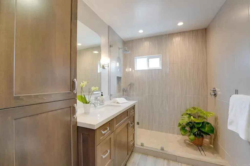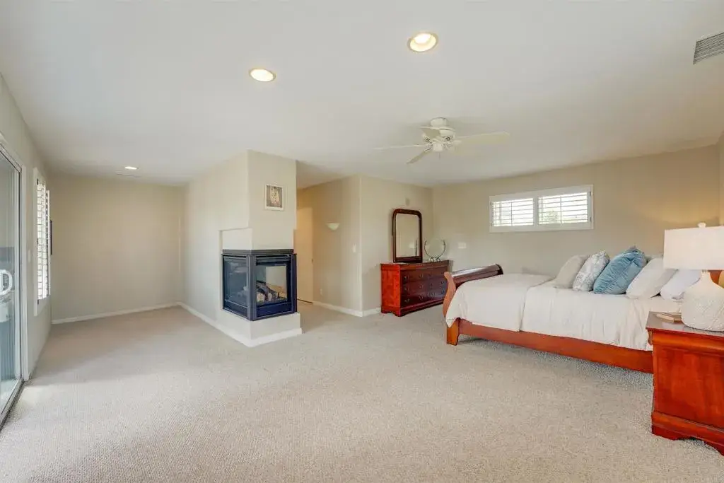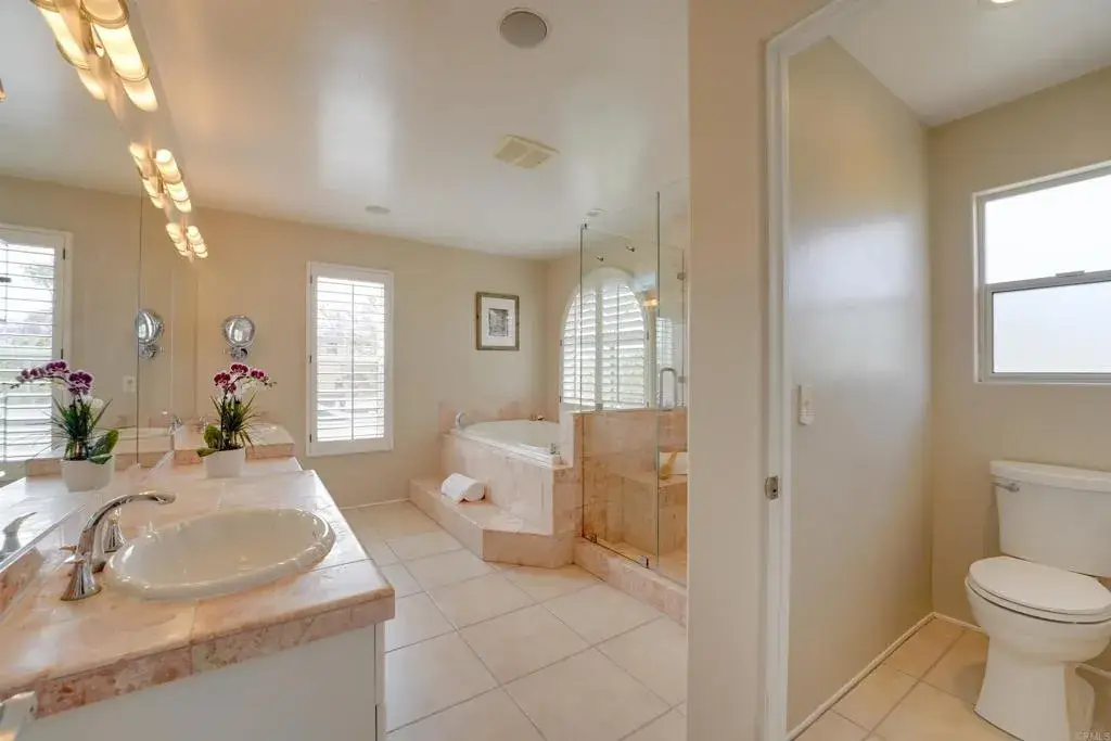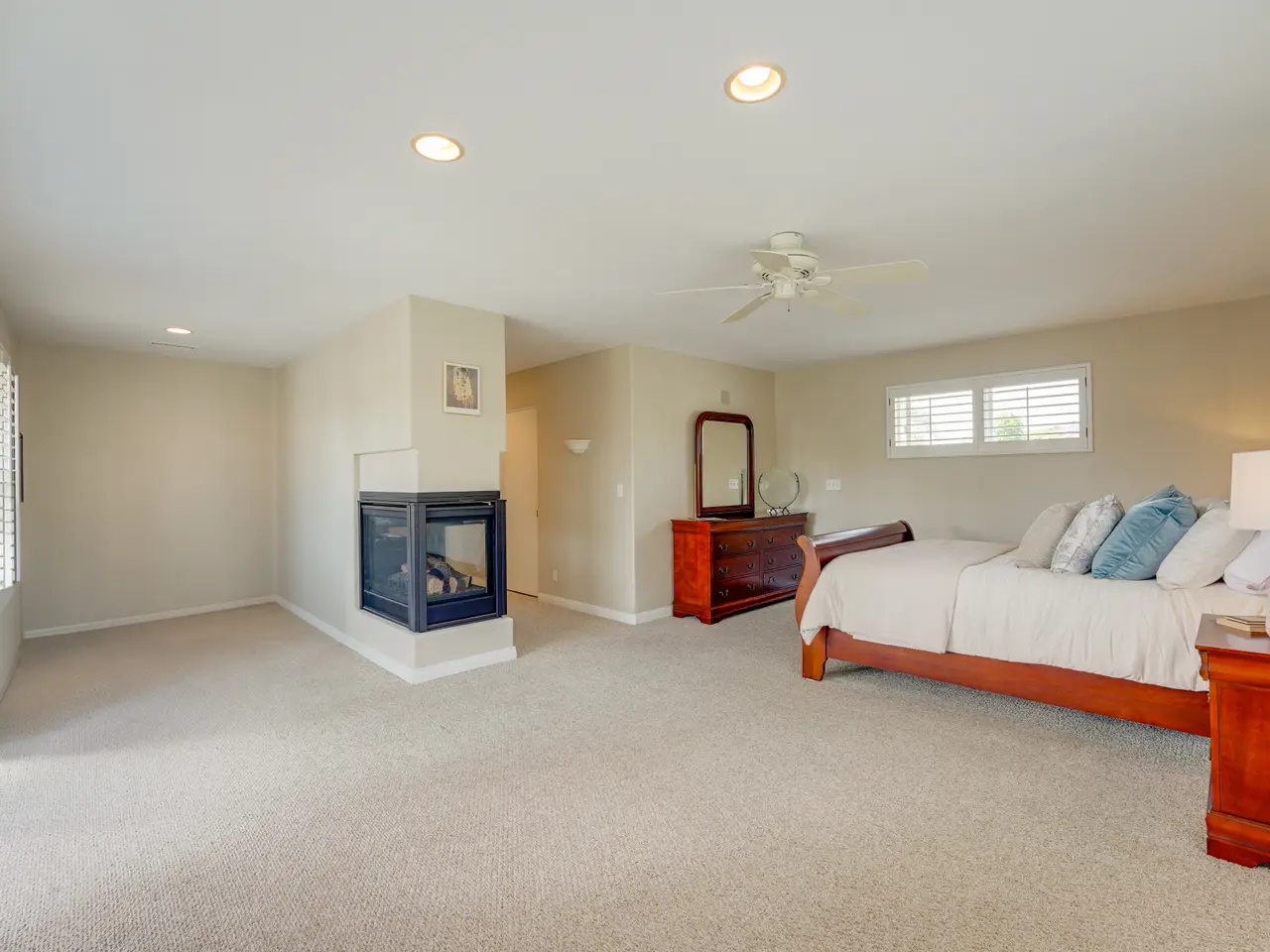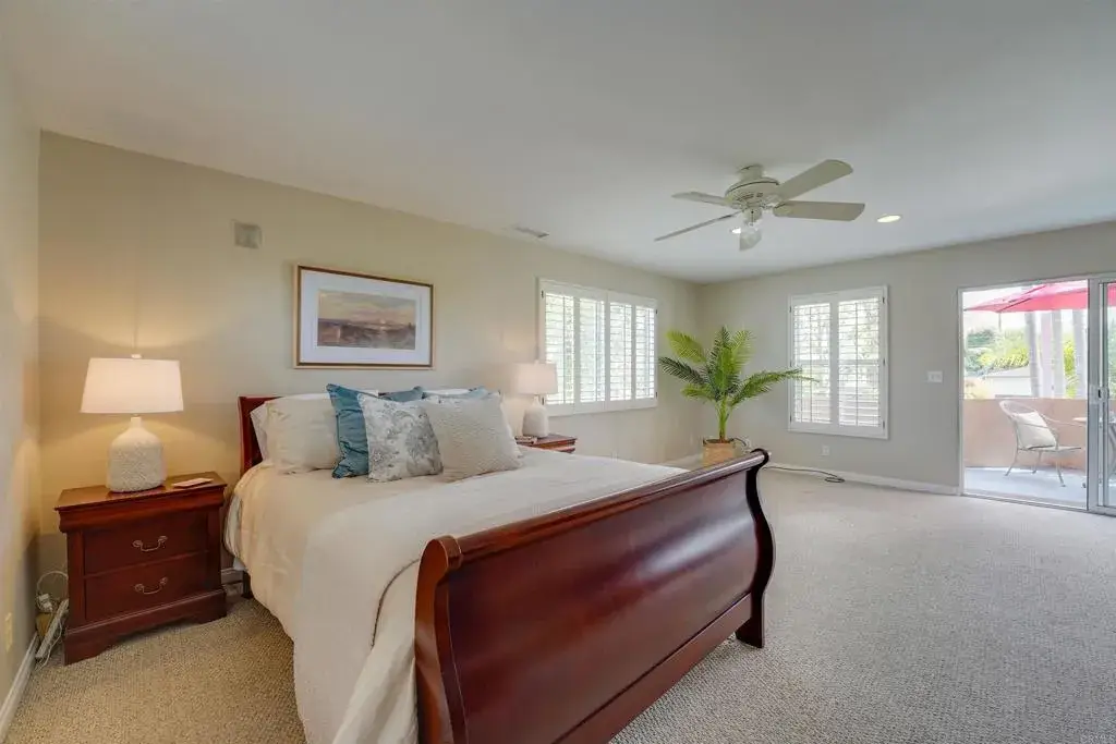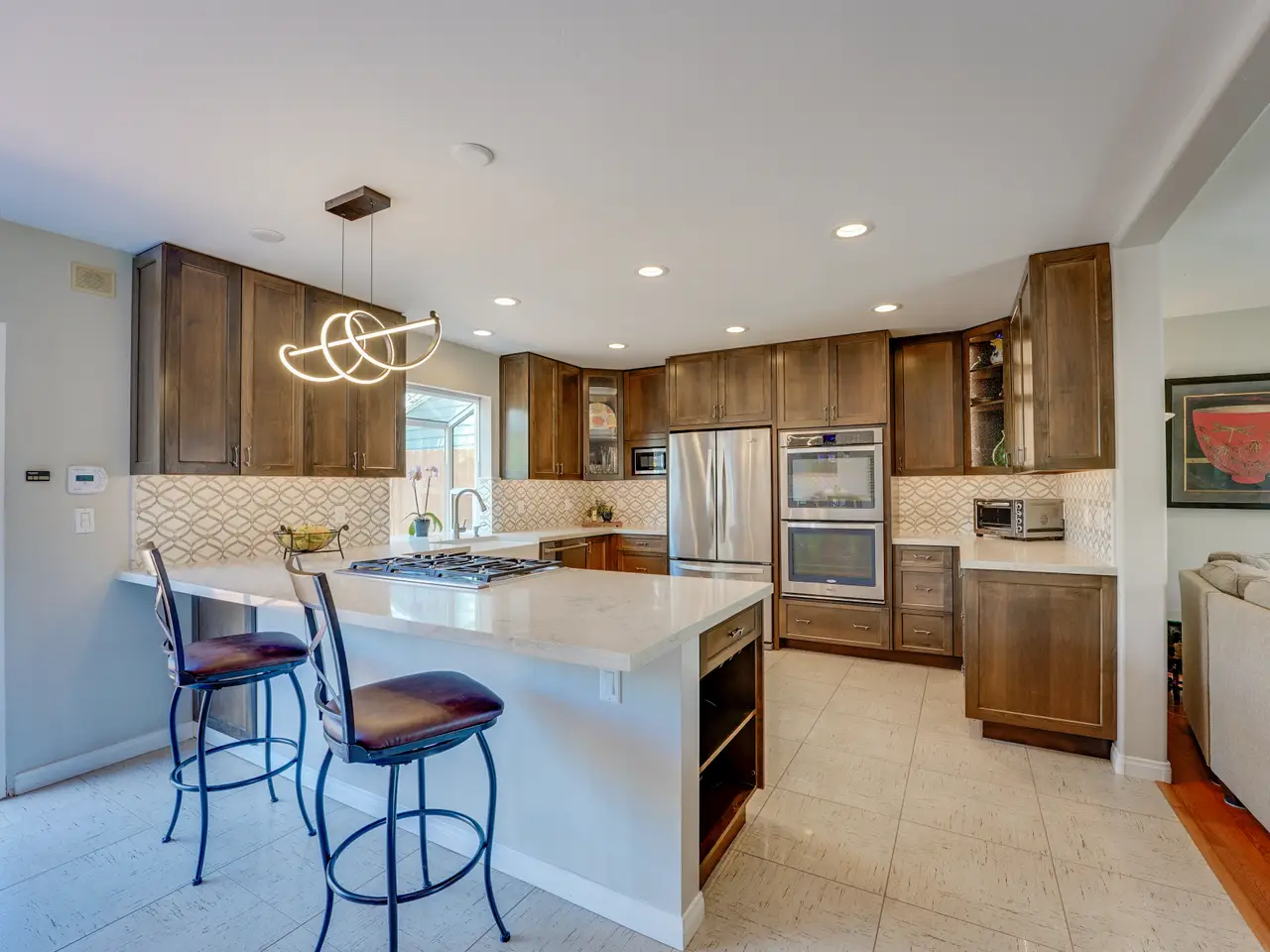 Set in one of Point Loma’s most sought-after neighborhoods, this thoughtfully remodeled Loma Portal residence blends timeless coastal style with elevated indoor-outdoor living. A versatile layout includes four bedrooms and three full bathrooms, with two bedrooms and a full bath conveniently located on the main level—perfect for guests, multigenerational living, or a dedicated home office. The heart of the home is an open, light-filled floor plan featuring rich wood flooring, large windows, and a beautifully renovated chef’s kitchen. Custom wood cabinetry, quartz countertops, a gas cooktop, and full-size double electric ovens create a gourmet experience, while a wine bar with wine refrigerator and designer lighting adds a refined touch to the adjacent dining area. The living space flows effortlessly to the backyard through expansive La Cantina folding glass doors, creating a seamless connection between indoors and out. The resort-style backyard is designed for both relaxation and entertainment, inspired by South Pacific ambiance. A sparkling pool with slide and fountains, spa, outdoor kitchen with built-in BBQ, gas burner, sink, and shower make it a true retreat. Lush tropical landscaping, swaying palms, raised garden beds, and a hand-placed stone zen garden complete the tranquil oasis. Upstairs, the serene primary suite offers a luxurious escape, complete with a striking three-sided fireplace, retreat area, and access to a private balcony shared with the third upstairs bedroom—perfect for enjoying morning coffee, ocean breezes, and evening sunsets. The spa-inspired ensuite bath includes a deep soaking tub, walk-in shower, and dual vanities. Additional highlights include an owned solar system for energy efficiency, a finished two-car garage, manicured front lawn, and a location that places you just minutes from Liberty Station, Rosecrans shops and dining, downtown, and area beaches via Chatsworth. This exceptional home captures the very best of Point Loma living—comfort, style, and convenience in one thoughtfully designed package.
