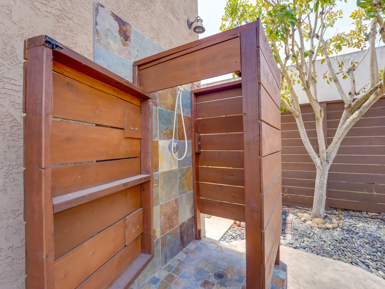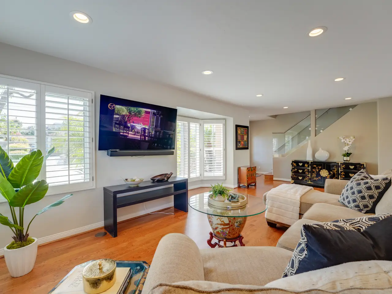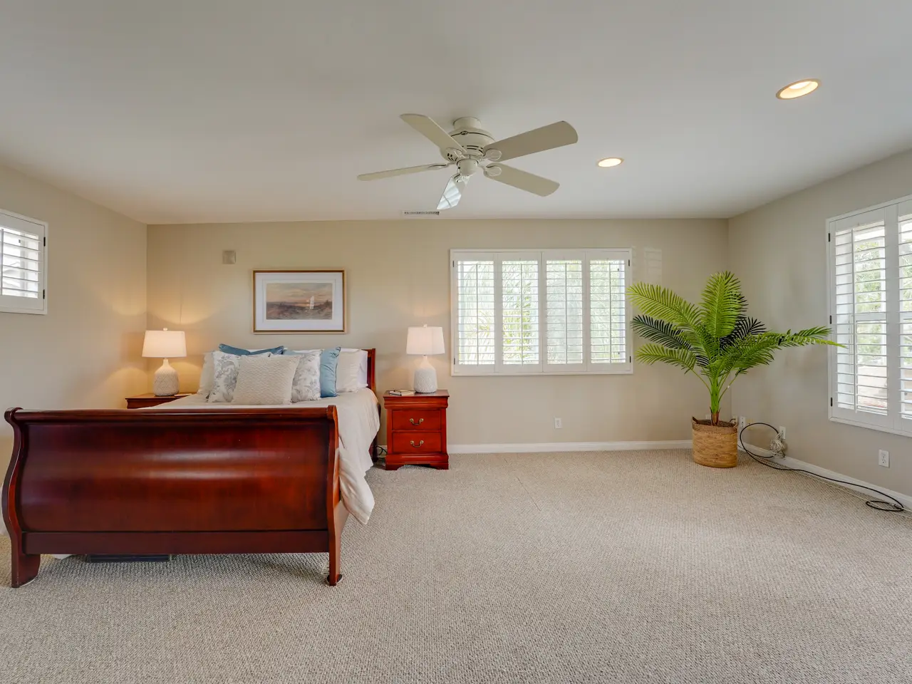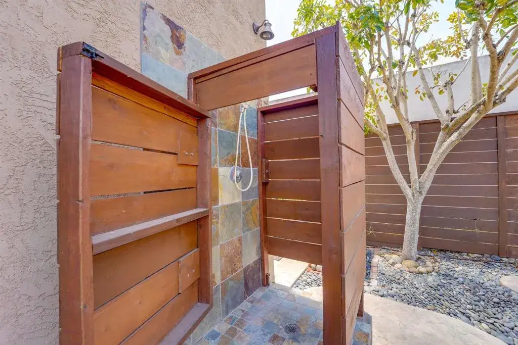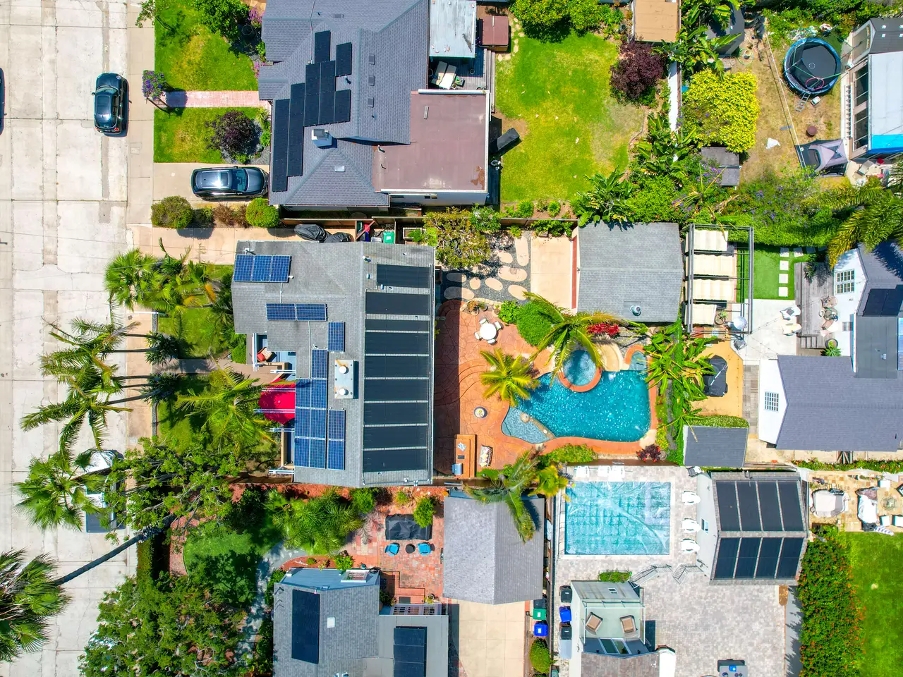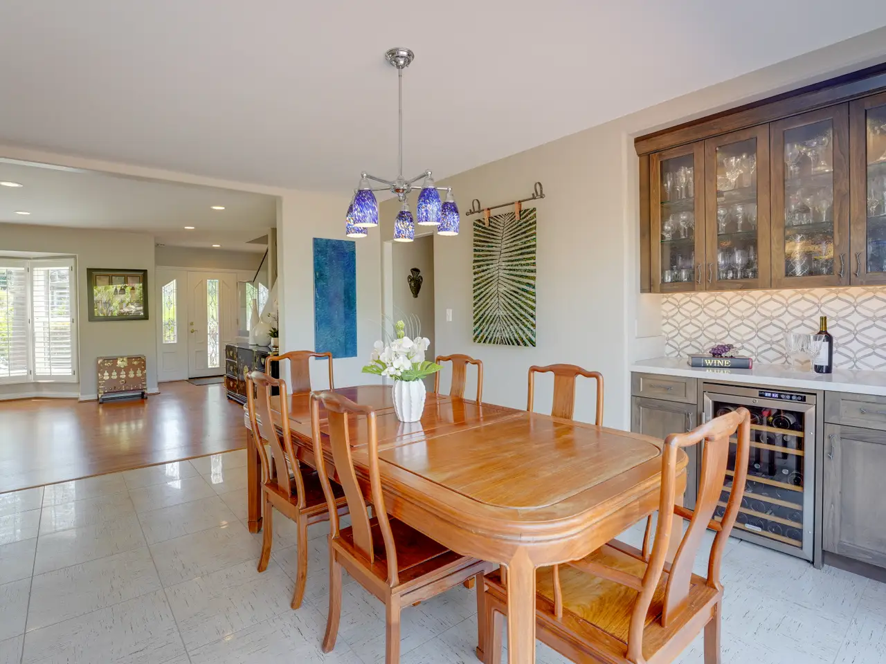 Set in one of Point Loma’s most sought-after neighborhoods, this thoughtfully remodeled Loma Portal residence blends timeless coastal style with elevated indoor-outdoor living. A versatile layout includes four bedrooms and three full bathrooms, with two bedrooms and a full bath conveniently located on the main level—perfect for guests, multigenerational living, or a dedicated home office. The heart of the home is an open, light-filled floor plan featuring rich wood flooring, large windows, and a beautifully renovated chef’s kitchen. Custom wood cabinetry, quartz countertops, a gas cooktop, and full-size double electric ovens create a gourmet experience, while a wine bar with wine refrigerator and designer lighting adds a refined touch to the adjacent dining area. The living space flows effortlessly to the backyard through expansive La Cantina folding glass doors, creating a seamless connection between indoors and out. The resort-style backyard is designed for both relaxation and entertainment, inspired by South Pacific ambiance. A sparkling pool with slide and fountains, spa, outdoor kitchen with built-in BBQ, gas burner, sink, and shower make it a true retreat. Lush tropical landscaping, swaying palms, raised garden beds, and a hand-placed stone zen garden complete the tranquil oasis. Upstairs, the serene primary suite offers a luxurious escape, complete with a striking three-sided fireplace, retreat area, and access to a private balcony shared with the third upstairs bedroom—perfect for enjoying morning coffee, ocean breezes, and evening sunsets. The spa-inspired ensuite bath includes a deep soaking tub, walk-in shower, and dual vanities. Additional highlights include an owned solar system for energy efficiency, a finished two-car garage, manicured front lawn, and a location that places you just minutes from Liberty Station, Rosecrans shops and dining, downtown, and area beaches via Chatsworth. This exceptional home captures the very best of Point Loma living—comfort, style, and convenience in one thoughtfully designed package.
