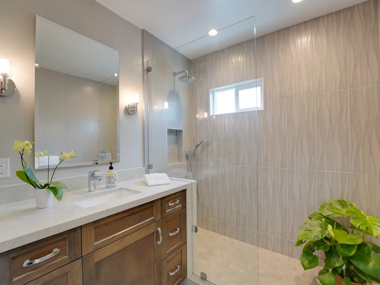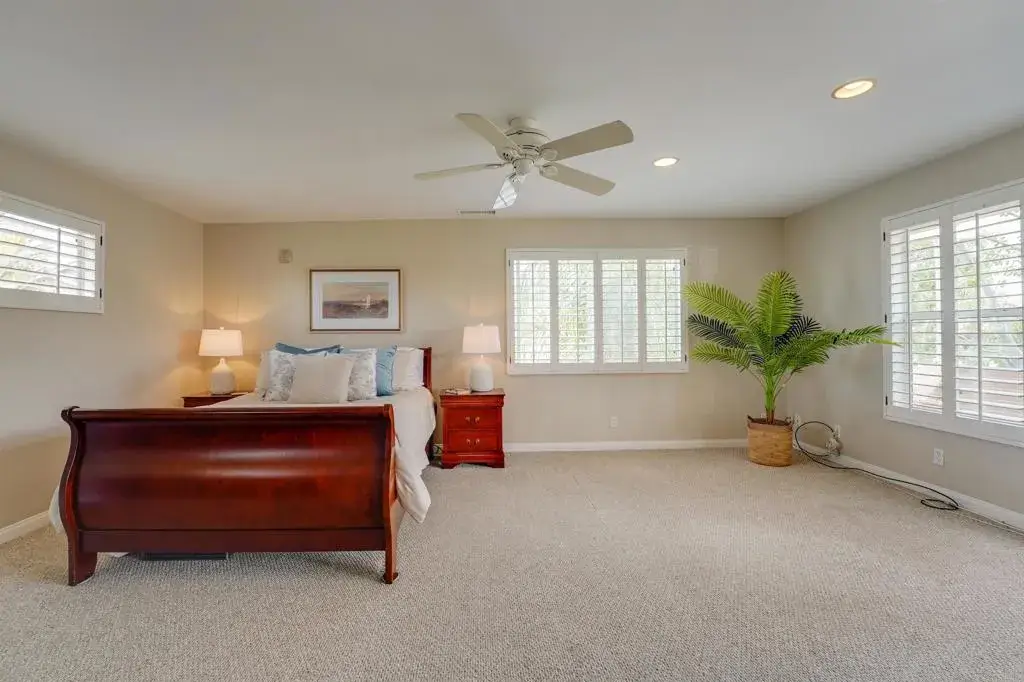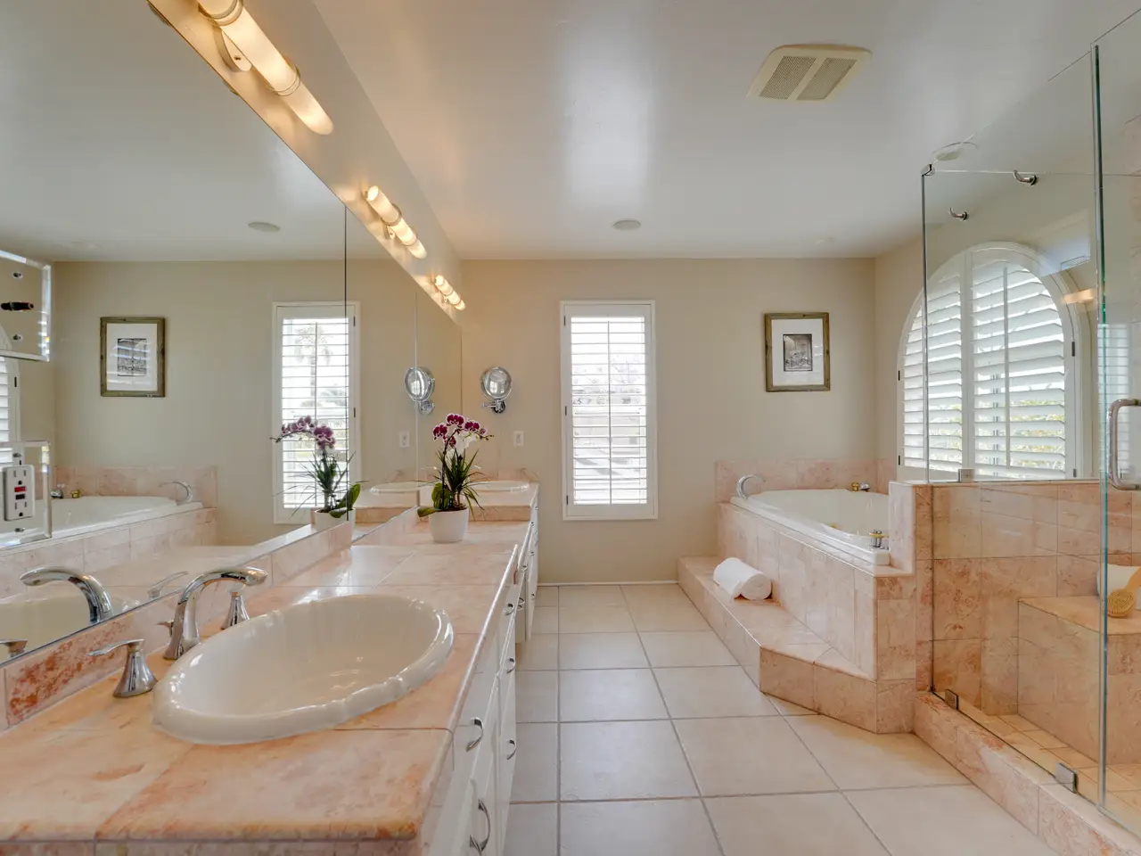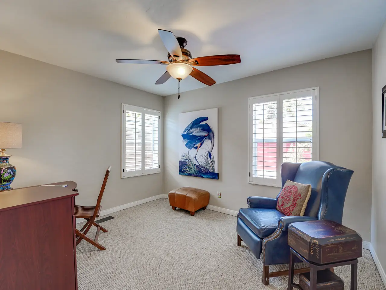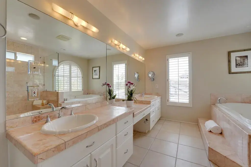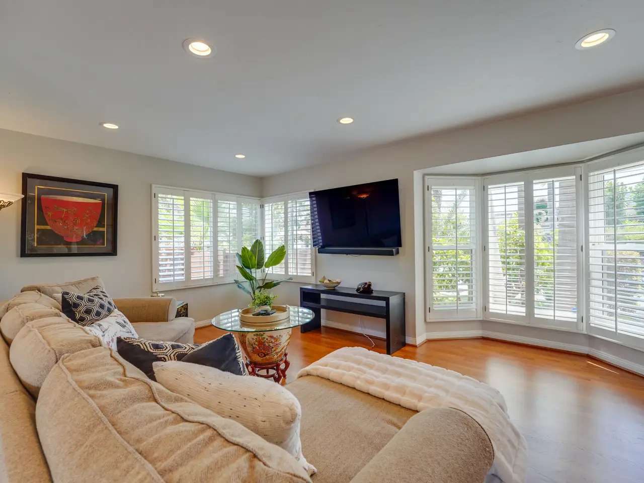 Set in one of Point Loma’s most sought-after neighborhoods, this thoughtfully remodeled Loma Portal residence blends timeless coastal style with elevated indoor-outdoor living. A versatile layout includes four bedrooms and three full bathrooms, with two bedrooms and a full bath conveniently located on the main level—perfect for guests, multigenerational living, or a dedicated home office. The heart of the home is an open, light-filled floor plan featuring rich wood flooring, large windows, and a beautifully renovated chef’s kitchen. Custom wood cabinetry, quartz countertops, a gas cooktop, and full-size double electric ovens create a gourmet experience, while a wine bar with wine refrigerator and designer lighting adds a refined touch to the adjacent dining area. The living space flows effortlessly to the backyard through expansive La Cantina folding glass doors, creating a seamless connection between indoors and out. The resort-style backyard is designed for both relaxation and entertainment, inspired by South Pacific ambiance. A sparkling pool with slide and fountains, spa, outdoor kitchen with built-in BBQ, gas burner, sink, and shower make it a true retreat. Lush tropical landscaping, swaying palms, raised garden beds, and a hand-placed stone zen garden complete the tranquil oasis. Upstairs, the serene primary suite offers a luxurious escape, complete with a striking three-sided fireplace, retreat area, and access to a private balcony shared with the third upstairs bedroom—perfect for enjoying morning coffee, ocean breezes, and evening sunsets. The spa-inspired ensuite bath includes a deep soaking tub, walk-in shower, and dual vanities. Additional highlights include an owned solar system for energy efficiency, a finished two-car garage, manicured front lawn, and a location that places you just minutes from Liberty Station, Rosecrans shops and dining, downtown, and area beaches via Chatsworth. This exceptional home captures the very best of Point Loma living—comfort, style, and convenience in one thoughtfully designed package.
