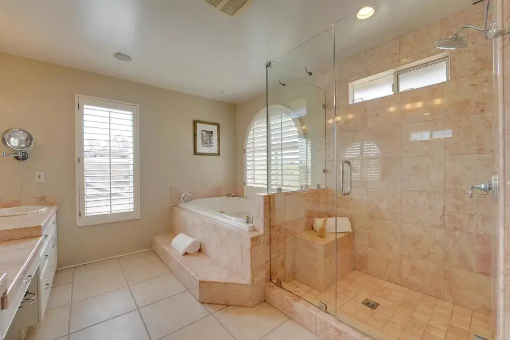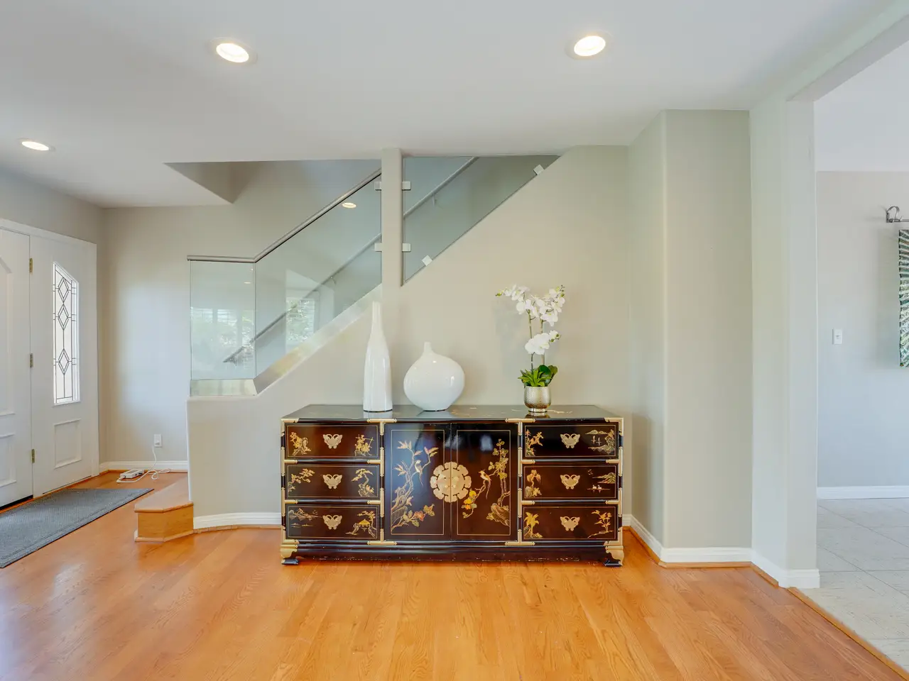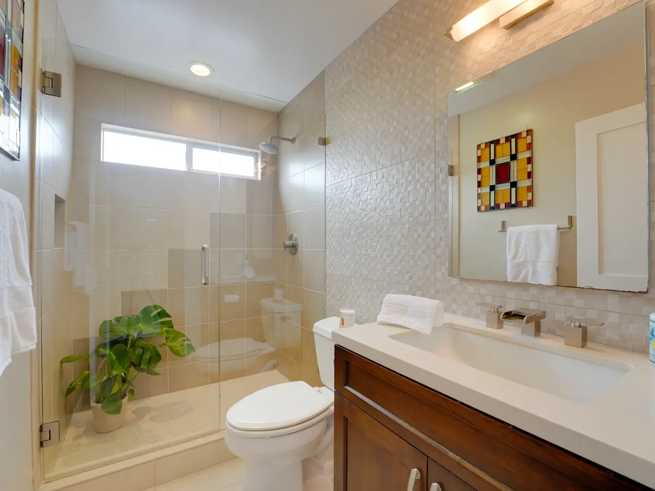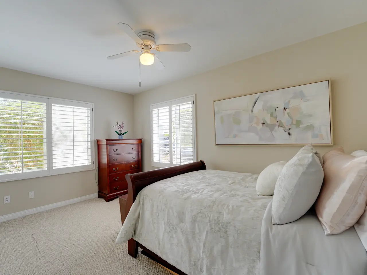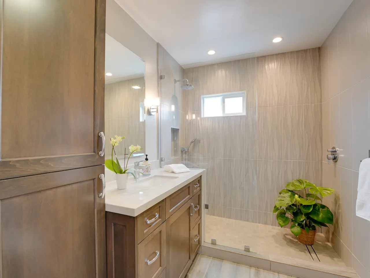 Set in one of Point Loma’s most sought-after neighborhoods, this thoughtfully remodeled Loma Portal residence blends timeless coastal style with elevated indoor-outdoor living. A versatile layout includes four bedrooms and three full bathrooms, with two bedrooms and a full bath conveniently located on the main level—perfect for guests, multigenerational living, or a dedicated home office. The heart of the home is an open, light-filled floor plan featuring rich wood flooring, large windows, and a beautifully renovated chef’s kitchen. Custom wood cabinetry, quartz countertops, a gas cooktop, and full-size double electric ovens create a gourmet experience, while a wine bar with wine refrigerator and designer lighting adds a refined touch to the adjacent dining area. The living space flows effortlessly to the backyard through expansive La Cantina folding glass doors, creating a seamless connection between indoors and out. The resort-style backyard is designed for both relaxation and entertainment, inspired by South Pacific ambiance. A sparkling pool with slide and fountains, spa, outdoor kitchen with built-in BBQ, gas burner, sink, and shower make it a true retreat. Lush tropical landscaping, swaying palms, raised garden beds, and a hand-placed stone zen garden complete the tranquil oasis. Upstairs, the serene primary suite offers a luxurious escape, complete with a striking three-sided fireplace, retreat area, and access to a private balcony shared with the third upstairs bedroom—perfect for enjoying morning coffee, ocean breezes, and evening sunsets. The spa-inspired ensuite bath includes a deep soaking tub, walk-in shower, and dual vanities. Additional highlights include an owned solar system for energy efficiency, a finished two-car garage, manicured front lawn, and a location that places you just minutes from Liberty Station, Rosecrans shops and dining, downtown, and area beaches via Chatsworth. This exceptional home captures the very best of Point Loma living—comfort, style, and convenience in one thoughtfully designed package.