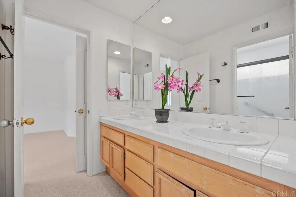 This spacious four bedroom, three bath home is located in the highly desirable community of Woodcrest Hills in Rancho Peasquitos. Featuring soaring vaulted ceilings, brand-new carpet, and a freshly painted interior, it offers a bright and welcoming feel throughout. The beautifully upgraded kitchen is perfect for any home chef, and energy efficiency abounds with owned solar and a Tesla Powerwall battery. From the backyard and patio, enjoy breathtaking views and unforgettable sunsetsan ideal setting for entertaining friends and family. Community amenities include a sparkling pool, tennis courts, and scenic green spaces. Outdoor enthusiasts will love the nearby Rancho Peasquitos Preserve, offering over 10 miles of trails. With low HOA fees of just $165 per month, convenient access to shopping, and a serene country feel while still being close to the city, this home truly offers the best of both worlds!