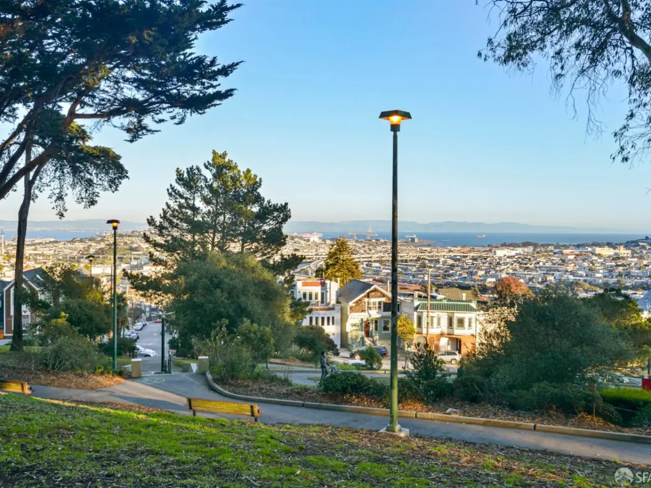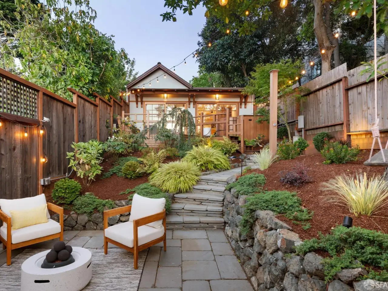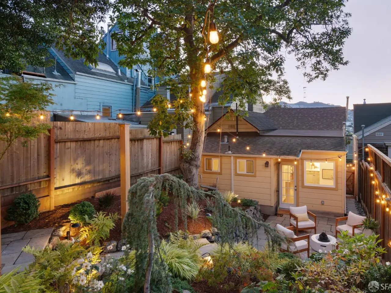 Charming Victorian home with detached rear cottage on a 122-foot deep lot, set on a coveted street along the northwest slope of Bernal Heights. Behind its cheerful facade, this entertainer's dream offers a bright living room with pocket doors to a double parlor/bedroom, formal dining room, remodeled kitchen, and a primary suite with a spacious en-suite bath. Period details blend harmoniously with modern updates including refinished hardwood floors, soaring 11 ceilings, and contemporary lighting. Garage with 1 car parking and washer/dryer complete the main home. Enjoy a smooth transition of indoor-outdoor living in the deep, verdant east-facing garden designed by Janet Moyer Landscaping. A walk-out bluestone patio and lush plantings leads to the recently renovated rear studio cottage, perfect for a creative retreat, guests, or even potential rental income. Ideally located, this home offers easy access to Cortland Avenue and Mission Street shops and cafes, plus nearby Holly, Precita, and Bernal Heights Parks. With tech shuttle stops, BART, and freeway access close at hand, this is Bernal Heights living at its finest.