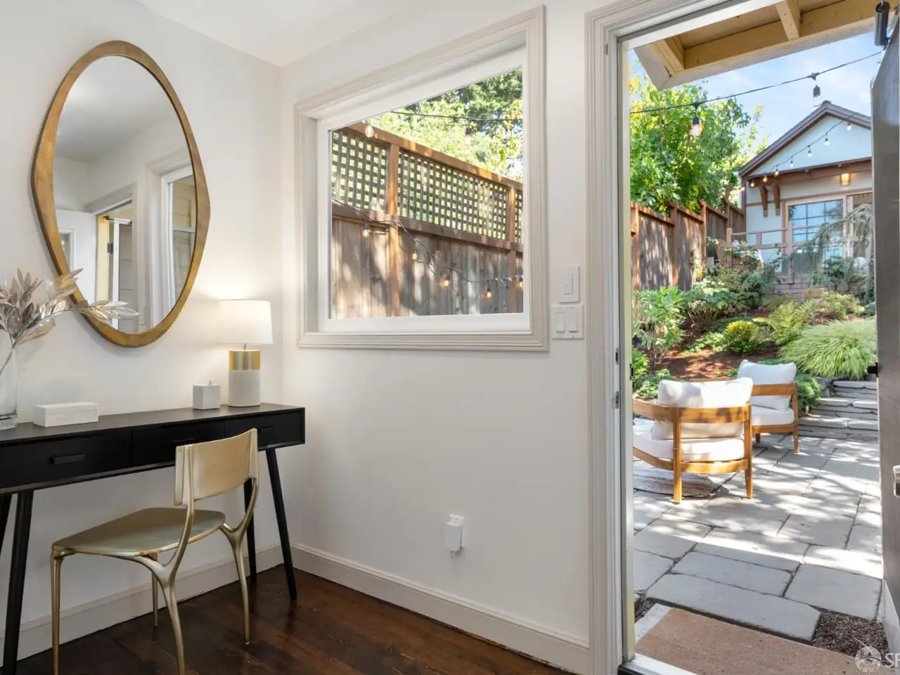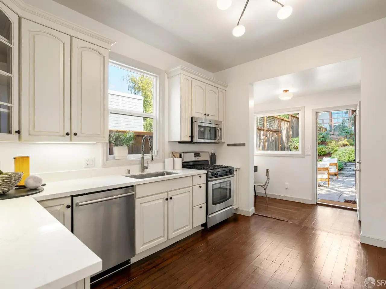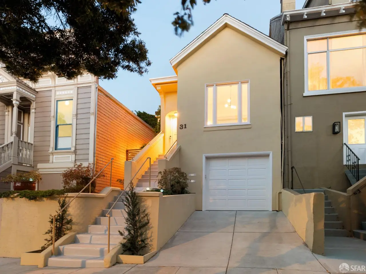 Charming Victorian home with detached rear cottage on a 122-foot deep lot, set on a coveted street along the northwest slope of Bernal Heights. Behind its cheerful facade, this entertainer's dream offers a bright living room with pocket doors to a double parlor/bedroom, formal dining room, remodeled kitchen, and a primary suite with a spacious en-suite bath. Period details blend harmoniously with modern updates including refinished hardwood floors, soaring 11 ceilings, and contemporary lighting. Garage with 1 car parking and washer/dryer complete the main home. Enjoy a smooth transition of indoor-outdoor living in the deep, verdant east-facing garden designed by Janet Moyer Landscaping. A walk-out bluestone patio and lush plantings leads to the recently renovated rear studio cottage, perfect for a creative retreat, guests, or even potential rental income. Ideally located, this home offers easy access to Cortland Avenue and Mission Street shops and cafes, plus nearby Holly, Precita, and Bernal Heights Parks. With tech shuttle stops, BART, and freeway access close at hand, this is Bernal Heights living at its finest.