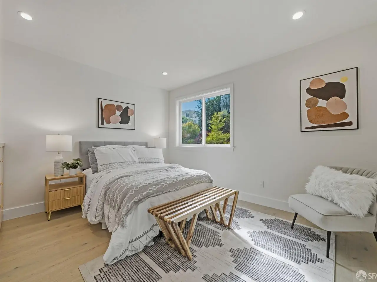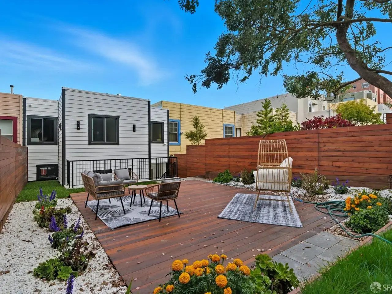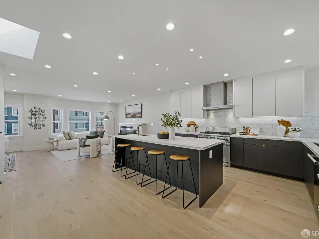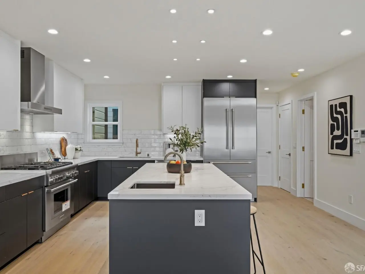 Discover a completely reimagined residence in the Heart of Central Richmond, where Modern Design meets Effortless Elegance. This striking home features an open-concept layout designed for seamless flow. The gourmet kitchen is a chef's dream which includes professional-grade Thermador appliances, custom cabinetry, and a stunning standalone island perfect for entertaining and daily living. The main level offers two spacious en-suites and a chic guest bath. The Radiant floor heating throughout provides year-round comfort. The lower level includes a versatile media/family room with a wet bar, a bedroom, full bath, and a flexible den ideal for an office, yoga room, or guest space. Outside is your private backyard retreat with an expansive deck, perfect for quiet relaxation or dining. EV-charger-ready garage adds to your everyday convenience and complements your sustainable, low-emission lifestyle. Located near Lincoln Park, the Presidio, Lands End, Ocean Beach, and the Legion of Honor, with the 38-Geary transit line just outside your door.