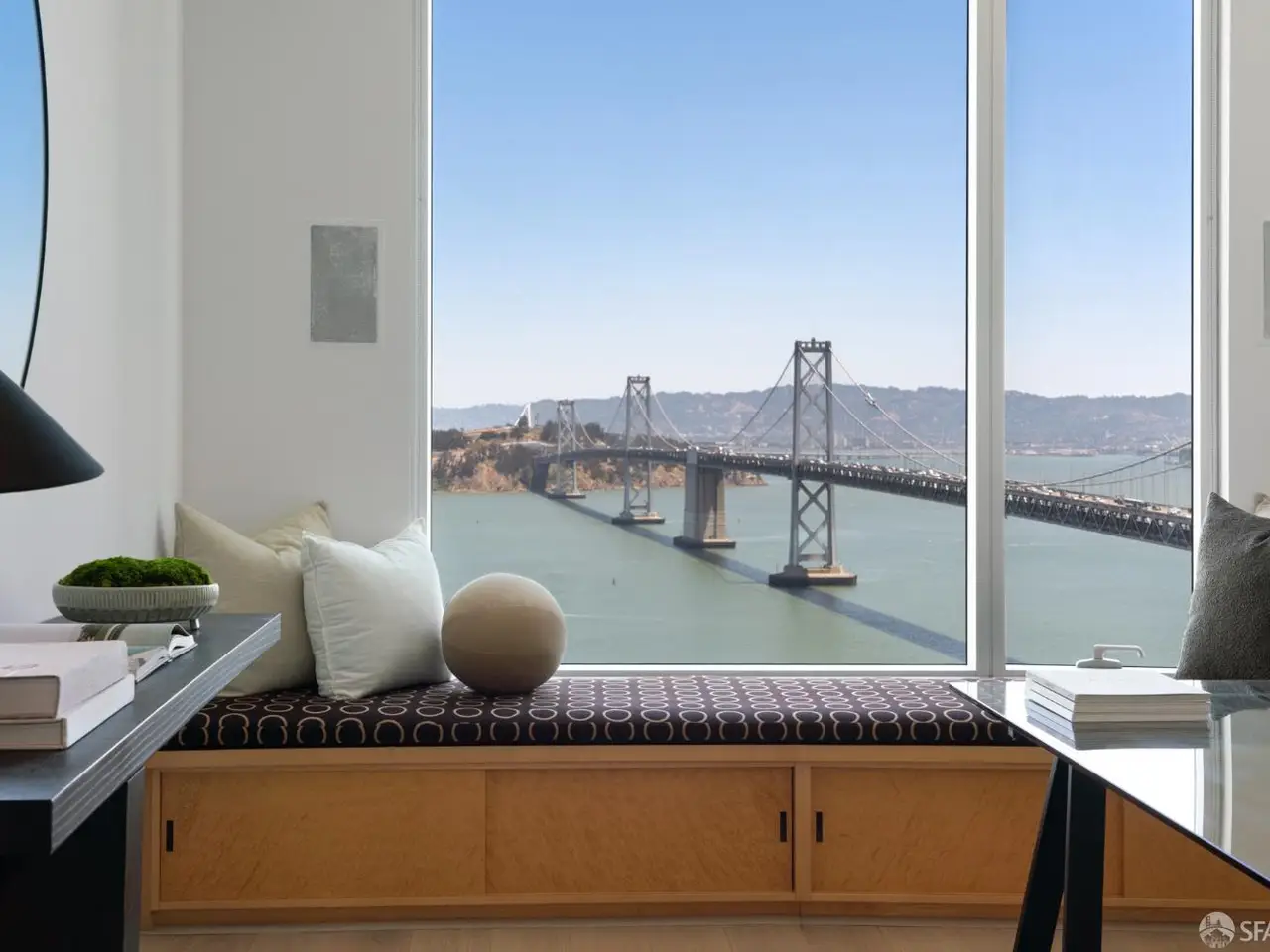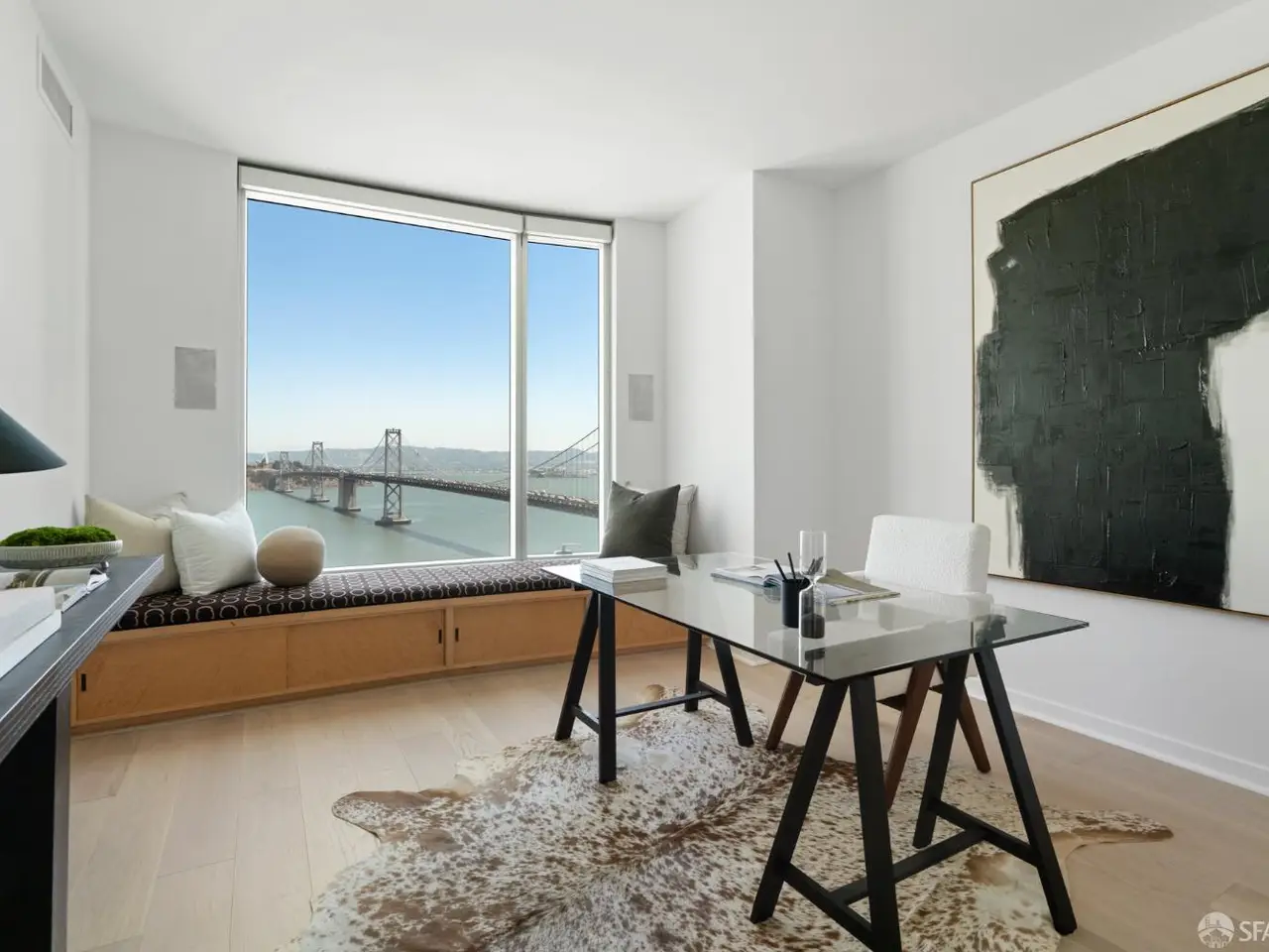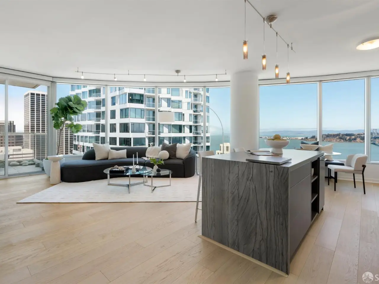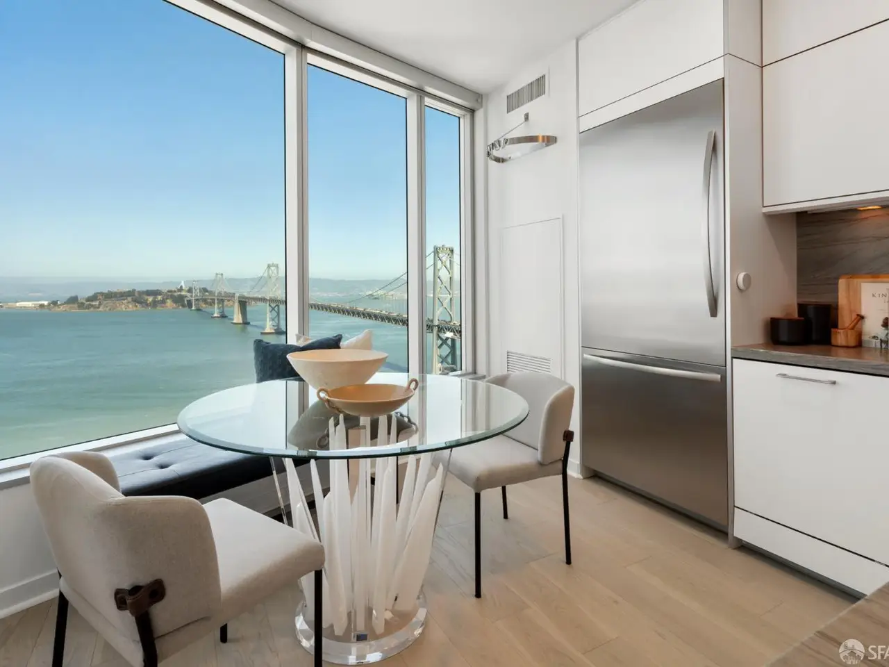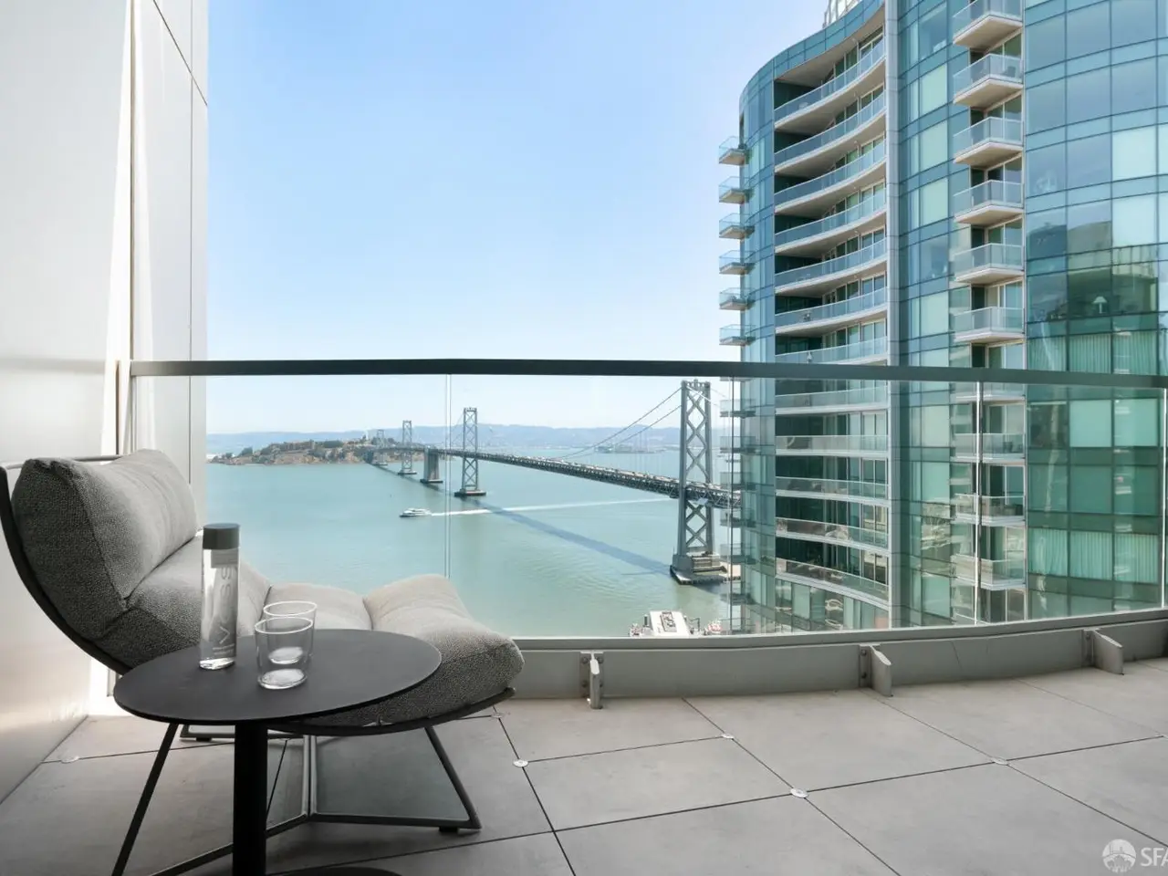 Experience luxe high-rise living in this exceptional 3 bedroom, 2 bath home with sweeping views of the Bay, Bay Bridge, and sparkling City skyline. The formal entrance is a perfect gallery to showcase art and leads to an expansive living area surrounded by floor-to-ceiling windows framing breathtaking views of the Bay Bridge and beyond. Open to the living and dining areas, the chef's kitchen is outfitted with Studio Becker cabinetry, Thermador and Bosch appliances, stone countertops, and a custom island with bar top. New hardwood flooring runs throughout the living space, while custom window treatments provide both light control and privacy. Primary suite with custom walk-in closet and a spa-inspired bath with dual vanities, walk-in shower, soaking tub, and stunning skyline views. Secondary bedrooms enjoy awe-inspiring Bay Bridge views and easy access to the adjacent full bath. Also incl. central A/C, in-unit washer/dryer, built-in speakers and garage parking for 2 cars with EV charger! Infinity's world-class amenities incl: 5,000 sq ft gym, 75-foot indoor pool and spa, sauna, private theater, business center, conference rooms, club lounge w/catering kitchen and bar, outdoor fire pits, 24-hour concierge and security.